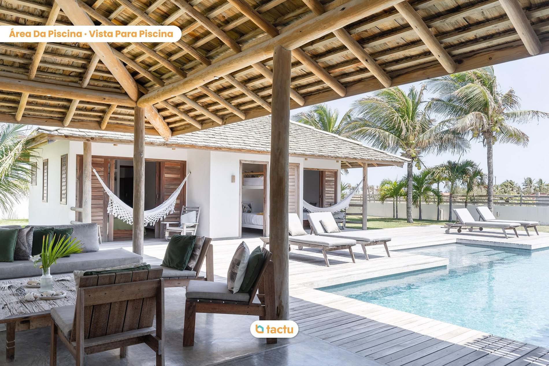 By car, in five minutes you can reach the center of Pontal do Maceió, where you will find various dining options. In ten minutes, you can reach the center of Fortim, with more entertainment and gastronomic options. The house is perfect for large groups who want to enjoy carefree days at the beach without giving up comfort and refinement.