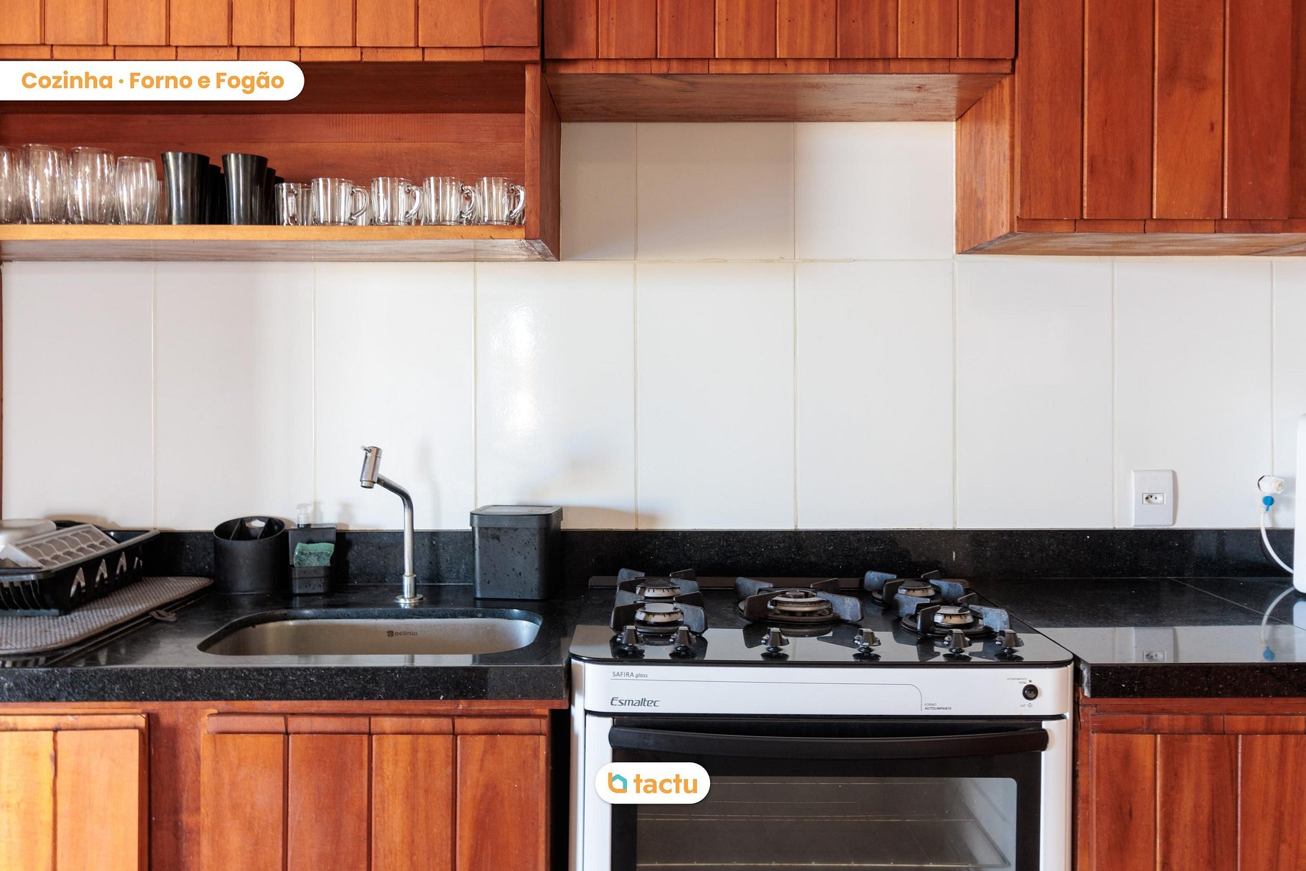 The kitchen is complete and has a refrigerator, oven, stove, microwave, chilled water and all the other utensils you need to have a perfect stay! The living room of the house has sofas and an excellent TV for moments with family and friends!