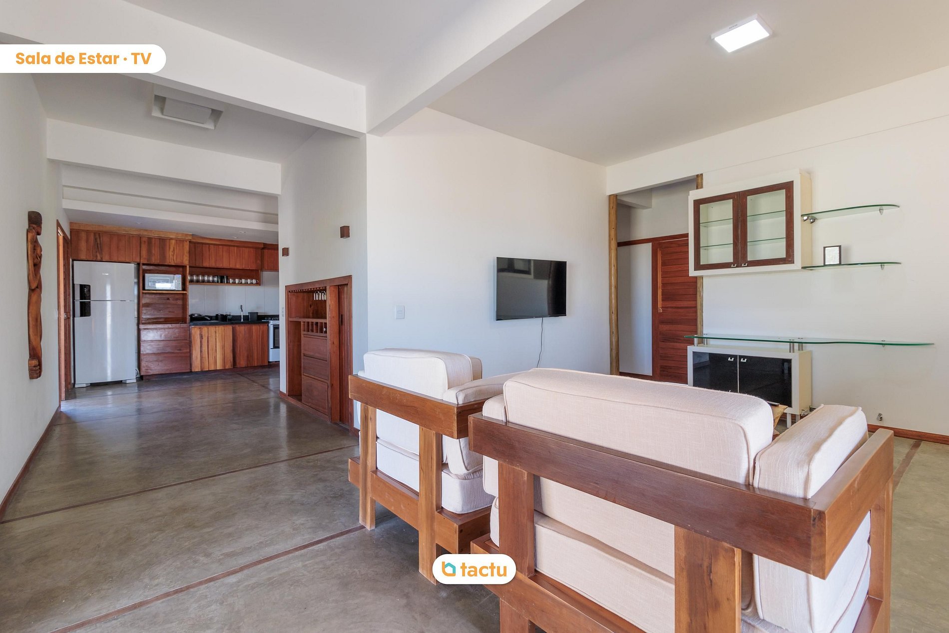 The kitchen is complete and has a refrigerator, oven, stove, microwave, chilled water and all the other utensils you need to have a perfect stay! The living room of the house has sofas and an excellent TV for moments with family and friends!