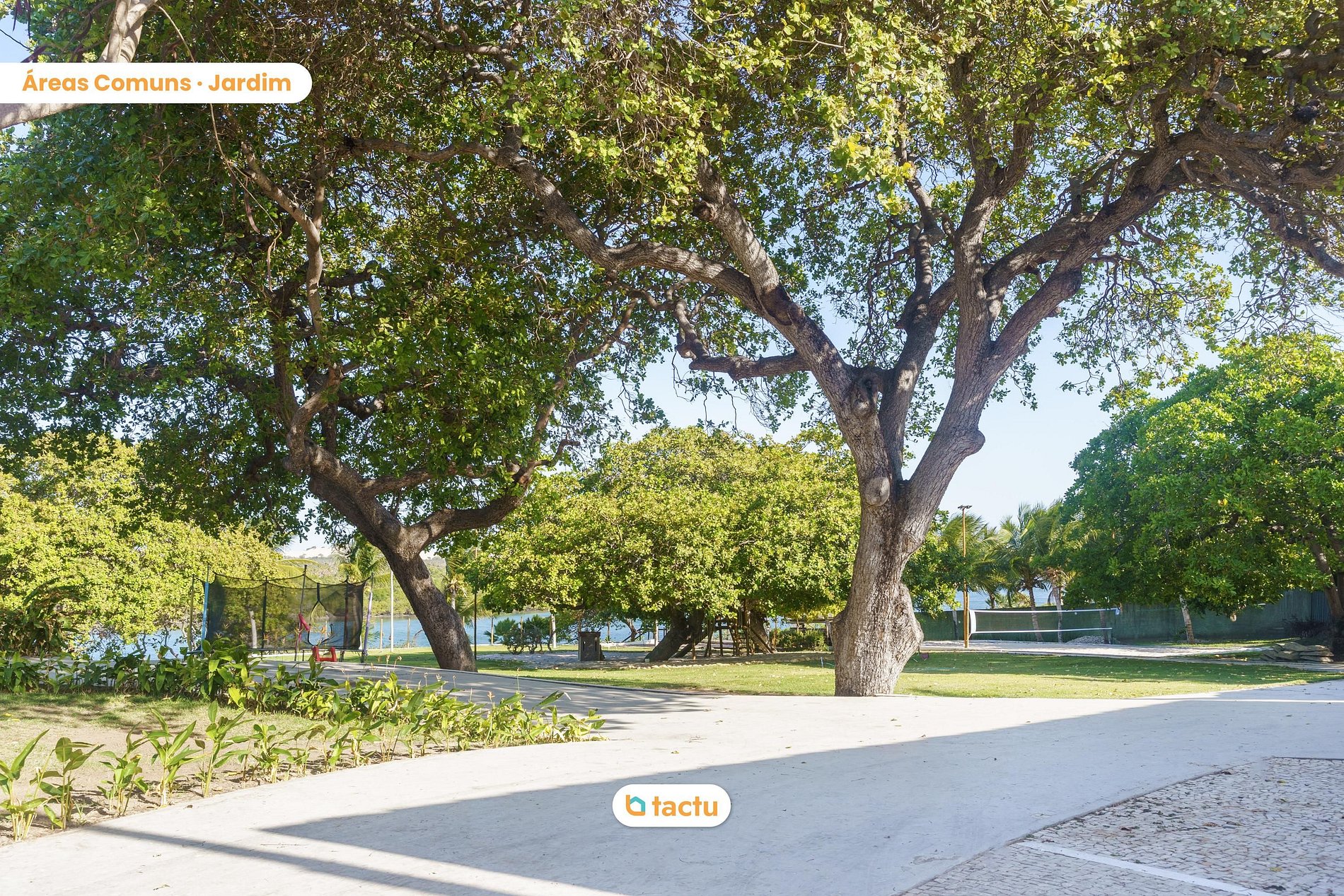 It also includes several entertainment options for all ages, such as a trampoline, wooden playground, beach tennis/volleyball court, and Espiribol.