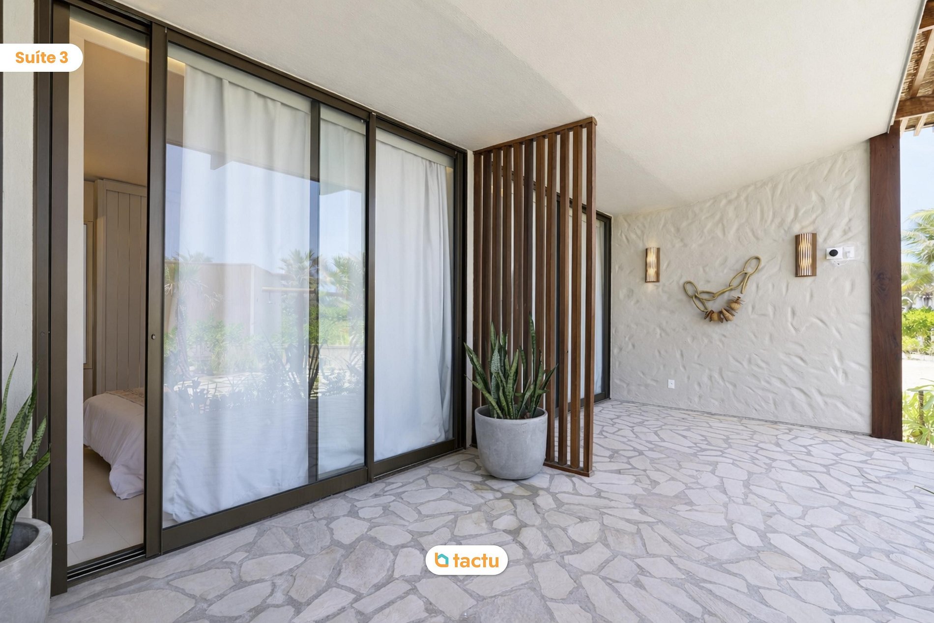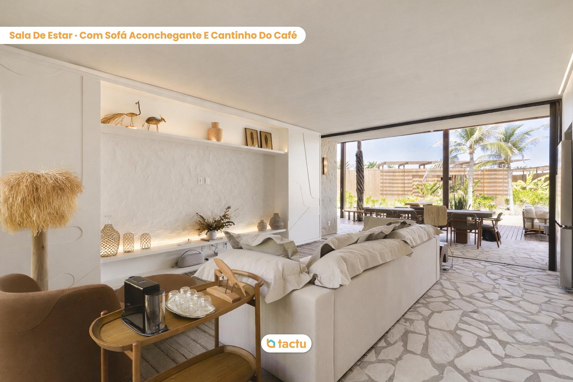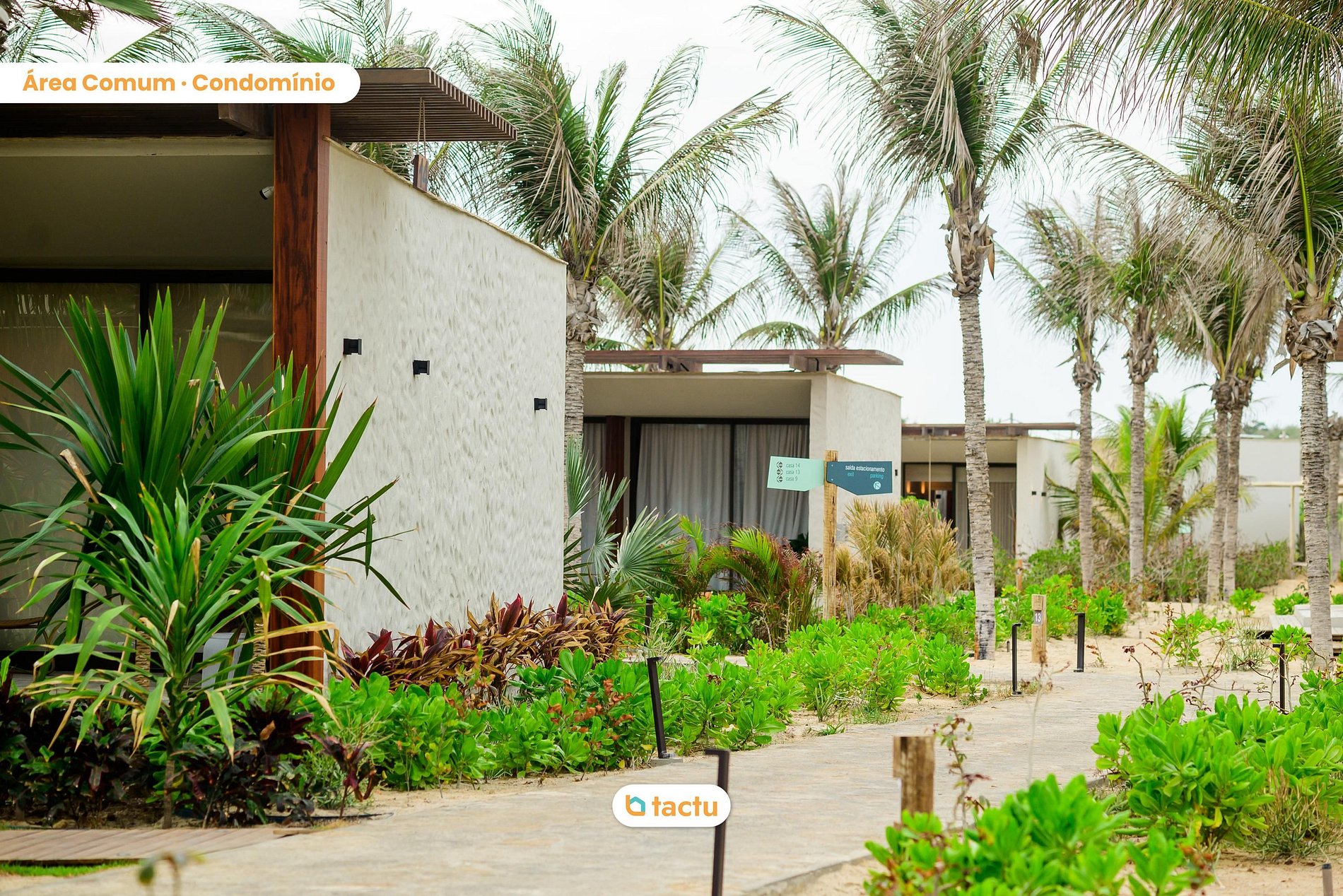 House 26 at Origem, in Fortim: a sophisticated retreat surrounded by palm trees and lush nature. It features a private pool with deck, a spacious integrated veranda, a fully equipped kitchen, a cozy living room, and air-conditioned suites. Ideal for families, it also offers a playground and thoughtfully designed spaces to enjoy light, comfortable, and unforgettable moments on the Ceará coast.
