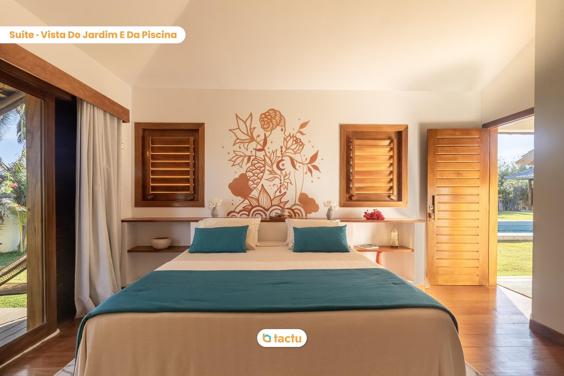 There are 3 cozy suites, all with queen beds and direct access to the pool. Each suite is designed for maximum comfort, featuring charming decor and high-quality mattresses. The house comfortably accommodates up to 6 guests.