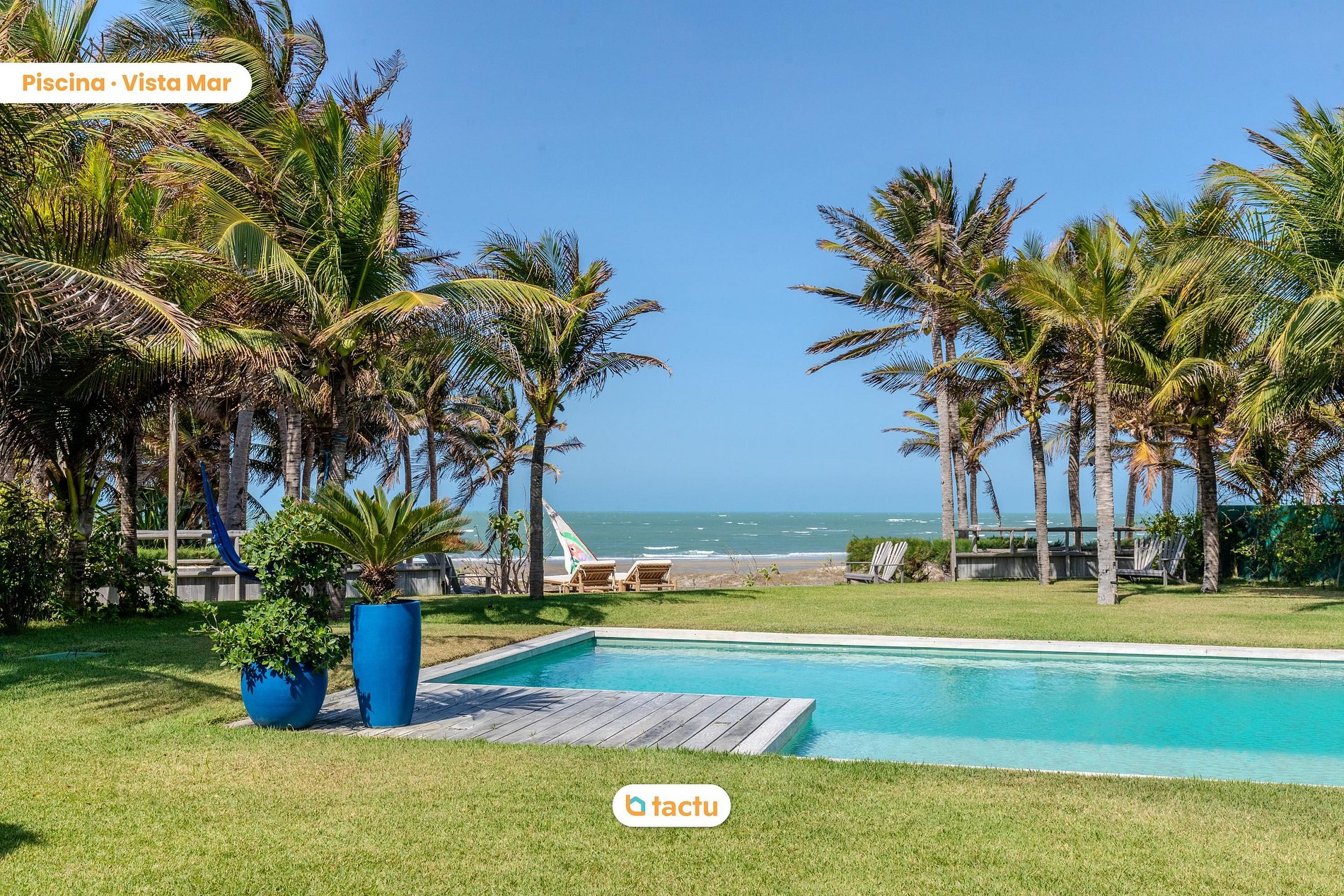 The spacious garden, filled with coconut trees and tropical plants, creates an atmosphere of peace and privacy. Just steps from the sea, the villa offers a stunning, uninterrupted view of the ocean and private beach access, ensuring an exclusive and tranquil experience. Rest areas, including hammocks and strategically placed chairs, allow guests to relax to the sound of the waves and enjoy the fresh breeze.