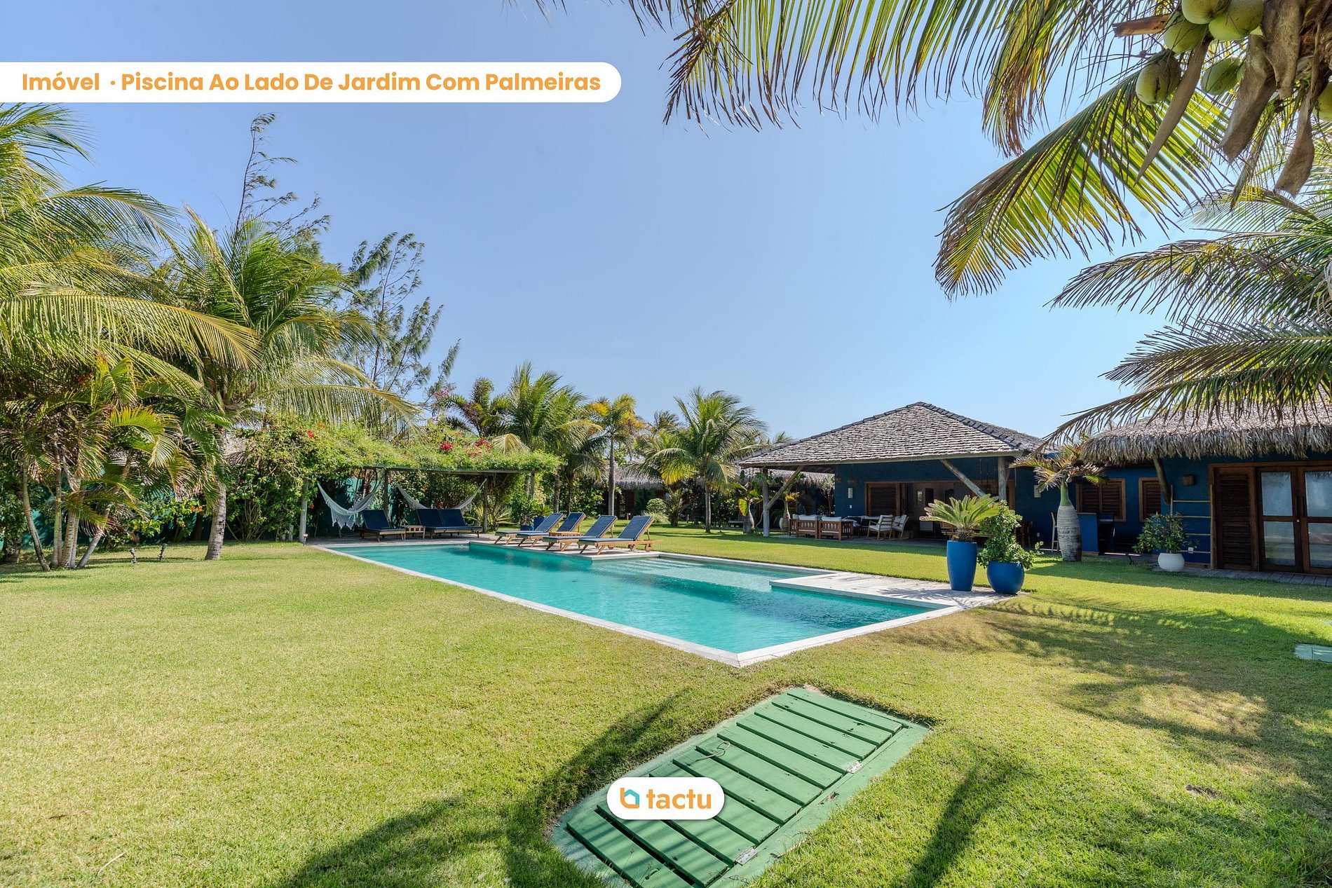 The spacious garden, filled with coconut trees and tropical plants, creates an atmosphere of peace and privacy. Just steps from the sea, the villa offers a stunning, uninterrupted view of the ocean and private beach access, ensuring an exclusive and tranquil experience. Rest areas, including hammocks and strategically placed chairs, allow guests to relax to the sound of the waves and enjoy the fresh breeze.