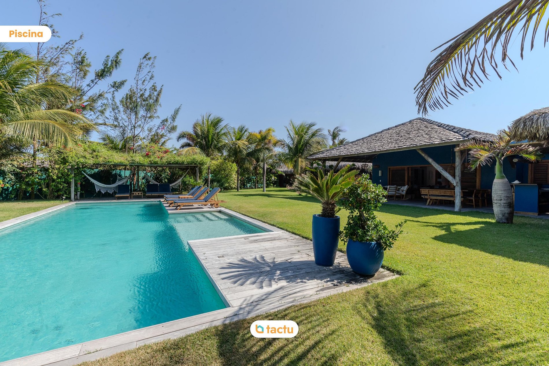 The outdoor pool, surrounded by loungers, invites guests to moments of relaxation under the Cearense sun, while enjoying views of the tropical garden and the ocean. The deck beside the pool is the perfect spot for sunbathing and relaxing, allowing appreciation of the natural beauty around.