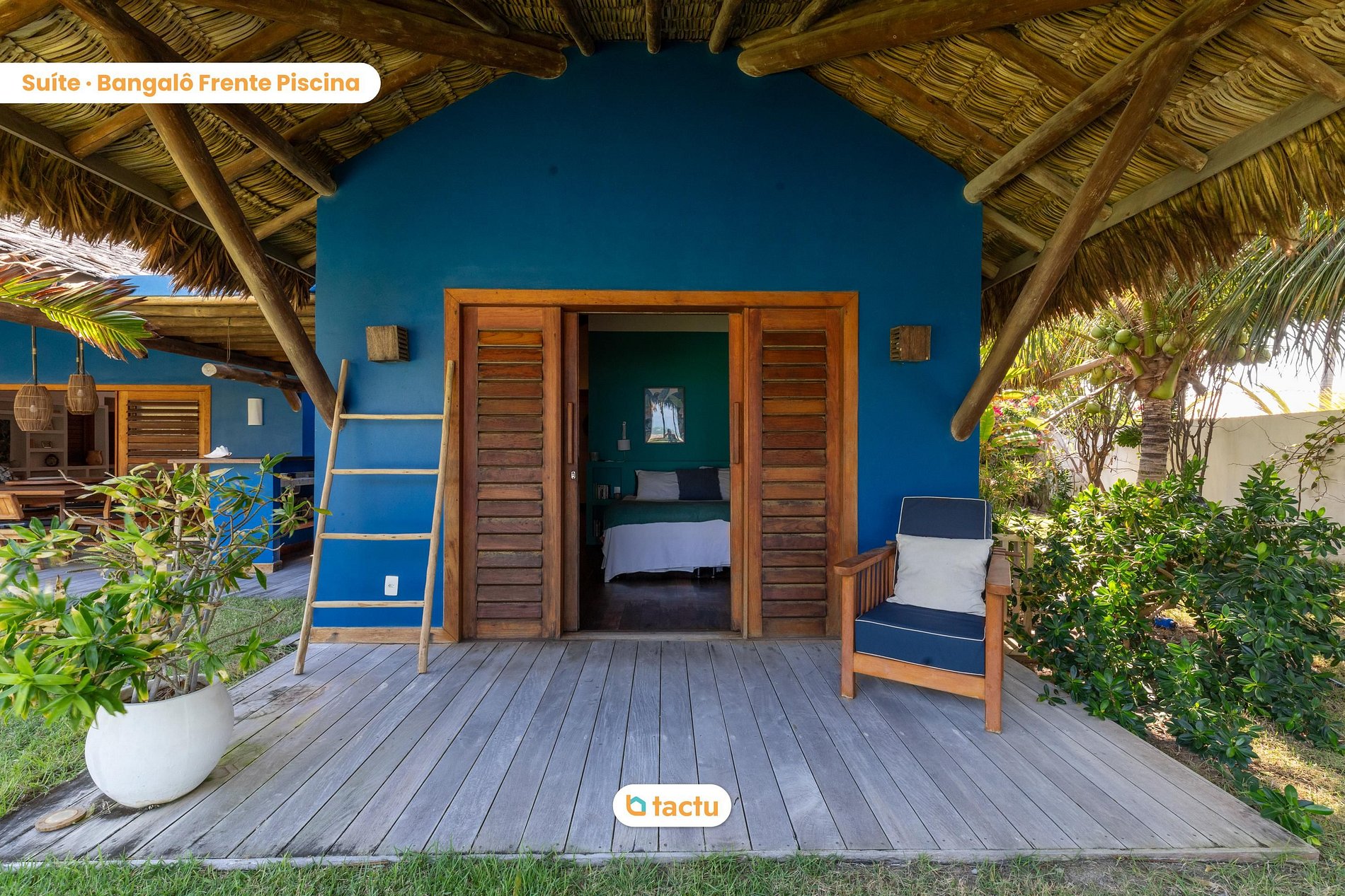 The outdoor pool, surrounded by loungers, invites guests to moments of relaxation under the Cearense sun, while enjoying views of the tropical garden and the ocean. The deck beside the pool is the perfect spot for sunbathing and relaxing, allowing appreciation of the natural beauty around.