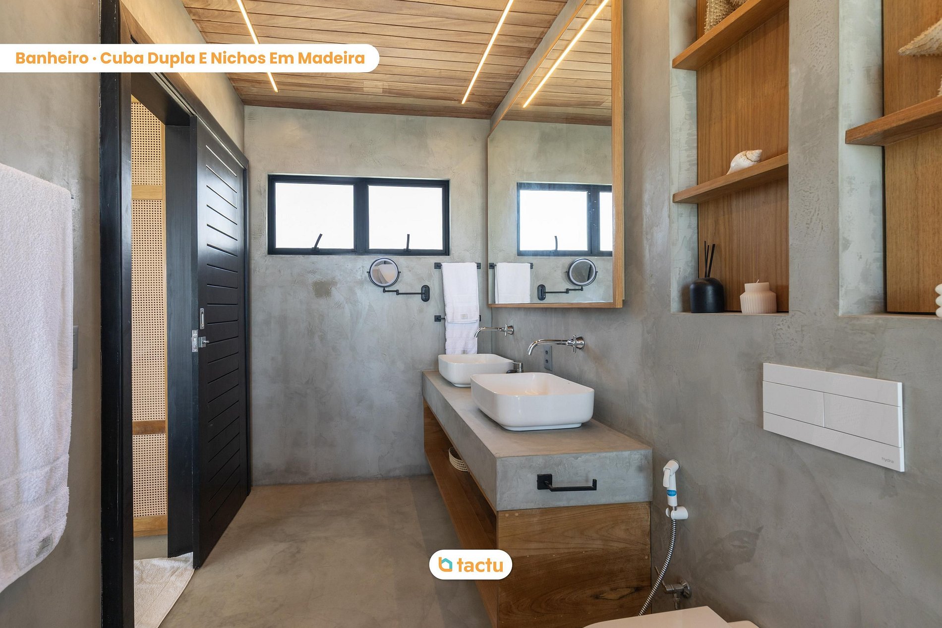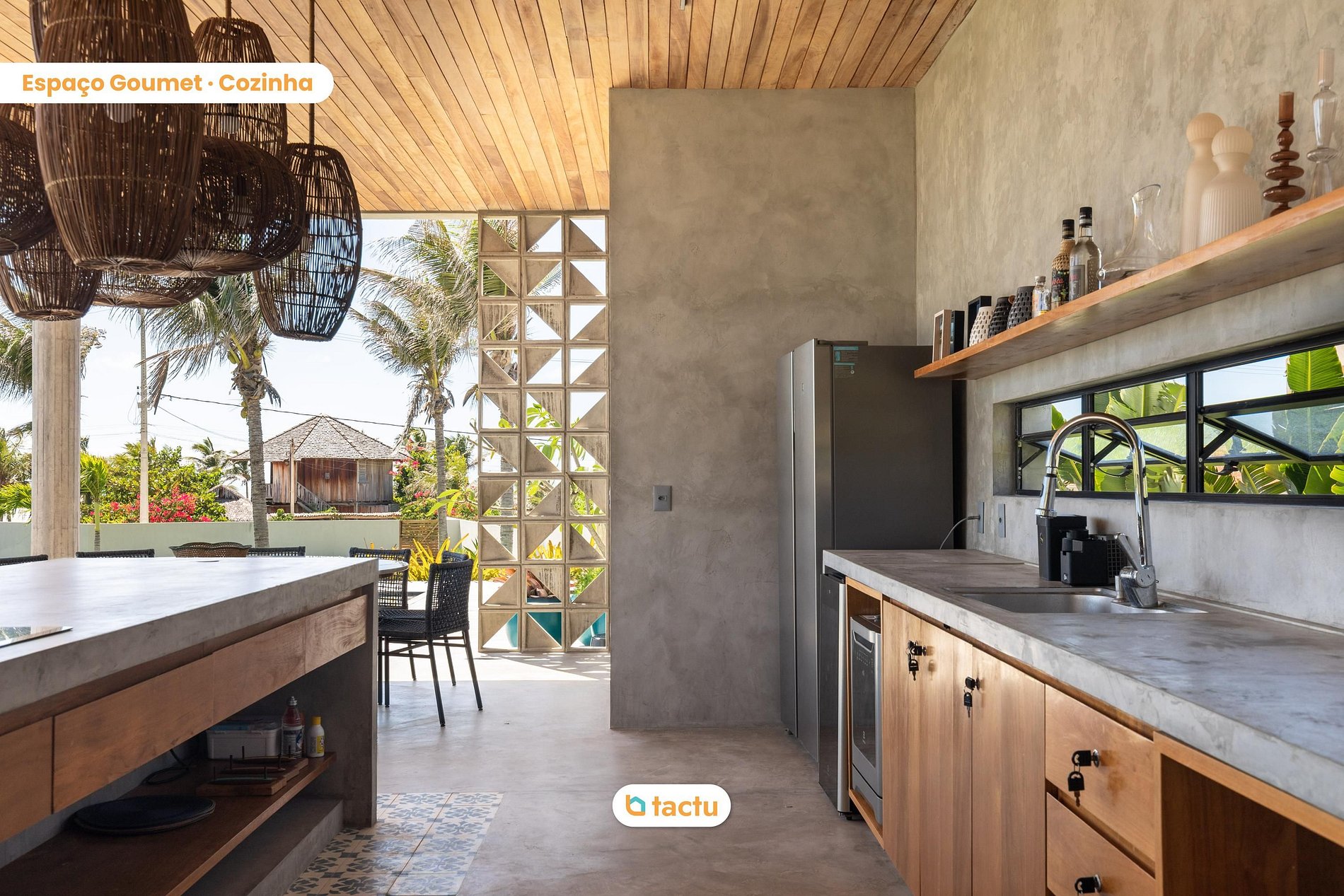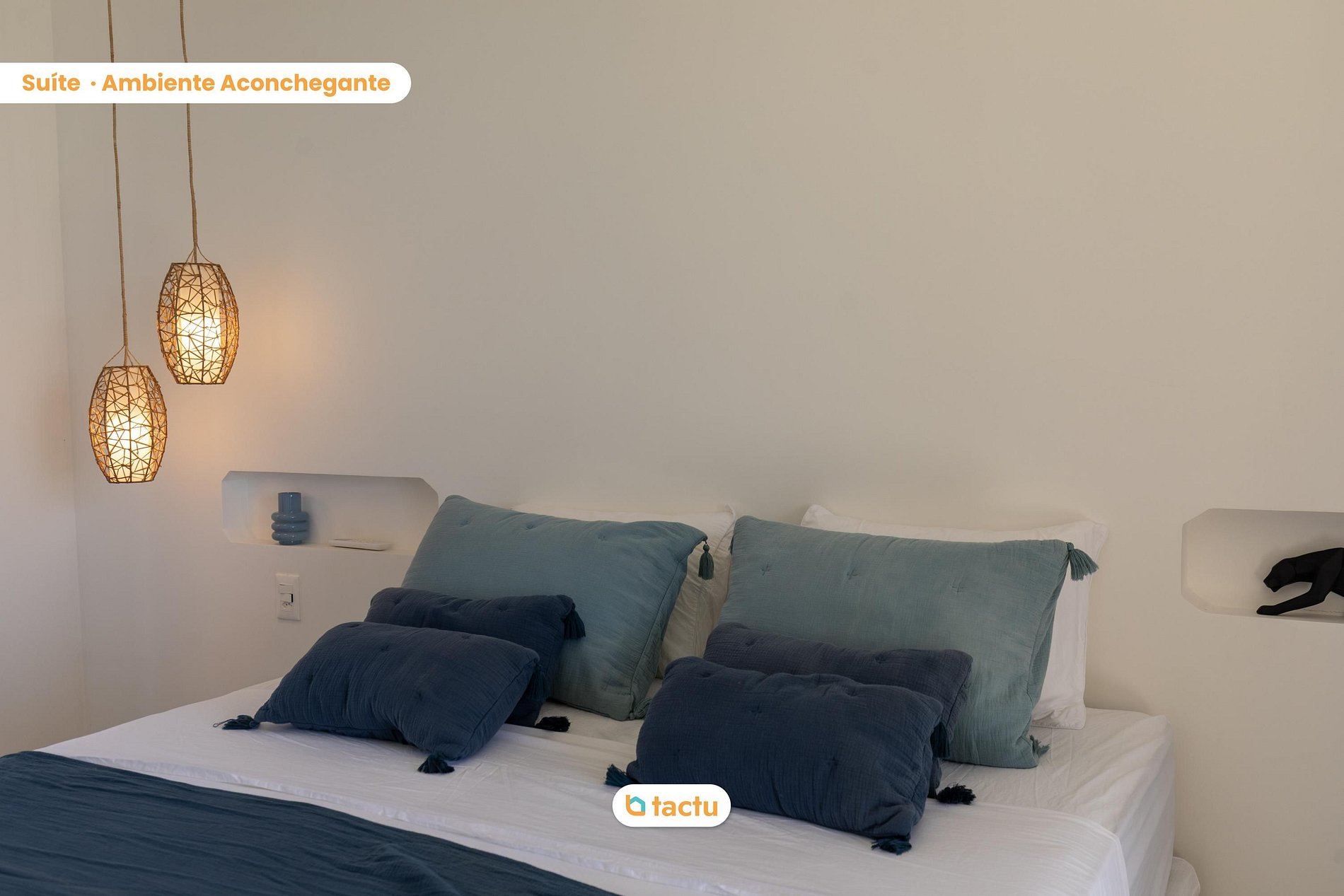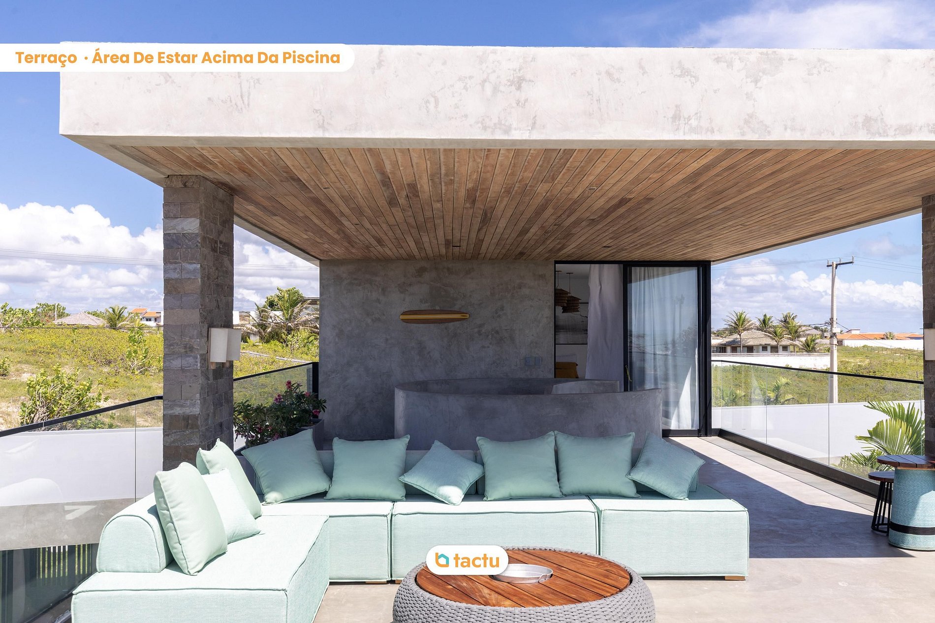 Vila Luzess was carefully designed to offer comfort and well-being in every detail. Located in a quiet area of Fortim, it accommodates up to 10 people with complete privacy, in a setting that emphasizes the region's natural style, with wood finishes, neutral tones, and large openings for natural light and sea breezes. The house has four air-conditioned suites, all versatile: they can be prepared with a king-size bed or two single beds, depending on the group's needs. All bedrooms have access to private bathrooms, ensuring comfort and convenience for all guests. There is also a cozy TV room with a sofa bed, ideal for relaxing with the family or comfortably accommodating extra guests. Outdoors, the private pool surrounded by a well-kept garden invites you to relax outdoors. The balcony houses a charming gourmet area equipped with a barbecue grill and pizza oven—perfect for relaxed meals and group celebrations. The house also has baby facilities, including a crib, available upon request. During your stay, breakfast is prepared daily by the house staff (with ingredients provided by guests), and light cleaning service is included, along with on-site support available whenever needed. The covered garage accommodates only small vehicles, ensuring security and space conservation.