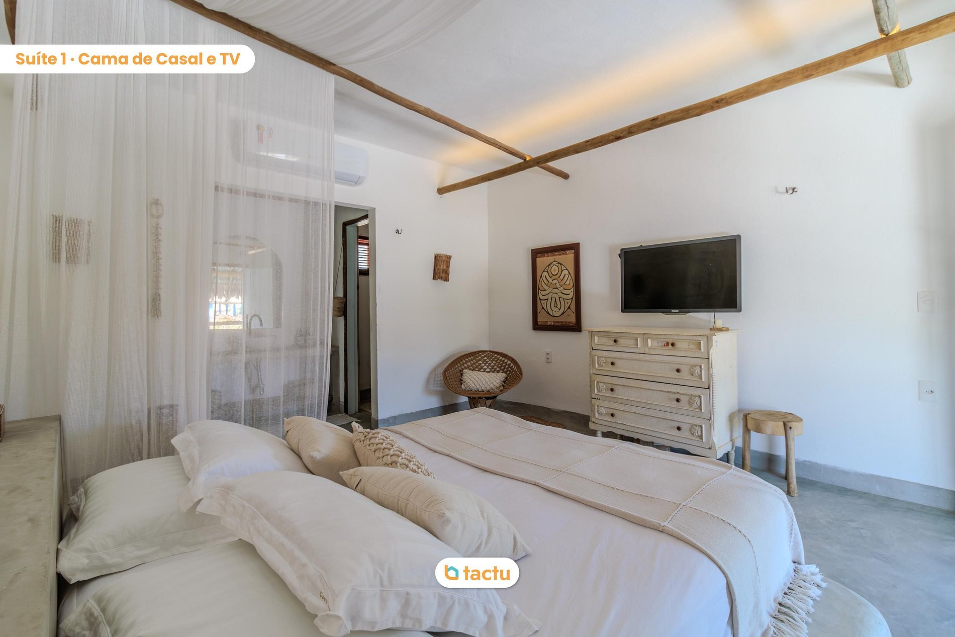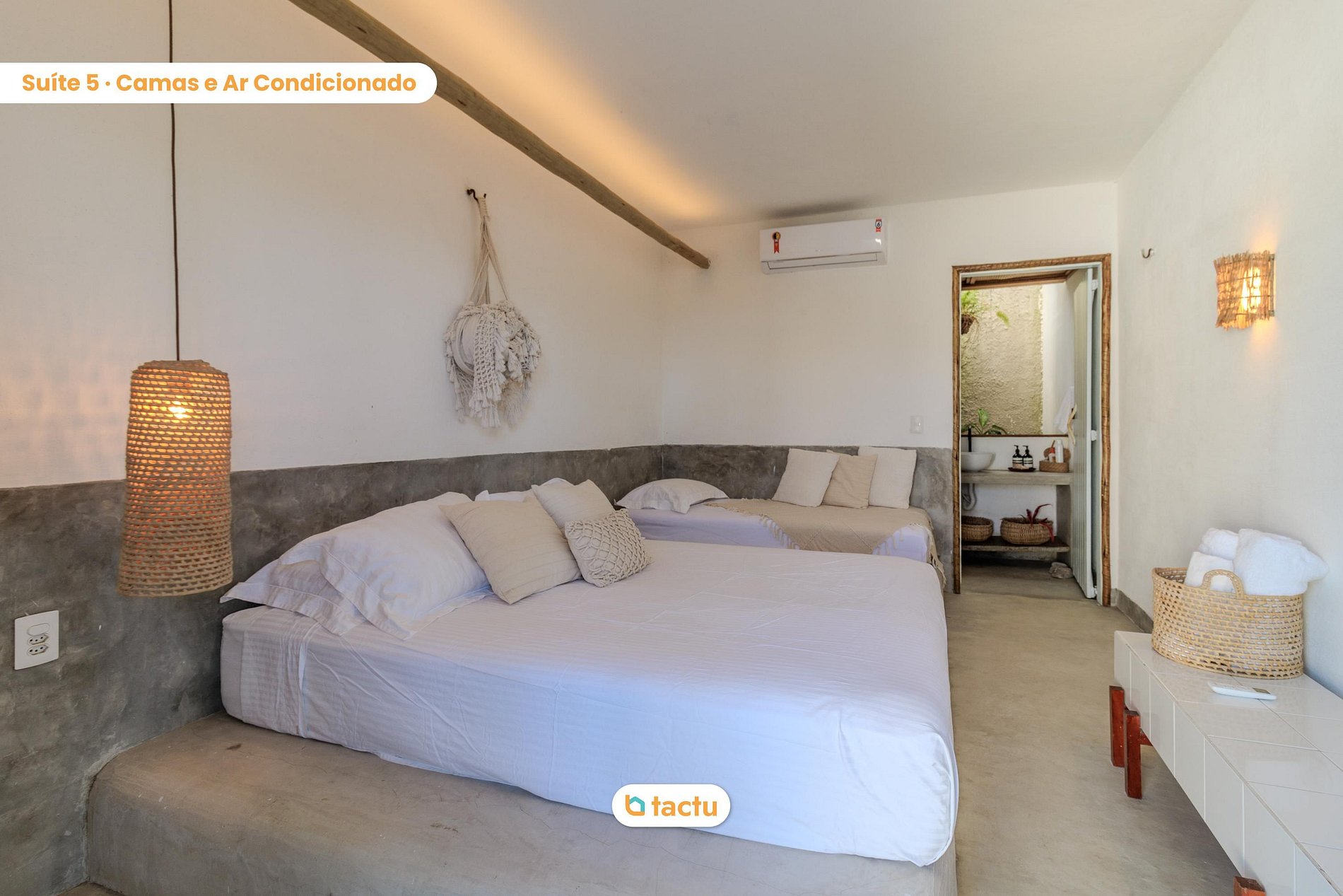 La casa cuenta con 5 suites espaciosas y climatizadas, decoradas con esmero y equipadas para garantizar noches de descanso profundo y comodidad en todas las estaciones. Todo fue pensado para reflejar una estética natural y acogedora, sello distintivo de Casa Slow.