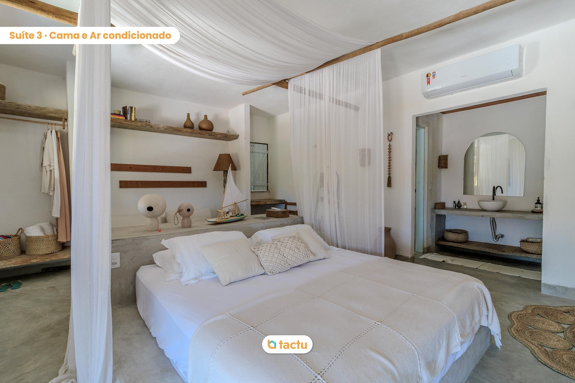 La casa cuenta con 5 suites espaciosas y climatizadas, decoradas con esmero y equipadas para garantizar noches de descanso profundo y comodidad en todas las estaciones. Todo fue pensado para reflejar una estética natural y acogedora, sello distintivo de Casa Slow.