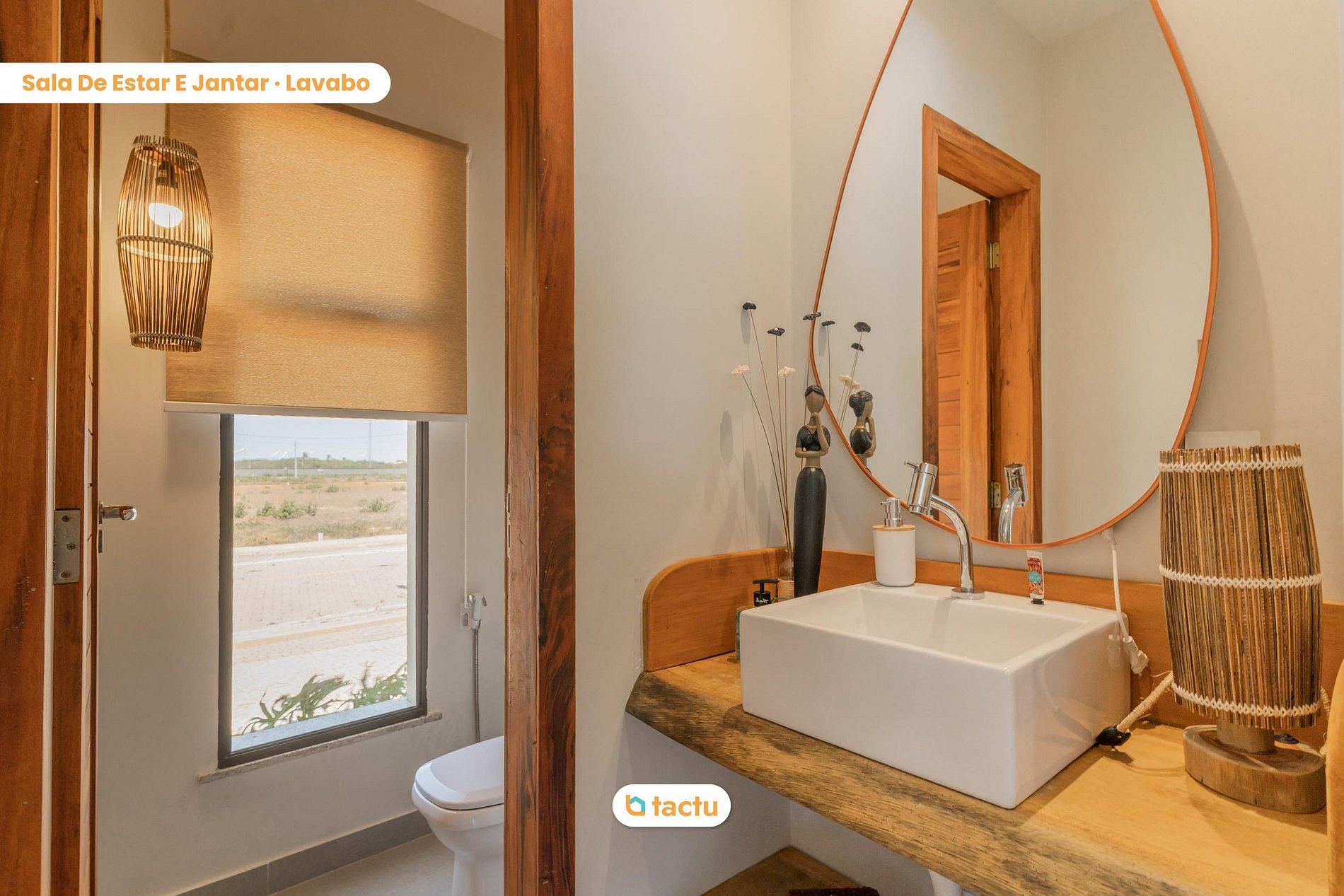 La casa en el condominio Praia Canoé combina comodidad y estilo en cada detalle, ideal para quienes buscan días de descanso en Fortim. Con espacios amplios y luminosos, la sala de estar y el comedor se integran con la escalera de madera y la decoración natural, creando un ambiente acogedor para reunir a familiares y amigos.