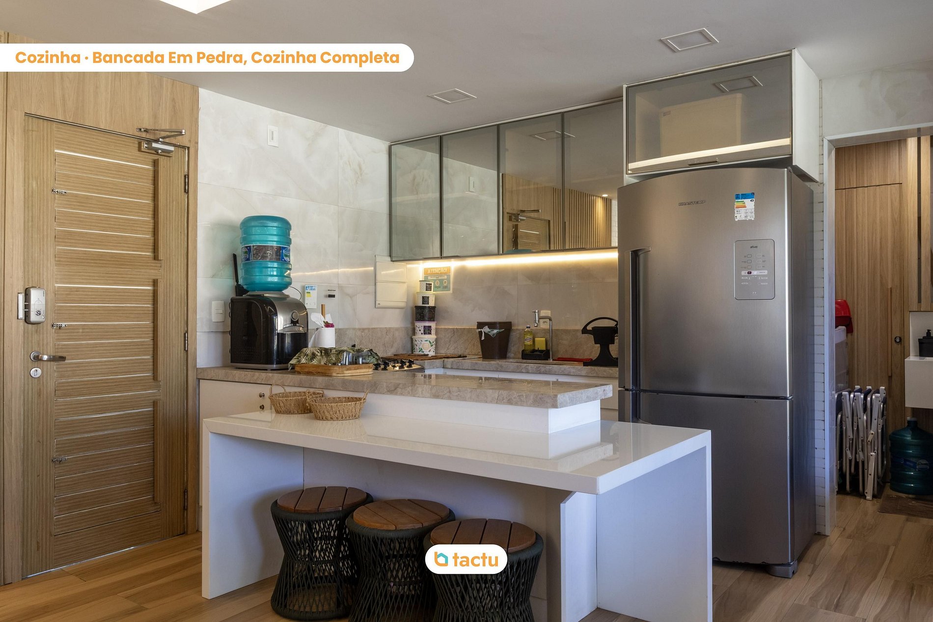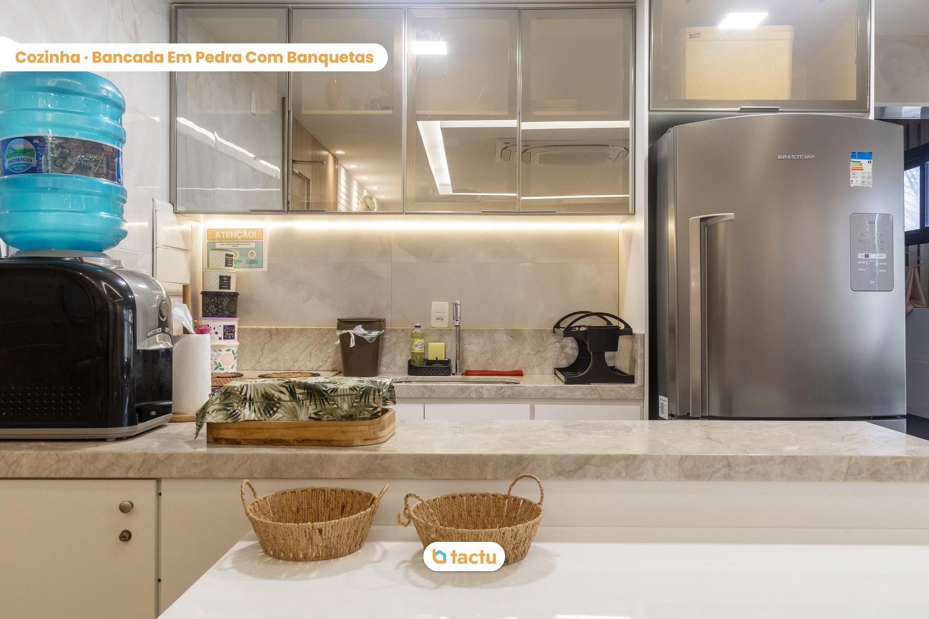 El balcón gourmet es un espectáculo en sí mismo, con barbacoa eléctrica, minibar, filtro de alta calidad y mesa Enorme comedor con juego de comedor completo. Está integrada en la cocina y el salón, con un diseño interior pensado para espacios grandes y conectados.