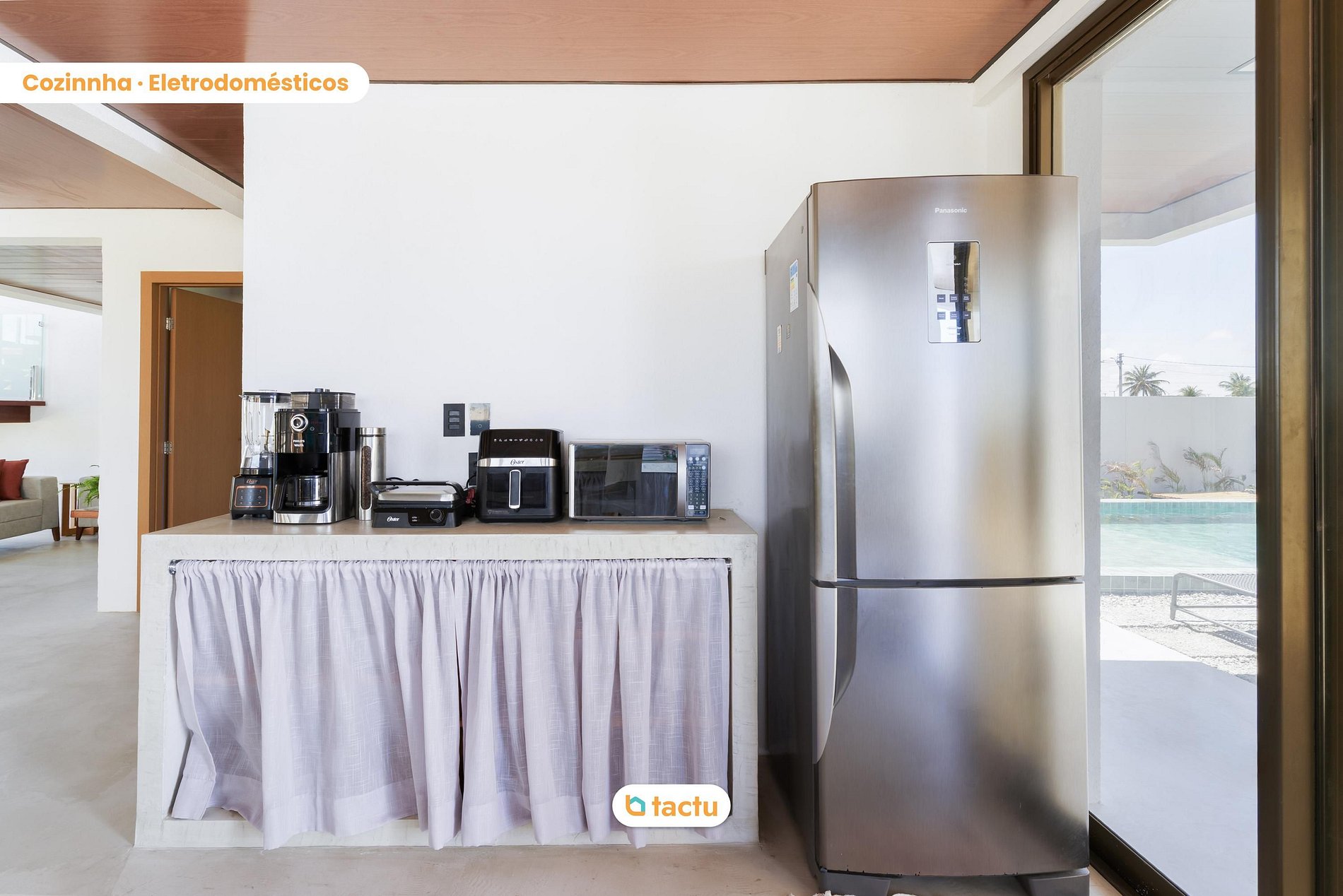 La Casa Flamboyant es un refugio elegante y luminoso, que combina arquitectura contemporánea con una integración total entre los espacios interiores y exteriores. La piscina con vista abierta, el deck con parrilla y los ambientes acristalados crean una atmósfera ligera y relajante, perfecta para disfrutar del clima único de Fortim. El rooftop completa la experiencia ofreciendo un espacio acogedor para contemplar el atardecer y el horizonte costero.