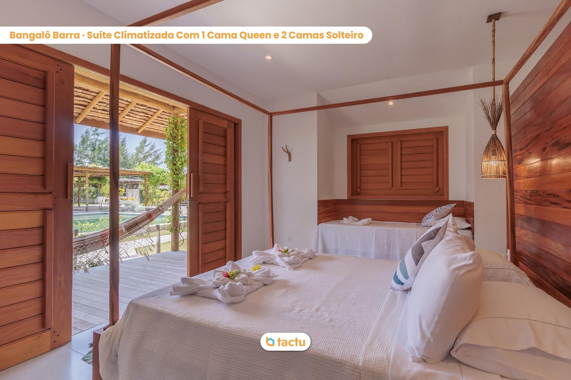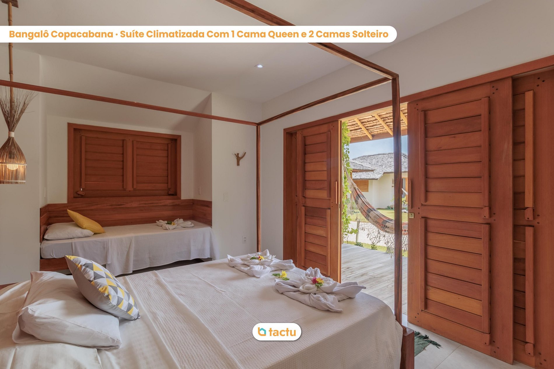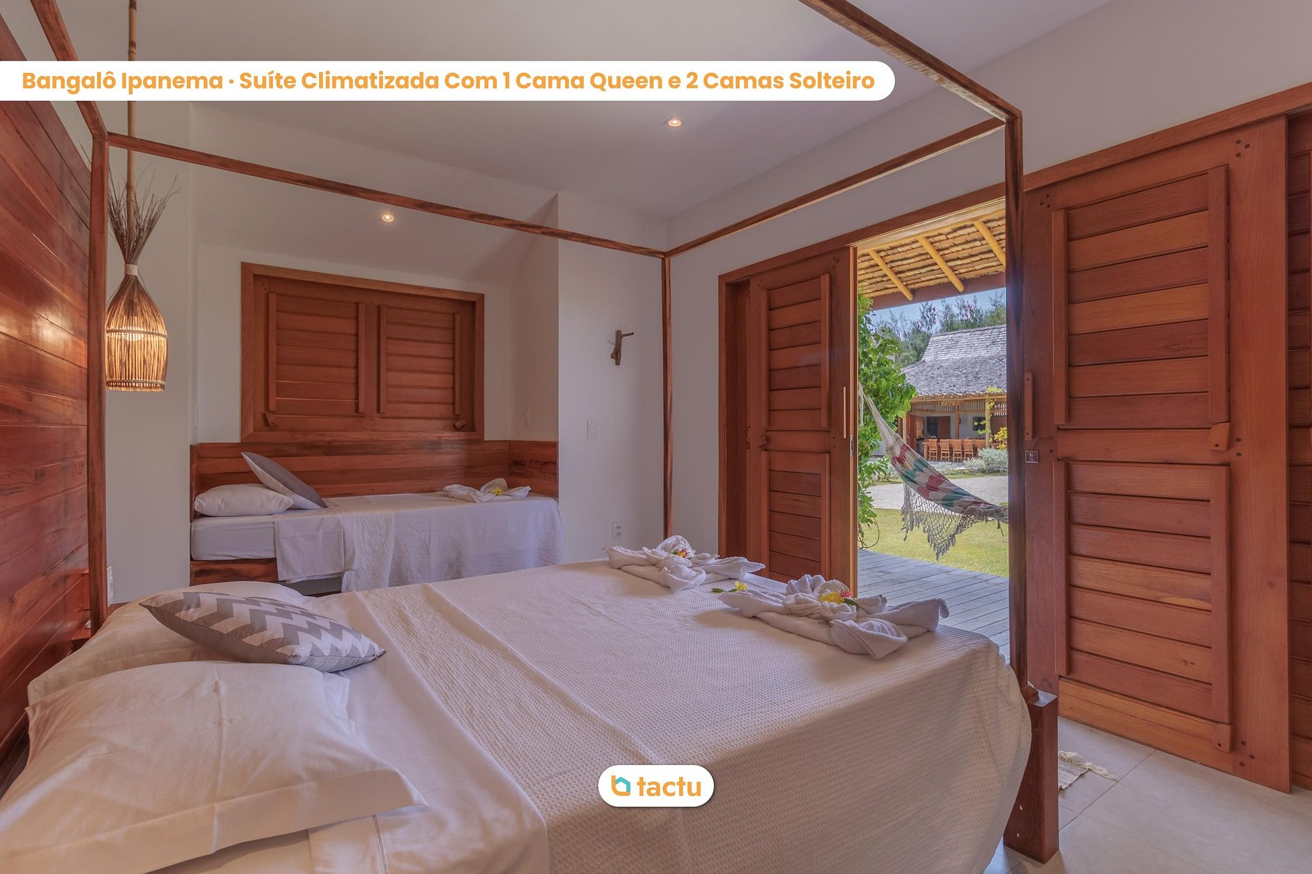 Nuestra casa acoge cómodamente hasta 22 personas, que se alojarán en 6 cabañas individuales. La casa fue construida inspirándose en el encanto de la Ciudad Maravillosa, donde cada bungalow lleva el nombre de un barrio de Río de Janeiro. Todos los bungalows son suites completas e independientes, conectadas por caminos de piedra portugueses que simulan el paseo marítimo de las playas de Río. ¡Todos tienen aire acondicionado split, agua caliente, armarios empotrados y balcón con hamaca!