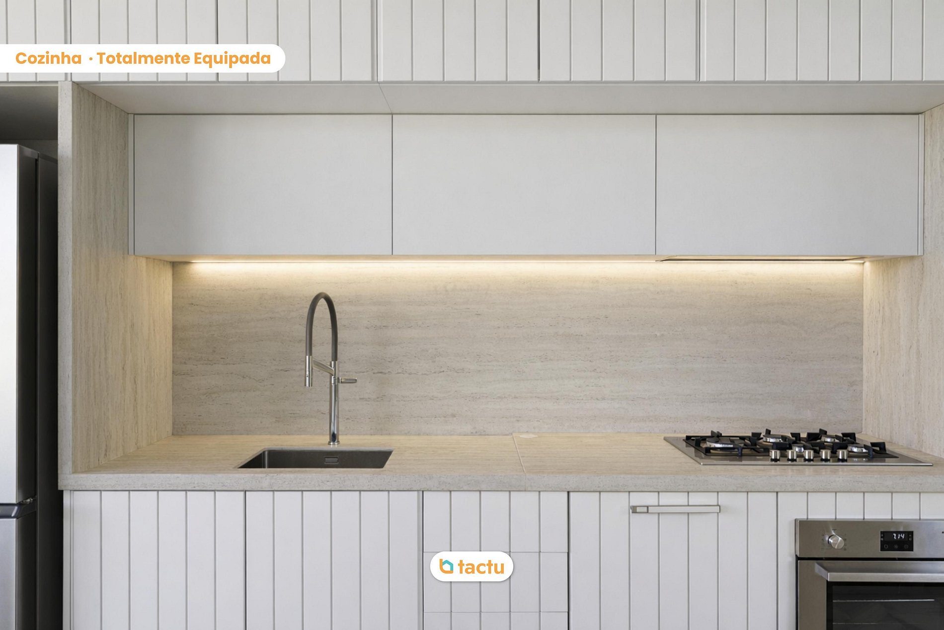 El área gourmet está totalmente equipada e integrada a los espacios de convivencia, con parrilla a gas, cava climatizada, cocina de inducción, mobiliario exterior y fregadero de apoyo. La cocina interior también está completamente equipada, con refrigerador Electrolux multidoor, horno eléctrico empotrado, cocina de cinco hornallas, muebles a medida y todos los utensilios esenciales. La lavandería dispone de dispensador de agua, air fryer, olla a presión eléctrica, licuadora, máquina de hielo, lavadora-secadora y fregadero de apoyo.