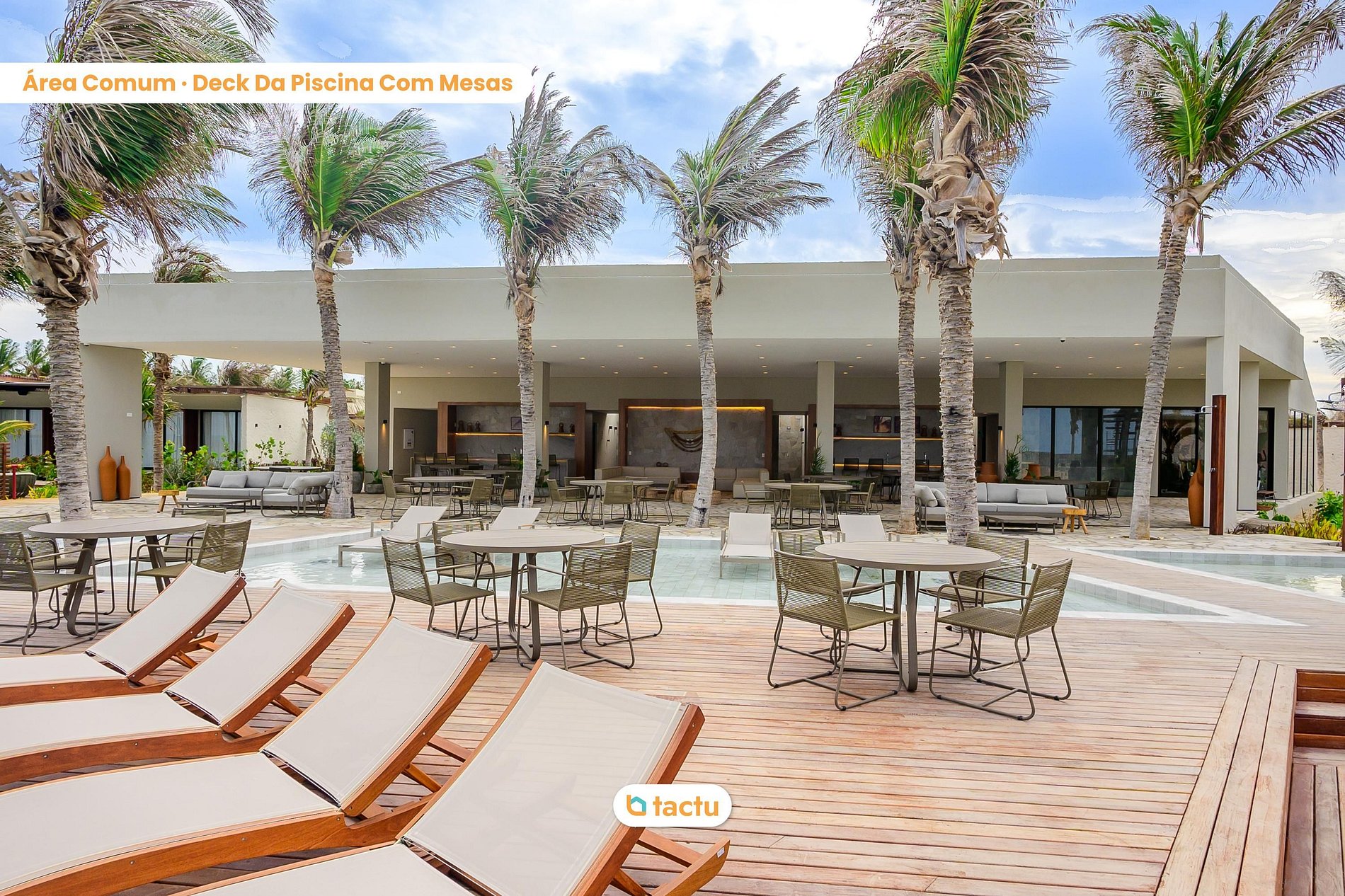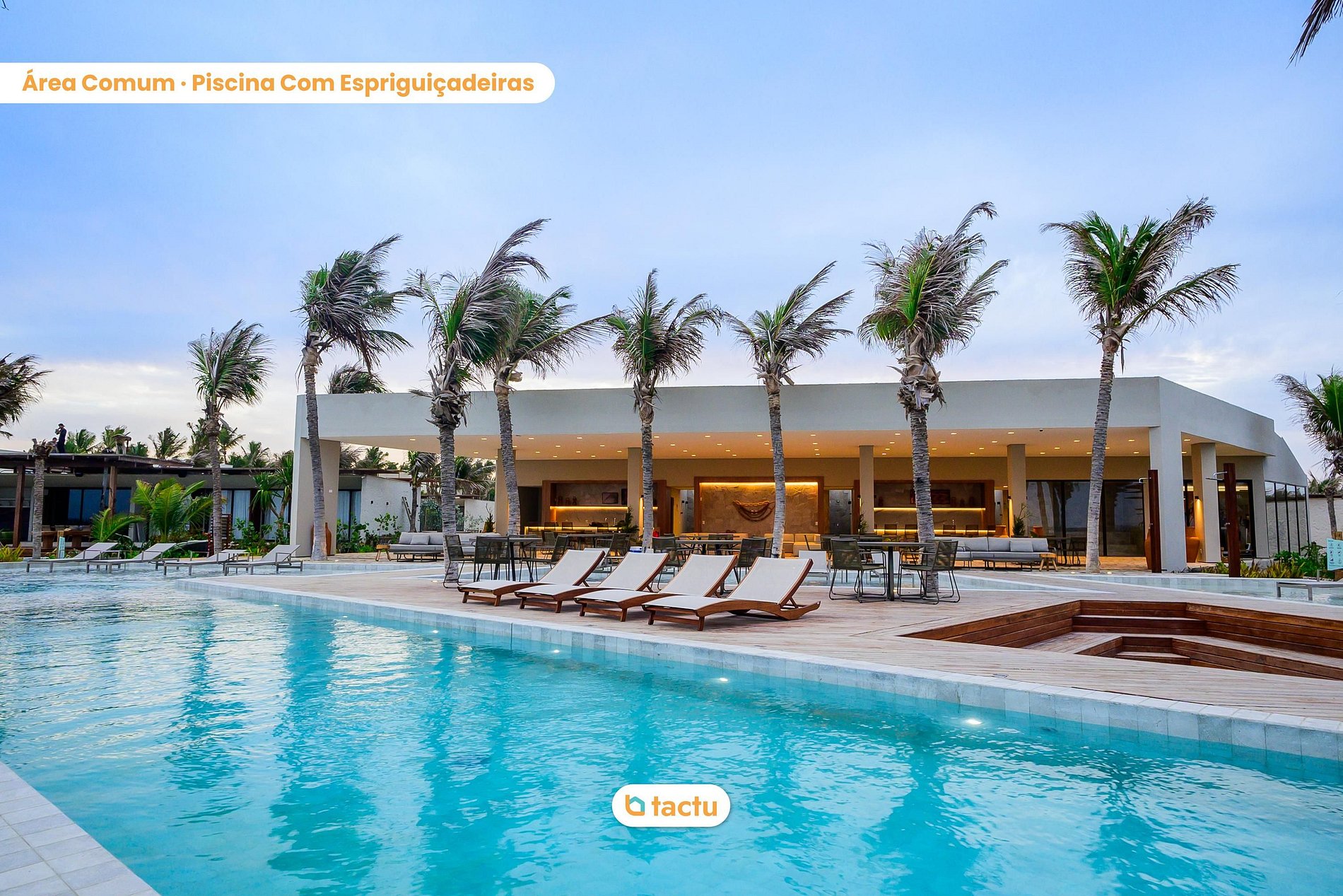 Casa 26 en Origem, en Fortim, es el escenario ideal para días de descanso con confort y sofisticación. Rodeada de palmeras y naturaleza exuberante, cuenta con piscina privada con deck, dos áreas de comedor (una para 7 personas con sombrilla y otra principal para 10), lounge exterior con sofá y sillones, cuatro tumbonas, dos futones y parque infantil de madera con casita y tobogán — perfecta para familias que buscan ocio y exclusividad.