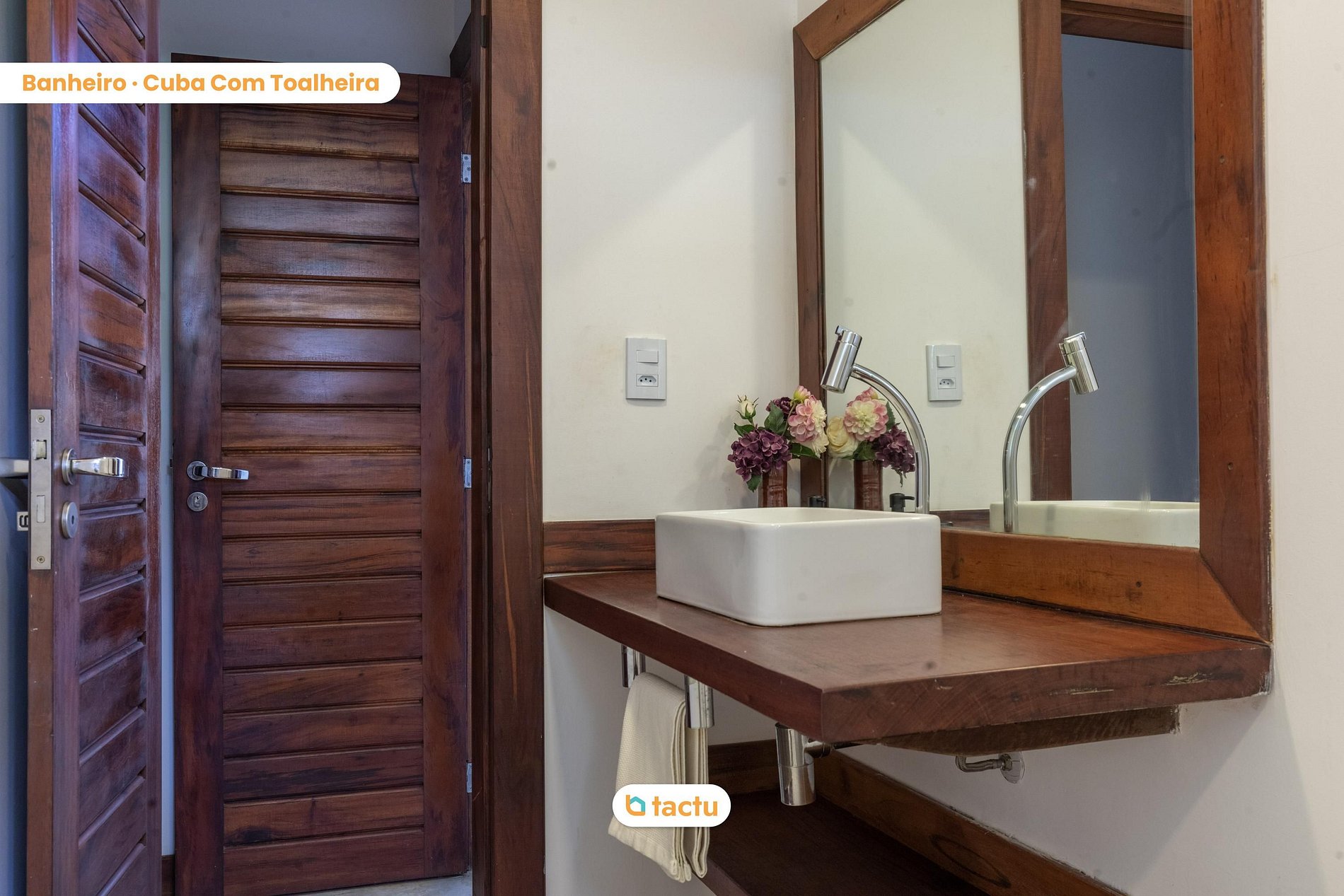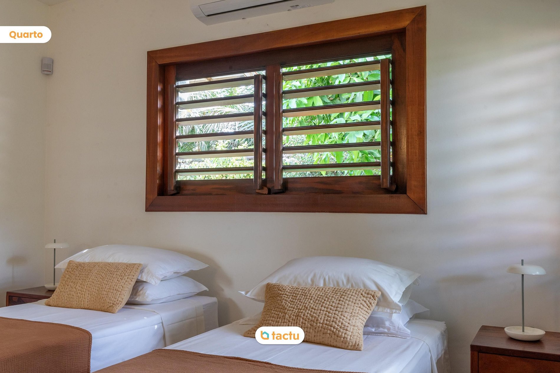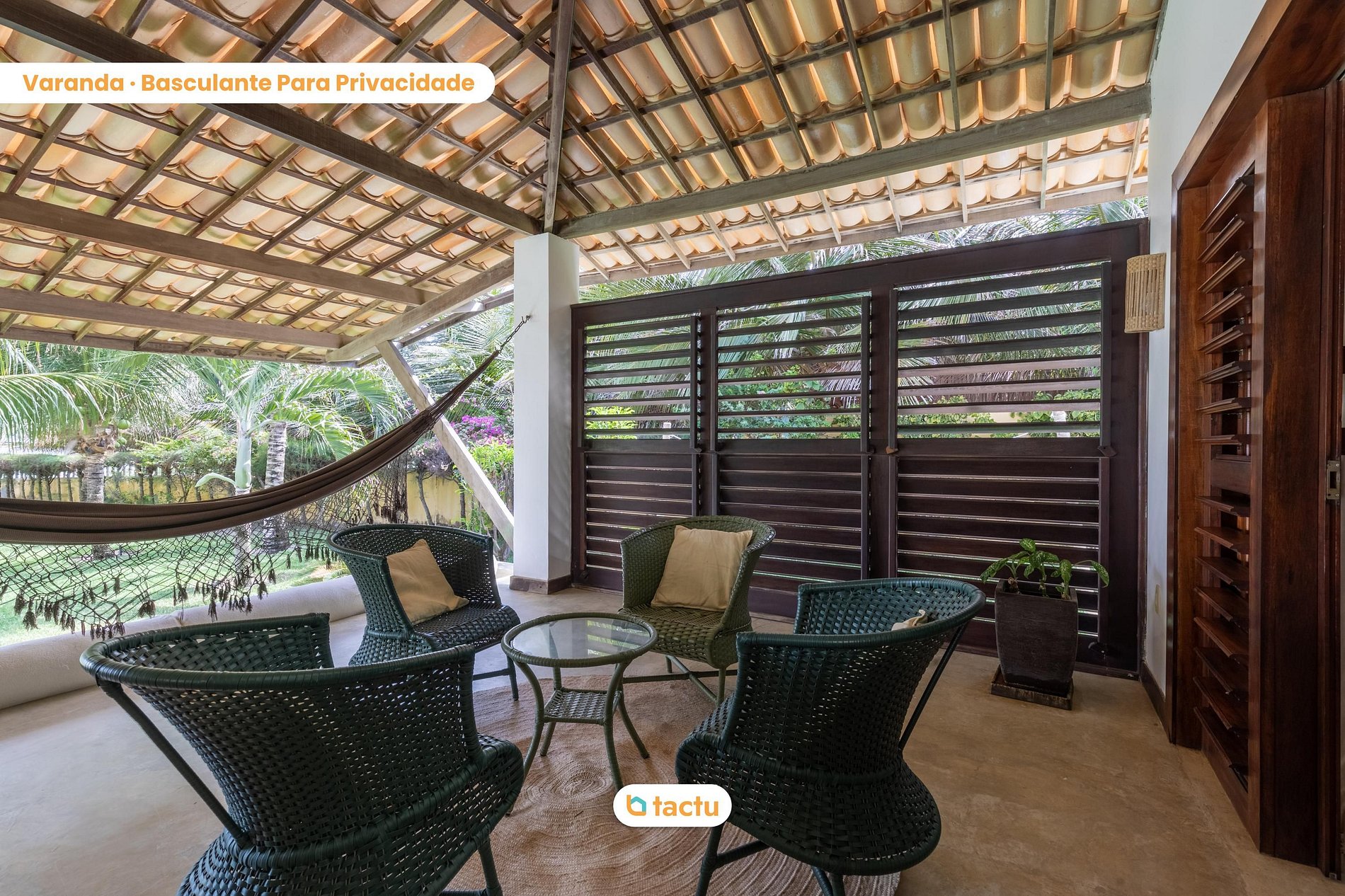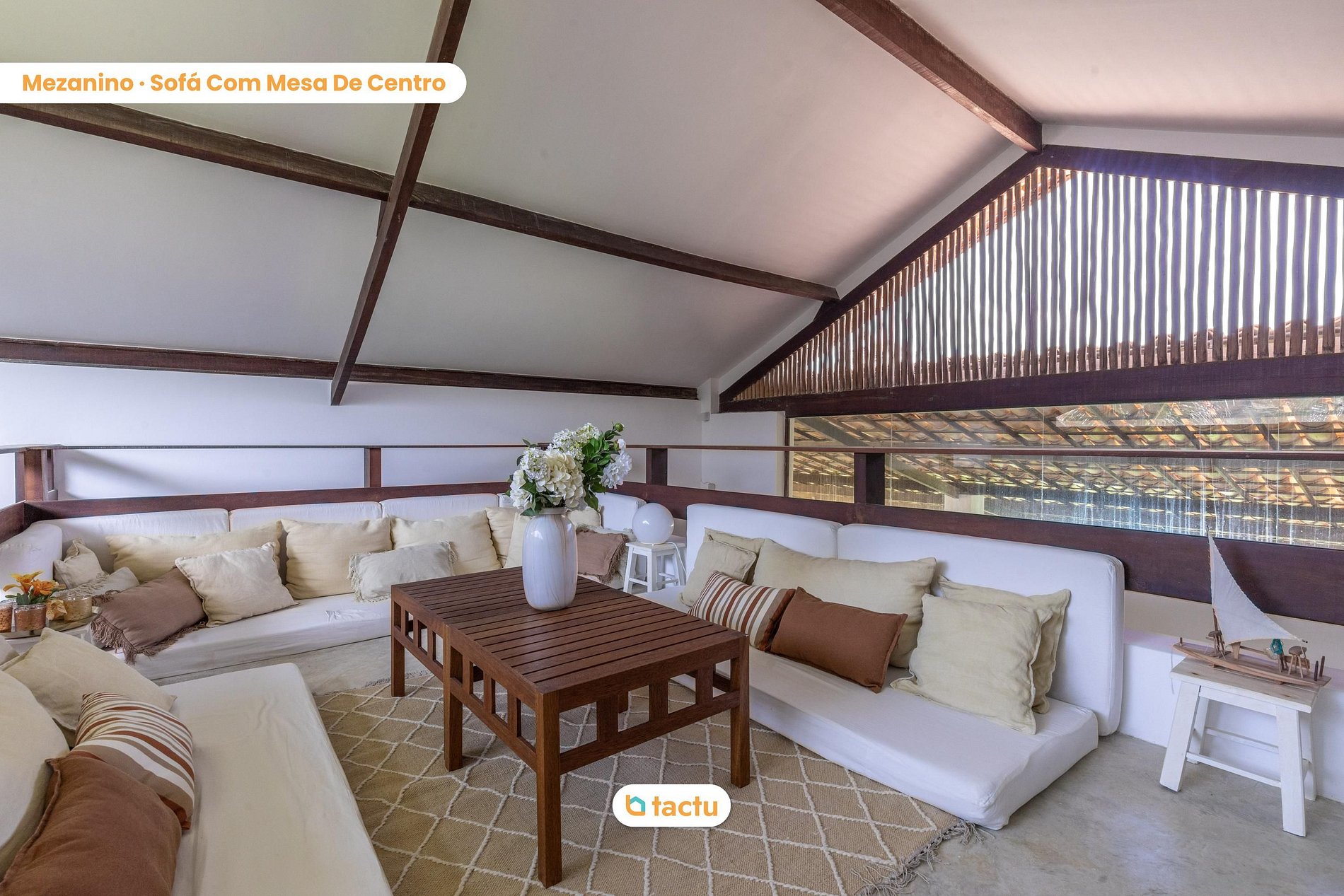 Casa Atlântica acomoda cómodamente hasta 8 personas, rodeada de un hermoso jardín con piscina y gazebo. La casa principal cuenta con tres suites, una cocina completamente equipada, sala de estar, baño compartido y un altillo. La amplia terraza con vista al mar ofrece un área de comedor, muebles de exterior, hamacas y cómodos asientos.