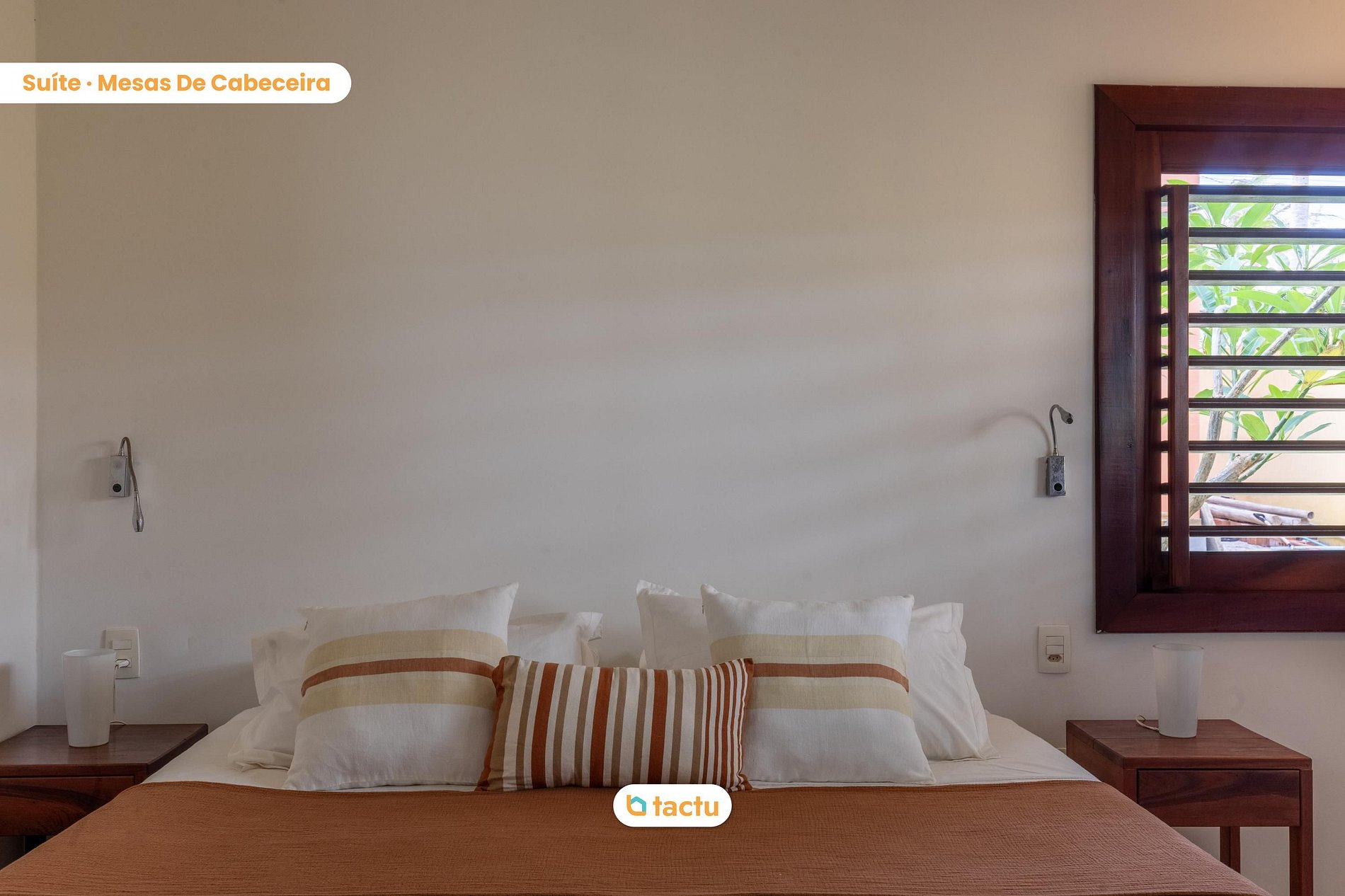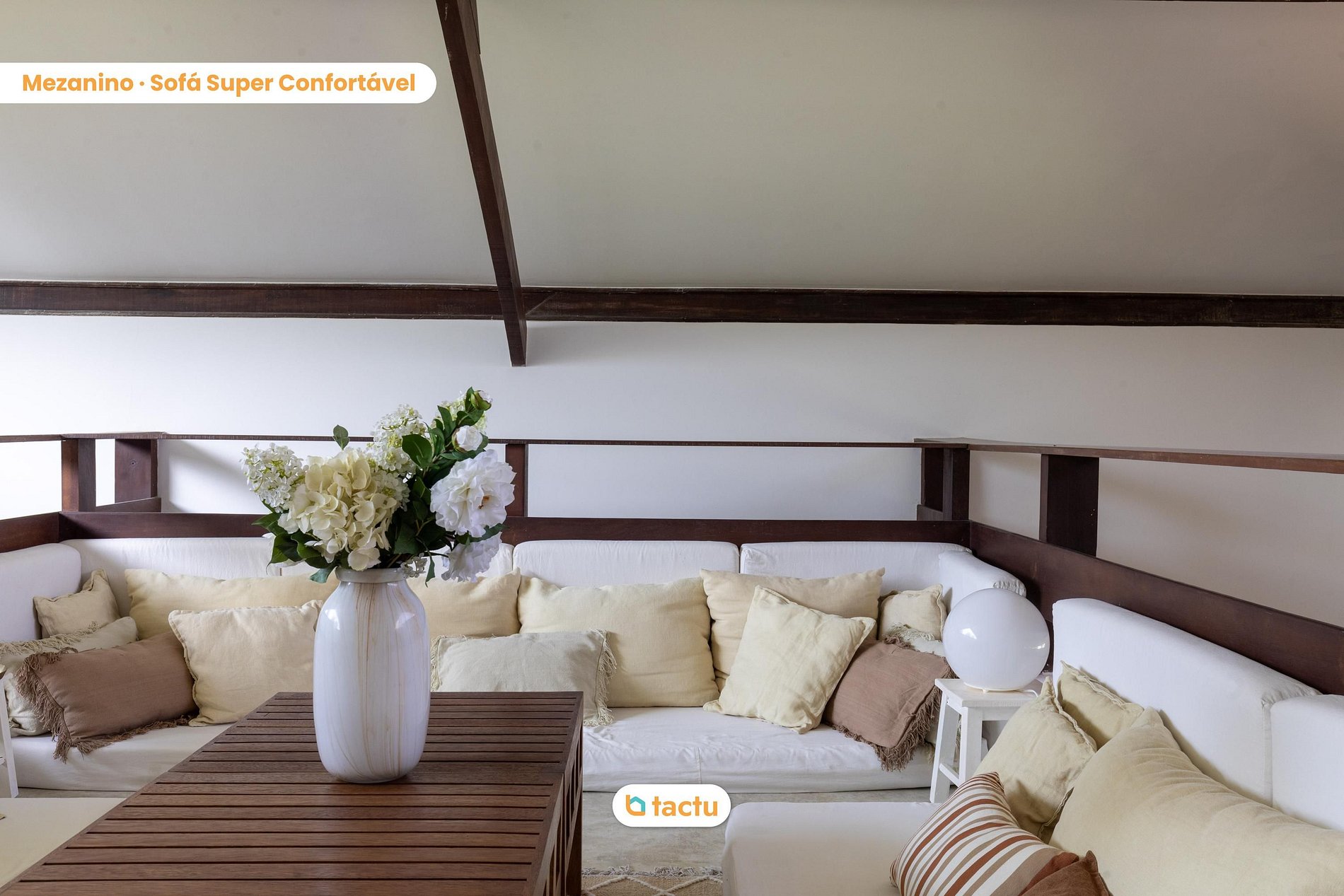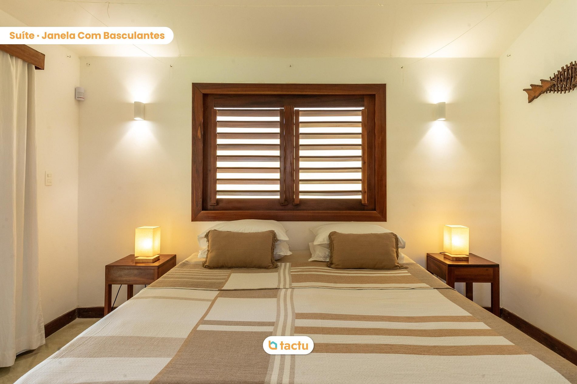 Casa Atlântica acomoda cómodamente hasta 8 personas, rodeada de un hermoso jardín con piscina y gazebo. La casa principal cuenta con tres suites, una cocina completamente equipada, sala de estar, baño compartido y un altillo. La amplia terraza con vista al mar ofrece un área de comedor, muebles de exterior, hamacas y cómodos asientos.