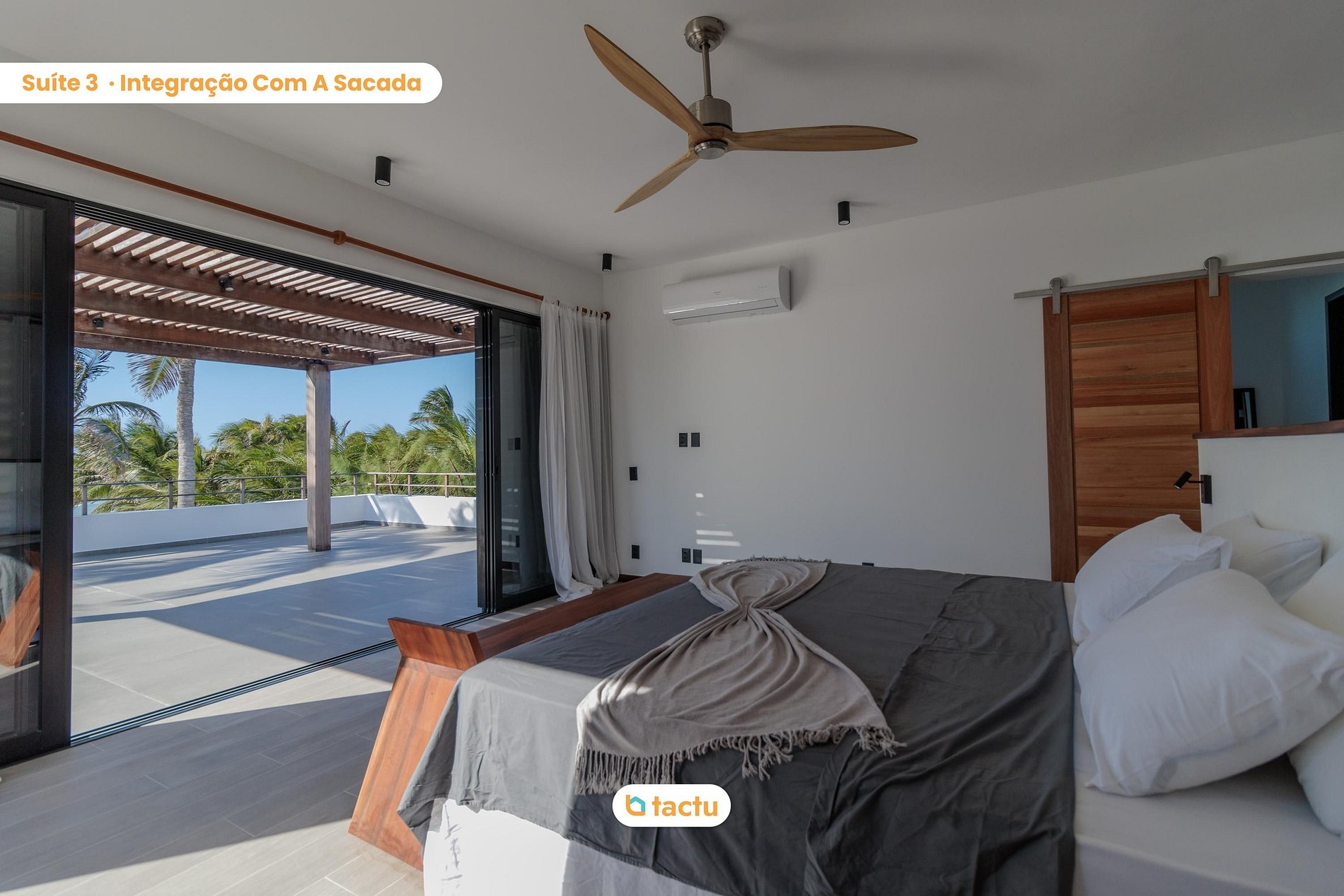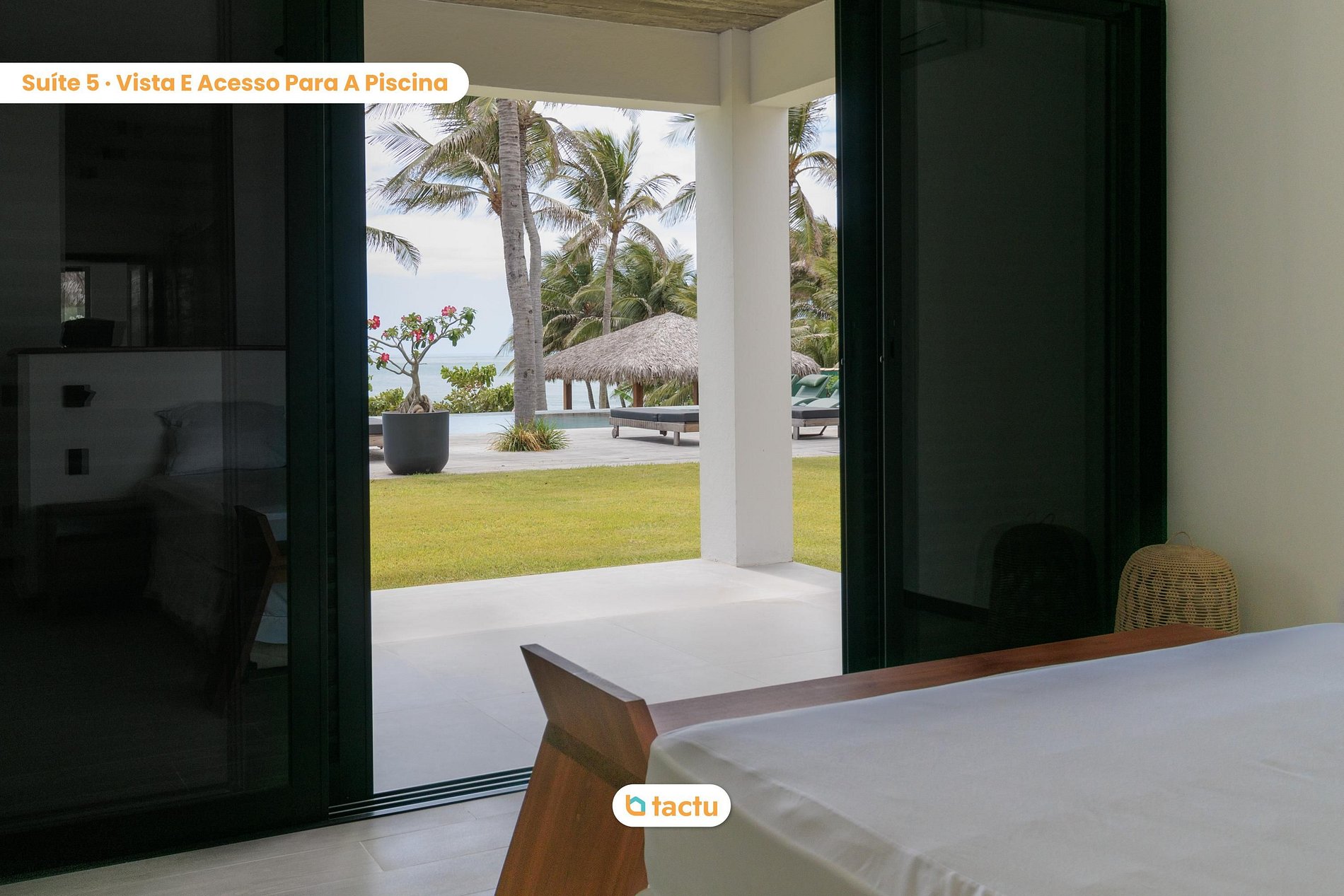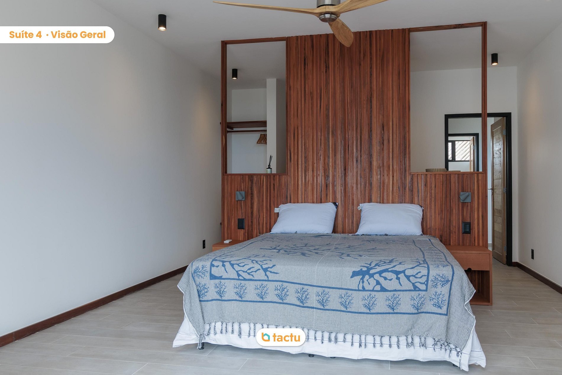 En el interior, la casa cuenta con 6 suites nuevas, todas climatizadas, con una decoración moderna y acogedora. Cada suite tiene una cama king y un colchón de alta calidad para noches tranquilas y reparadoras, además de baño privado con vista al mar, que ofrece total privacidad. Acomodamos hasta 12 adultos y 2 niños cómodamente.