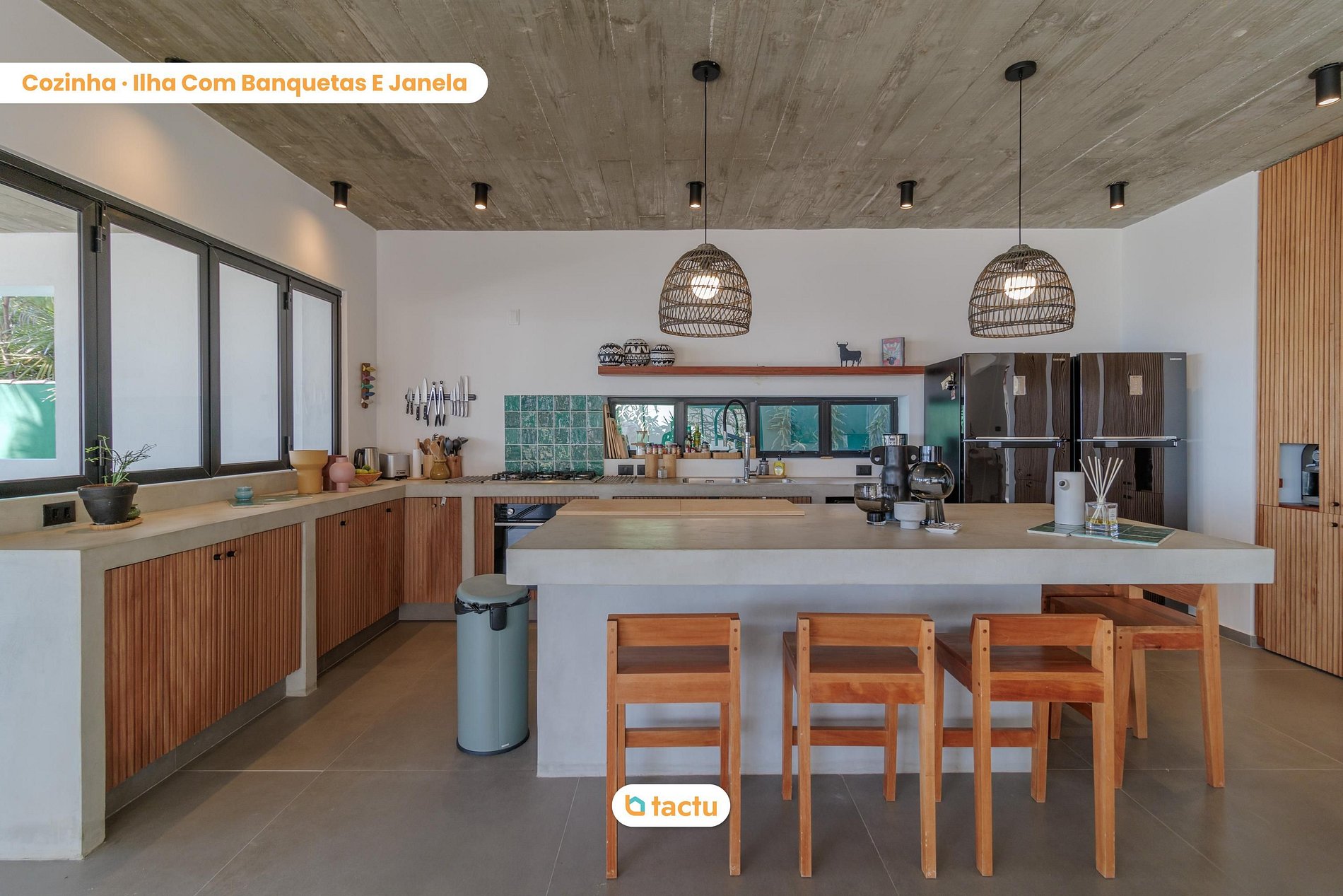 La zona exterior es un punto destacado, con una piscina infinita y una amplia terraza de madera. Equipado con muebles nuevos, el deck es perfecto para relajarse al sol o a la sombra, con la suave brisa del mar. Tenemos todo lo que necesitas, además de extras como freidora de aire y barbacoa.