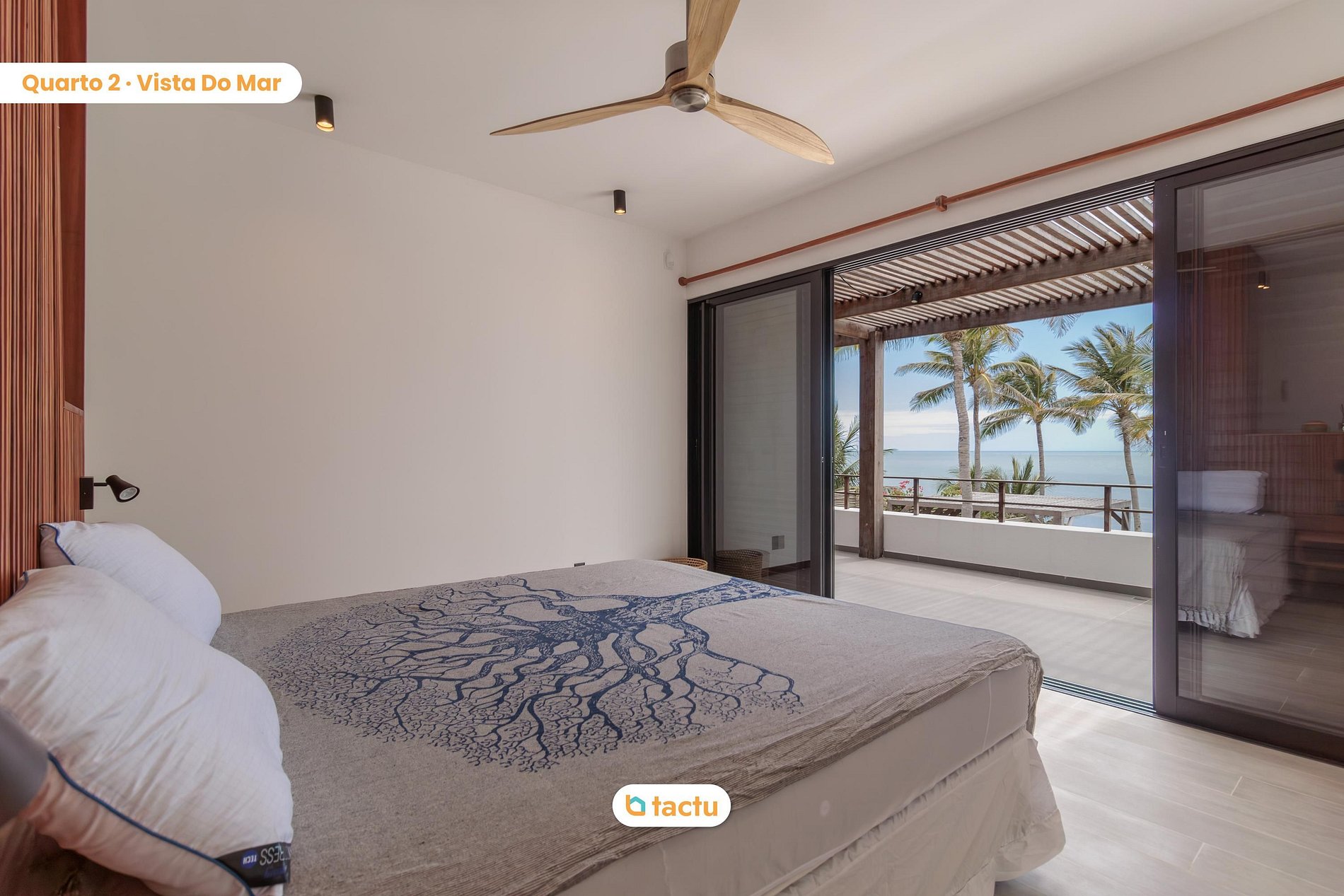 En el interior, la casa cuenta con 6 suites nuevas, todas climatizadas, con una decoración moderna y acogedora. Cada suite tiene una cama king y un colchón de alta calidad para noches tranquilas y reparadoras, además de baño privado con vista al mar, que ofrece total privacidad. Acomodamos hasta 12 adultos y 2 niños cómodamente.