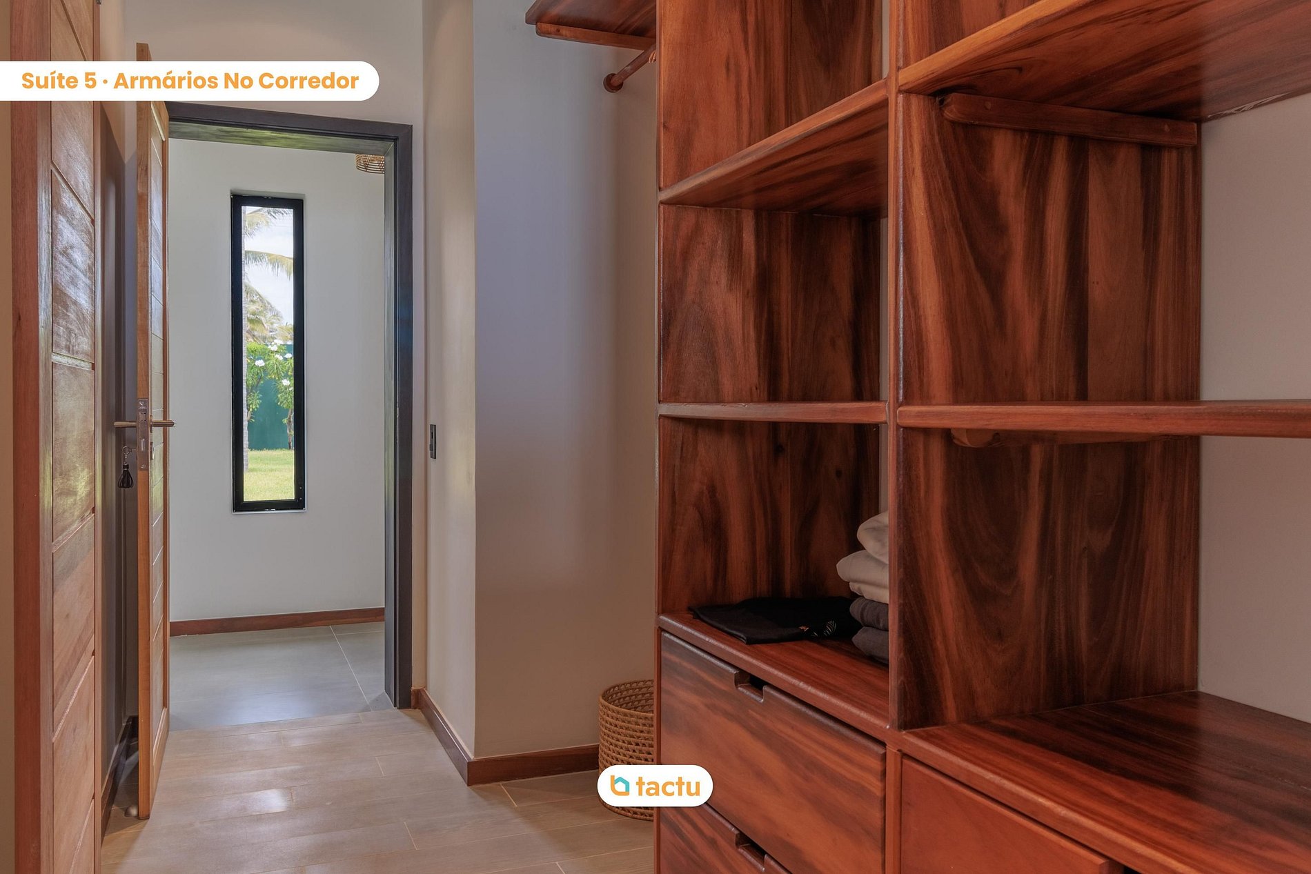 En el interior, la casa cuenta con 6 suites nuevas, todas climatizadas, con una decoración moderna y acogedora. Cada suite tiene una cama king y un colchón de alta calidad para noches tranquilas y reparadoras, además de baño privado con vista al mar, que ofrece total privacidad. Acomodamos hasta 12 adultos y 2 niños cómodamente.