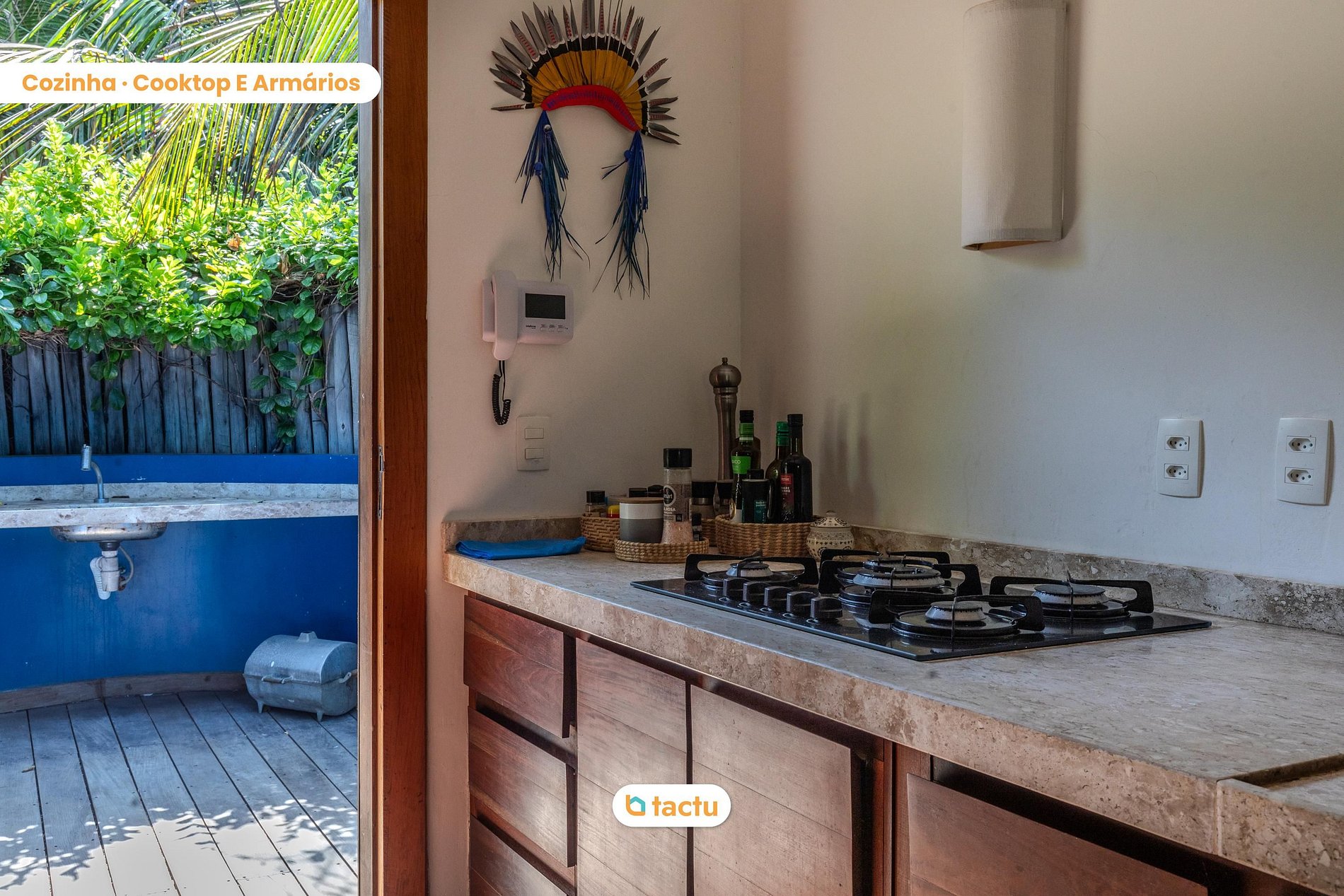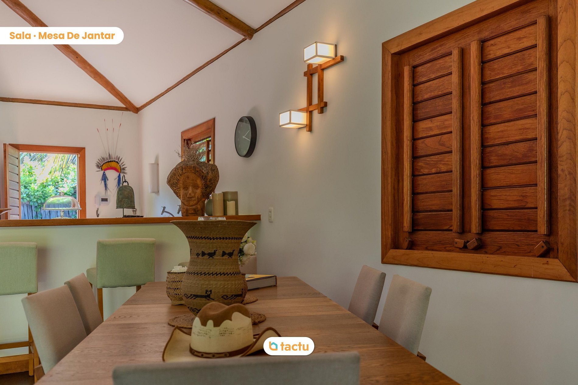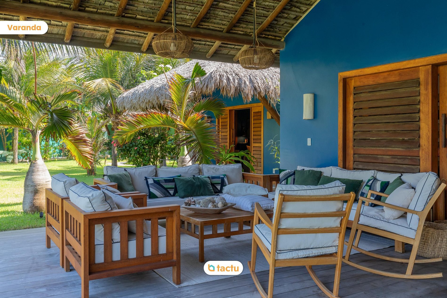La encantadora fachada de la villa presenta un techo de paja y elementos de madera, integrándose perfectamente con el entorno natural. La casa cuenta con una cocina completamente equipada, con todos los utensilios y electrodomésticos necesarios para brindar comodidad y confort a los huéspedes. Además, ofrece ocho suites, todas climatizadas y diseñadas para asegurar el máximo bienestar.