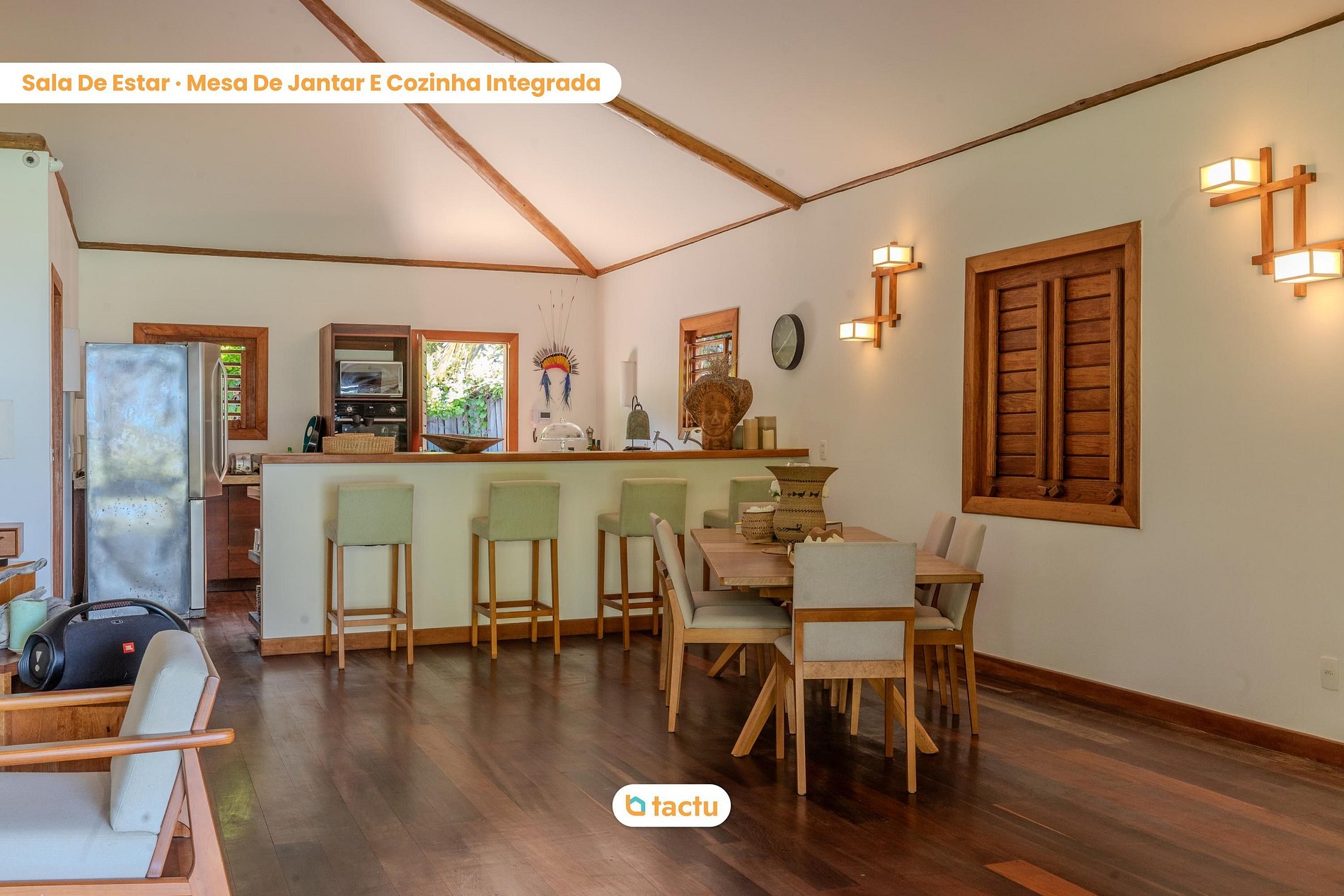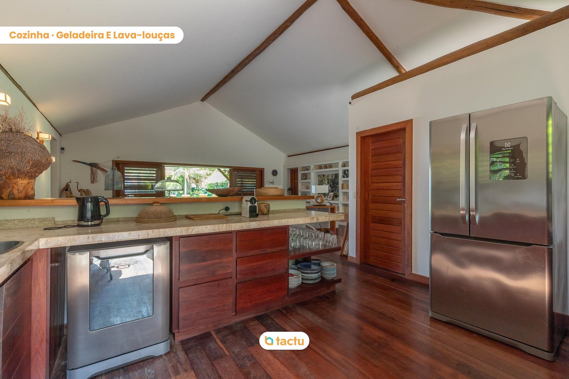 La encantadora fachada de la villa presenta un techo de paja y elementos de madera, integrándose perfectamente con el entorno natural. La casa cuenta con una cocina completamente equipada, con todos los utensilios y electrodomésticos necesarios para brindar comodidad y confort a los huéspedes. Además, ofrece ocho suites, todas climatizadas y diseñadas para asegurar el máximo bienestar.