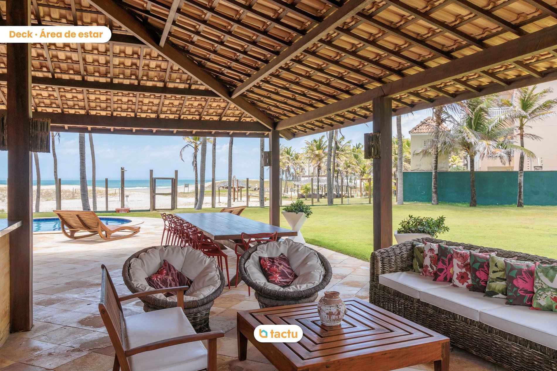 🏊♀️ Cuenta con piscina junto a un hermoso deck frente a la vista al mar, el cual está equipado con asador y cuenta con ¡gran espacio para disfrutar de una velada a tu manera! ¡Ya sea tomando el sol o sintiendo la brisa de la playa a la sombra!