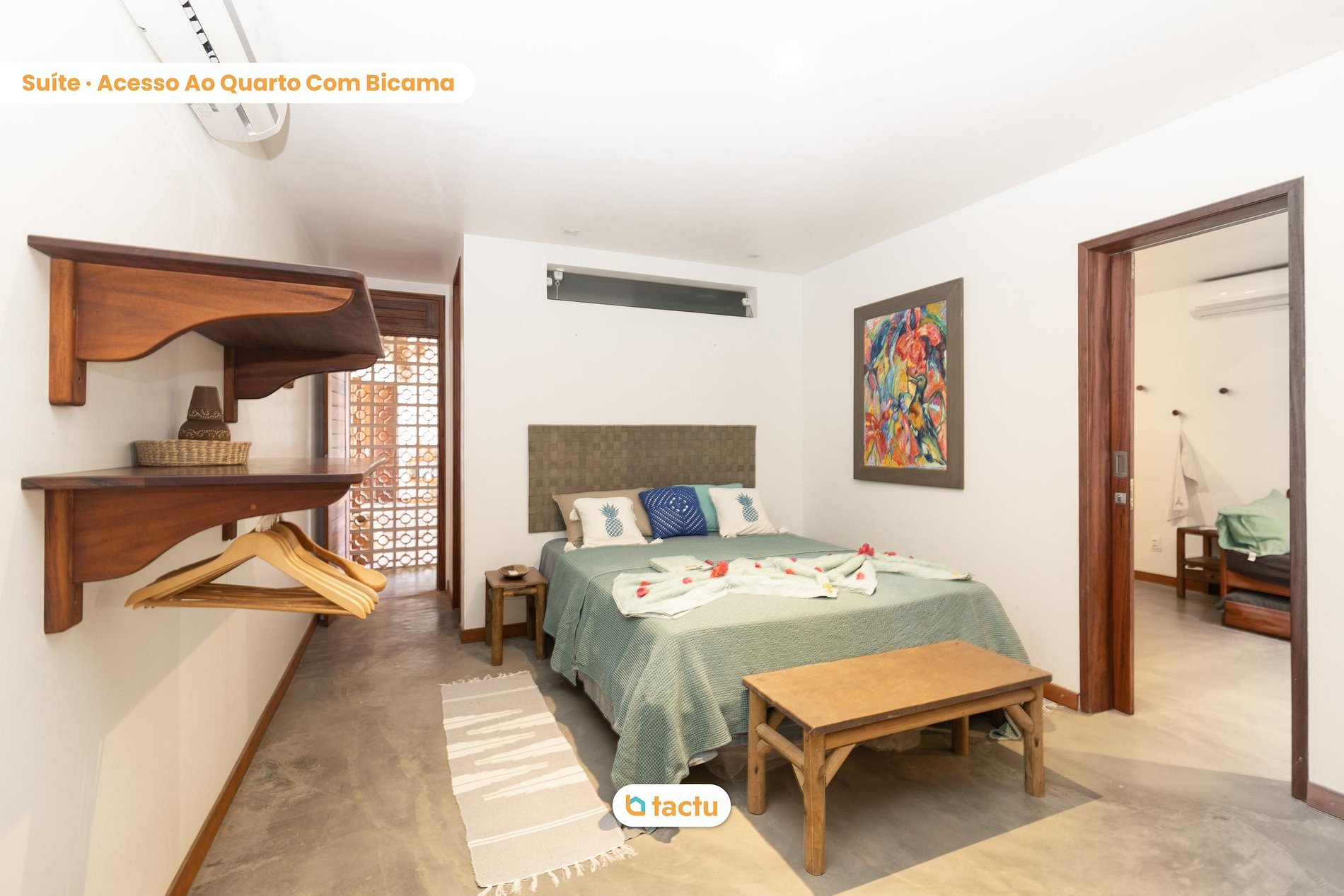 Vila Fatecha es una casa frente al mar en Guajiru, Flecheiras, diseñada para ofrecer confort y exclusividad en uno de los destinos más deseados de Ceará. Con capacidad para 14 personas, la casa cuenta con 6 suites espaciosas, 5 con camas queen y 1 suite con cama nido y litera (ideal para alojar más personas cómodamente). Todas las suites tienen aire acondicionado, están decoradas con un encanto brasileño y cuentan con armarios, estantes de apoyo y espejos, proporcionando la máxima practicidad y confort.