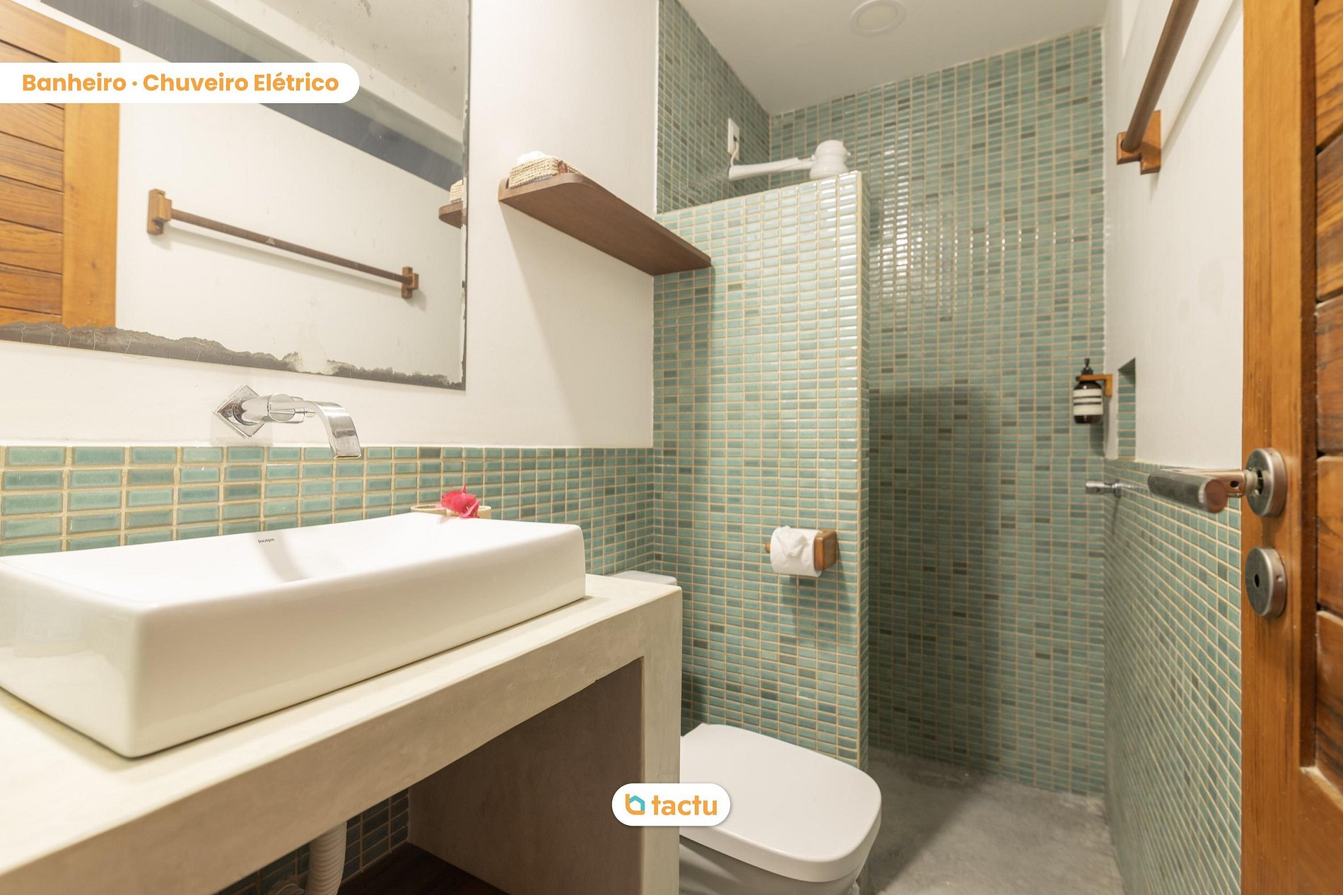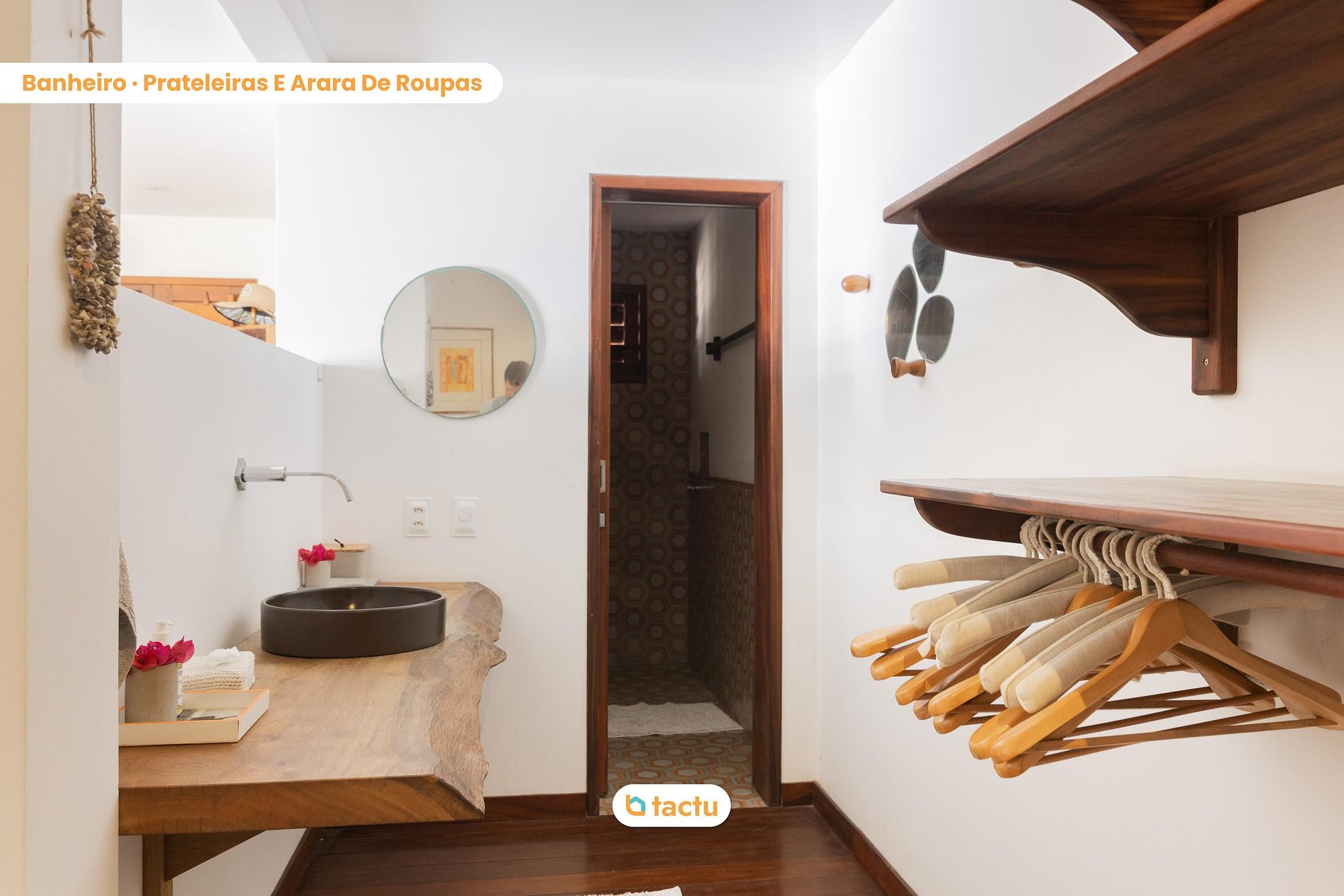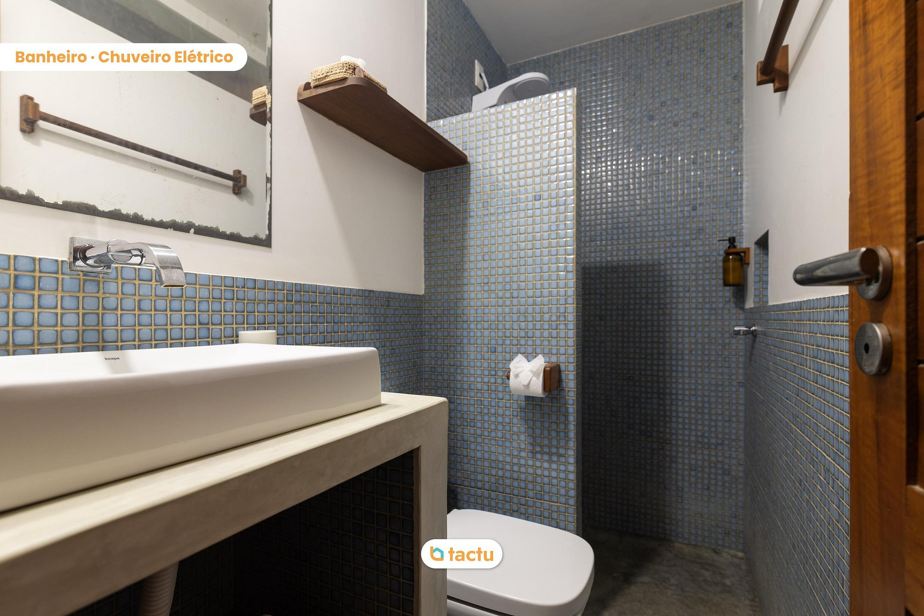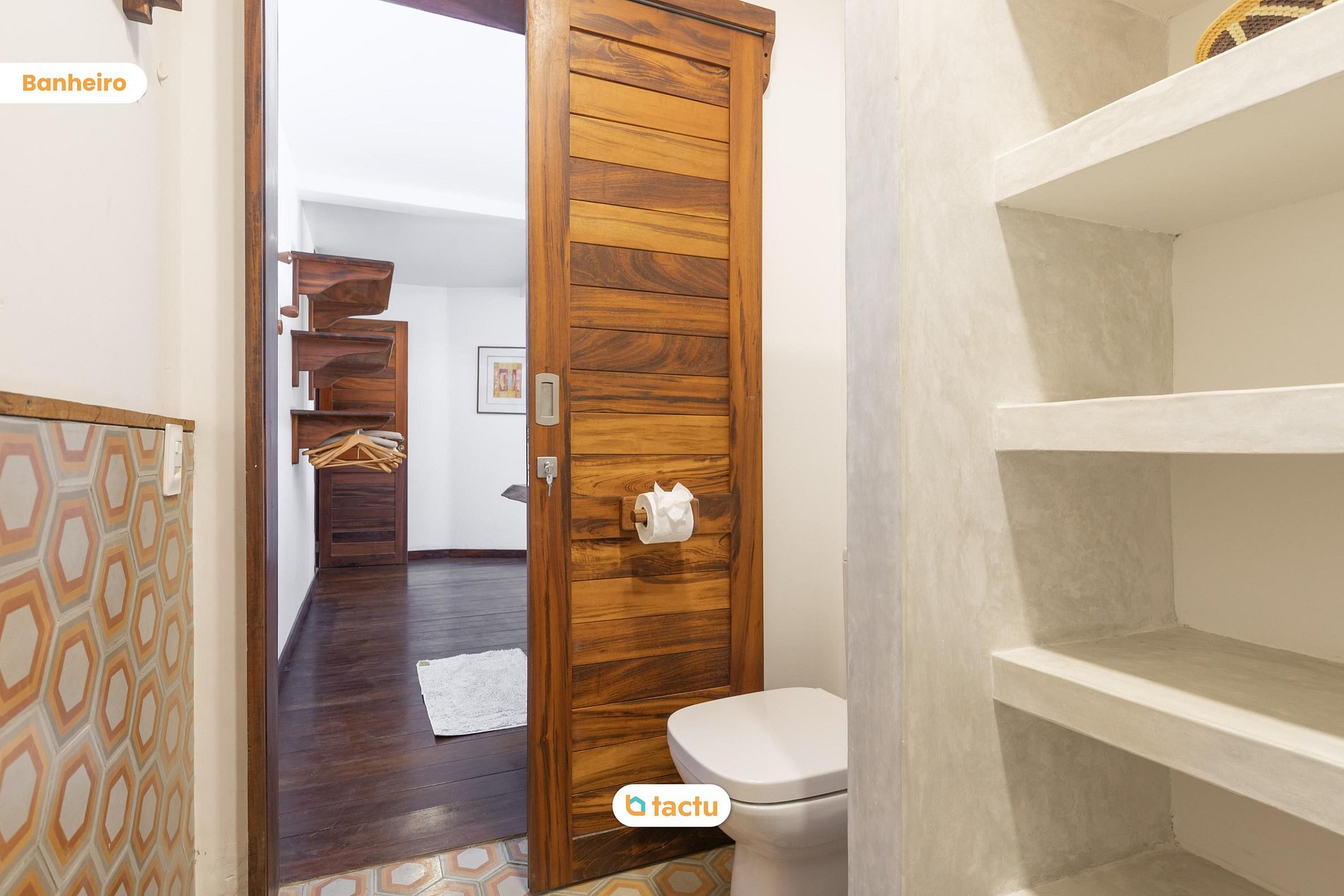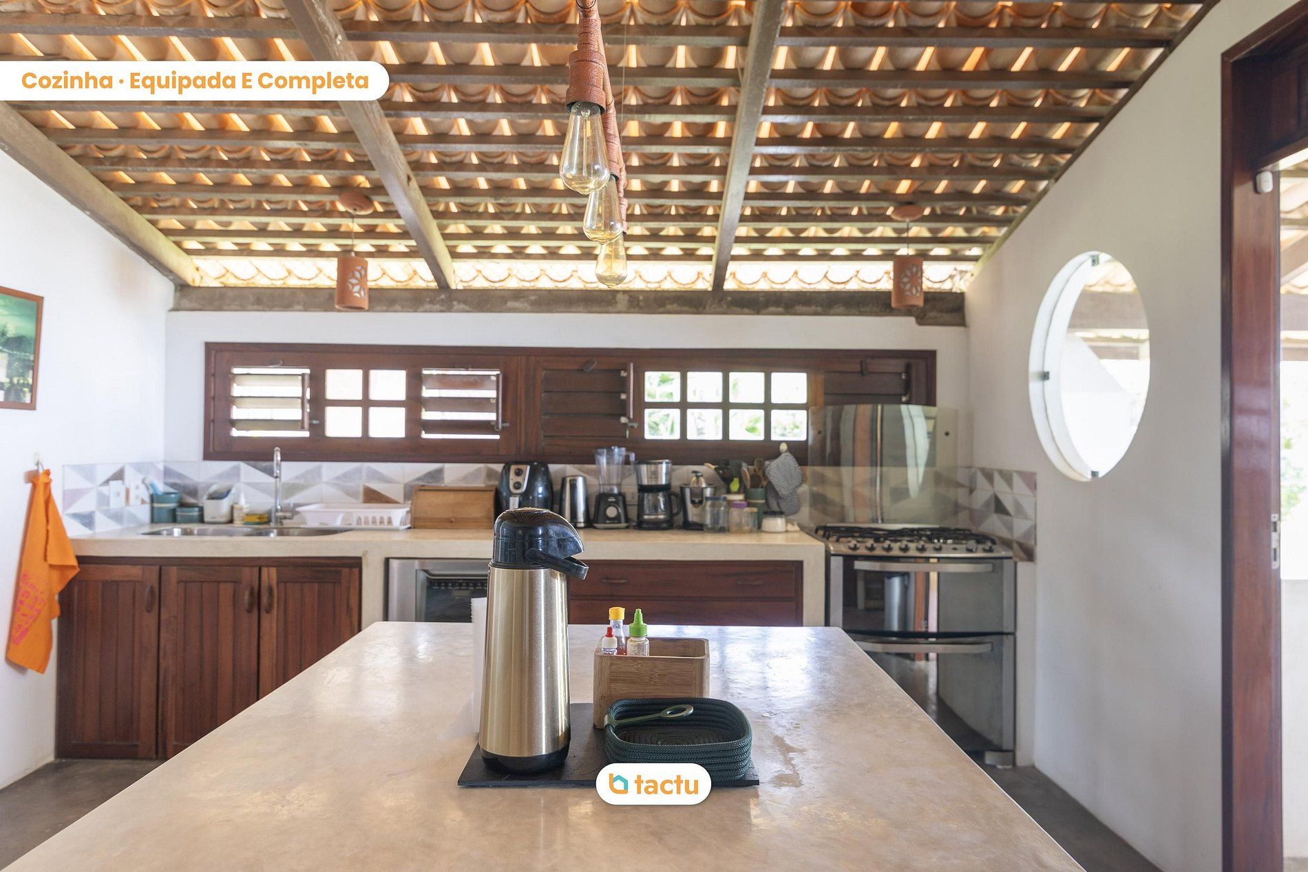 La casa también cuenta con lavadero equipado con lavadora, congelador vertical y espacio para almacenar garrafones y filtro de agua. Con una decoración acogedora y moderna, destacando las paredes de cobogós que garantizan ventilación e iluminación natural, Vila Fatecha ofrece una verdadera experiencia de refugio de lujo y privacidad frente al mar.