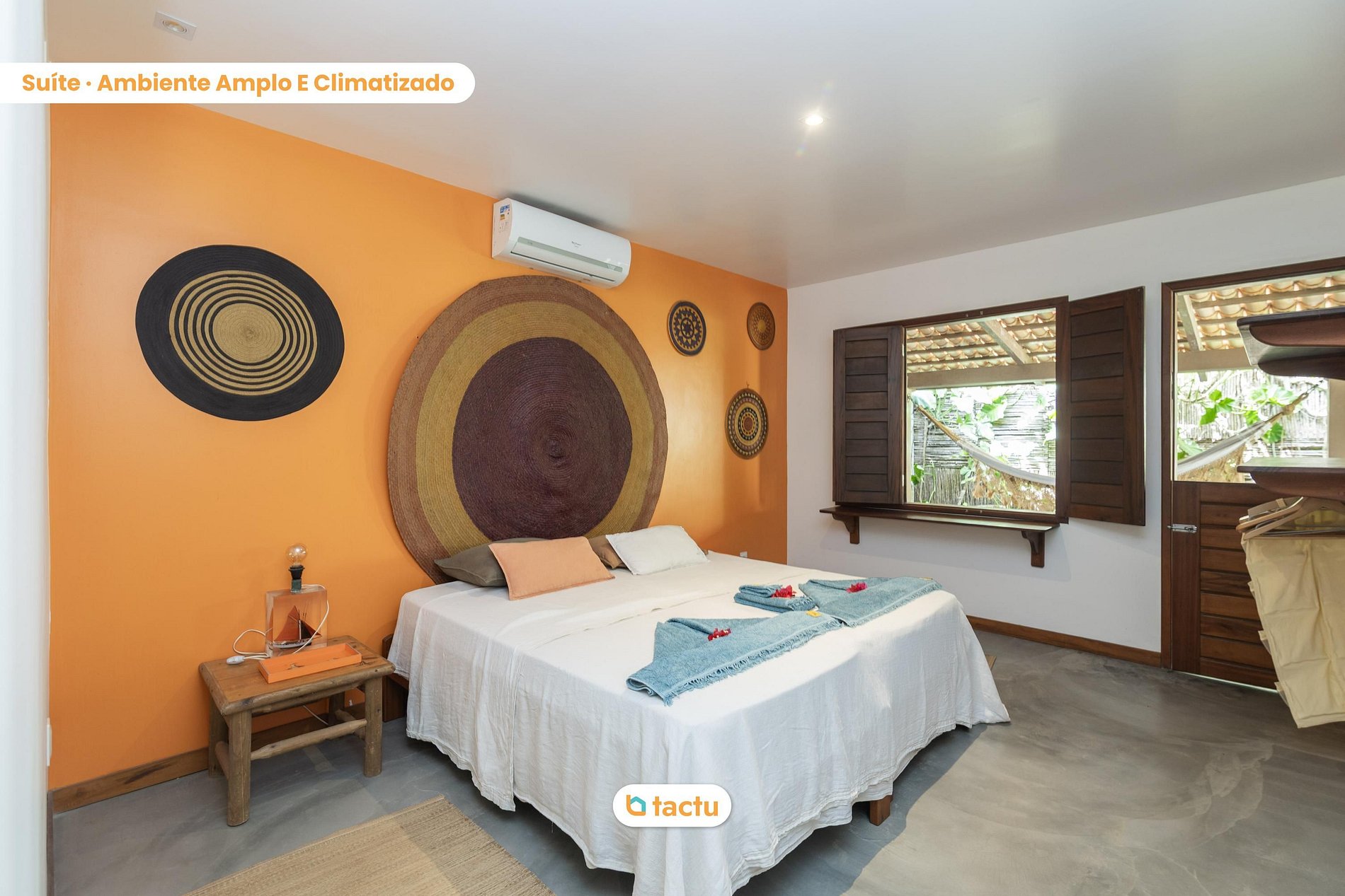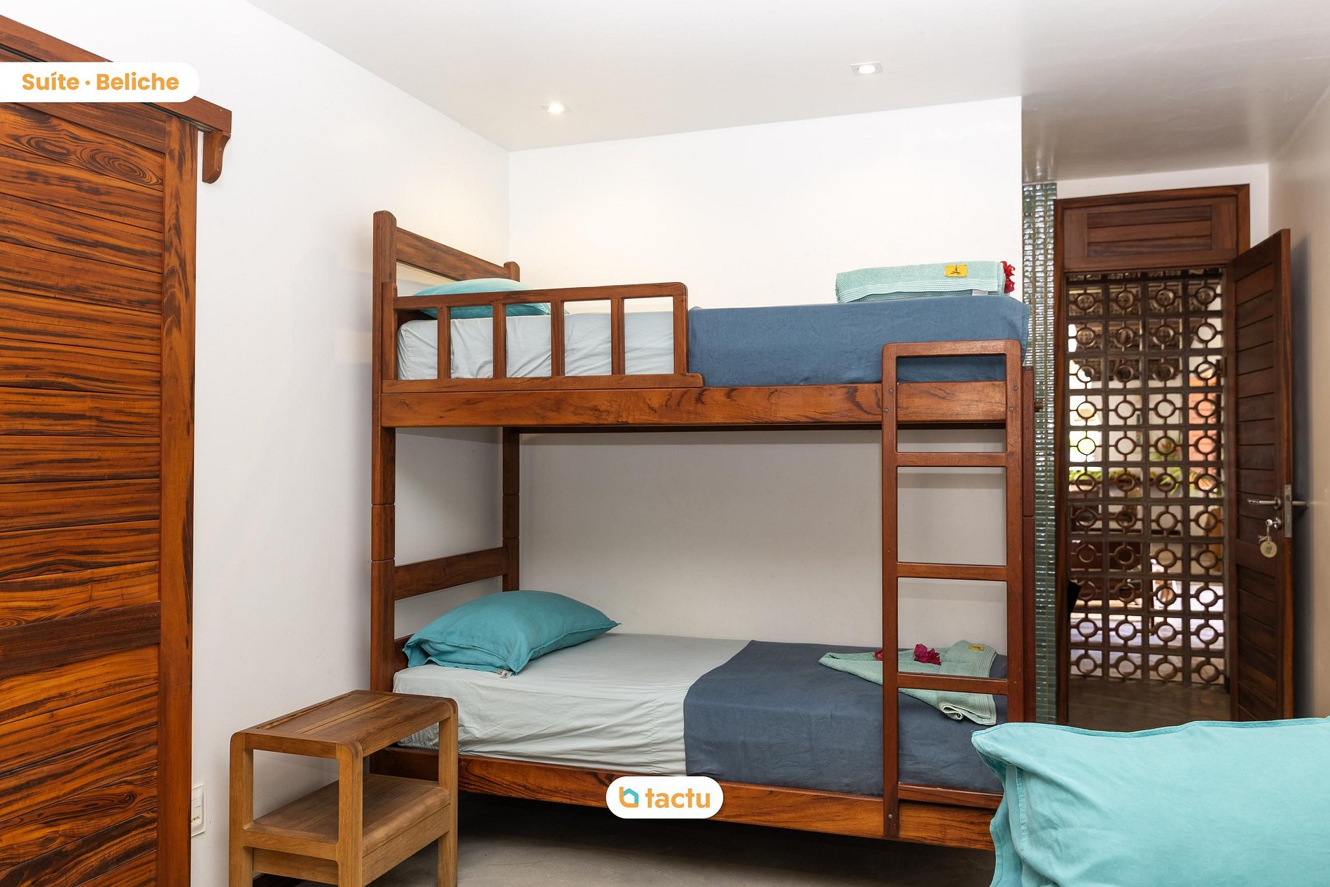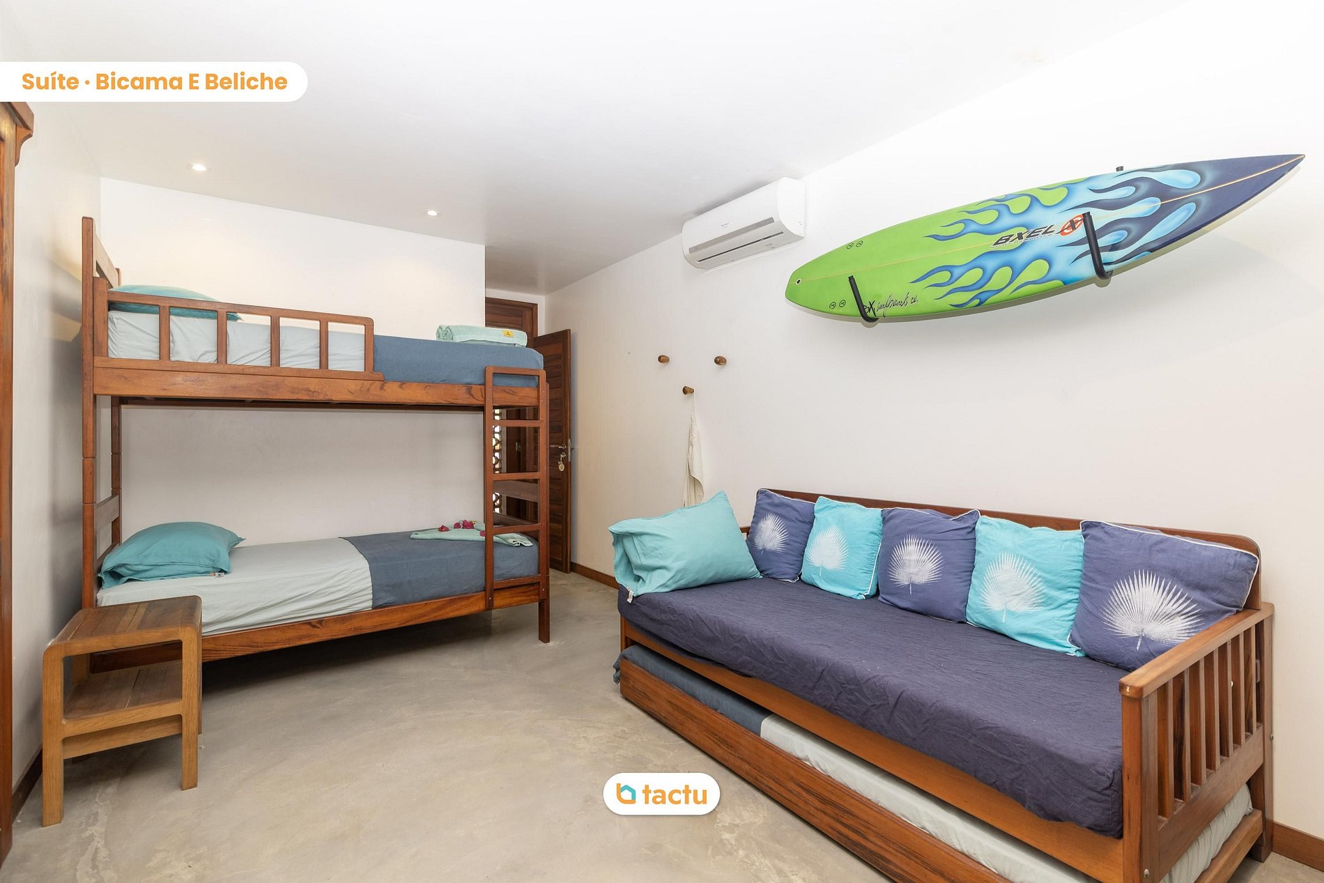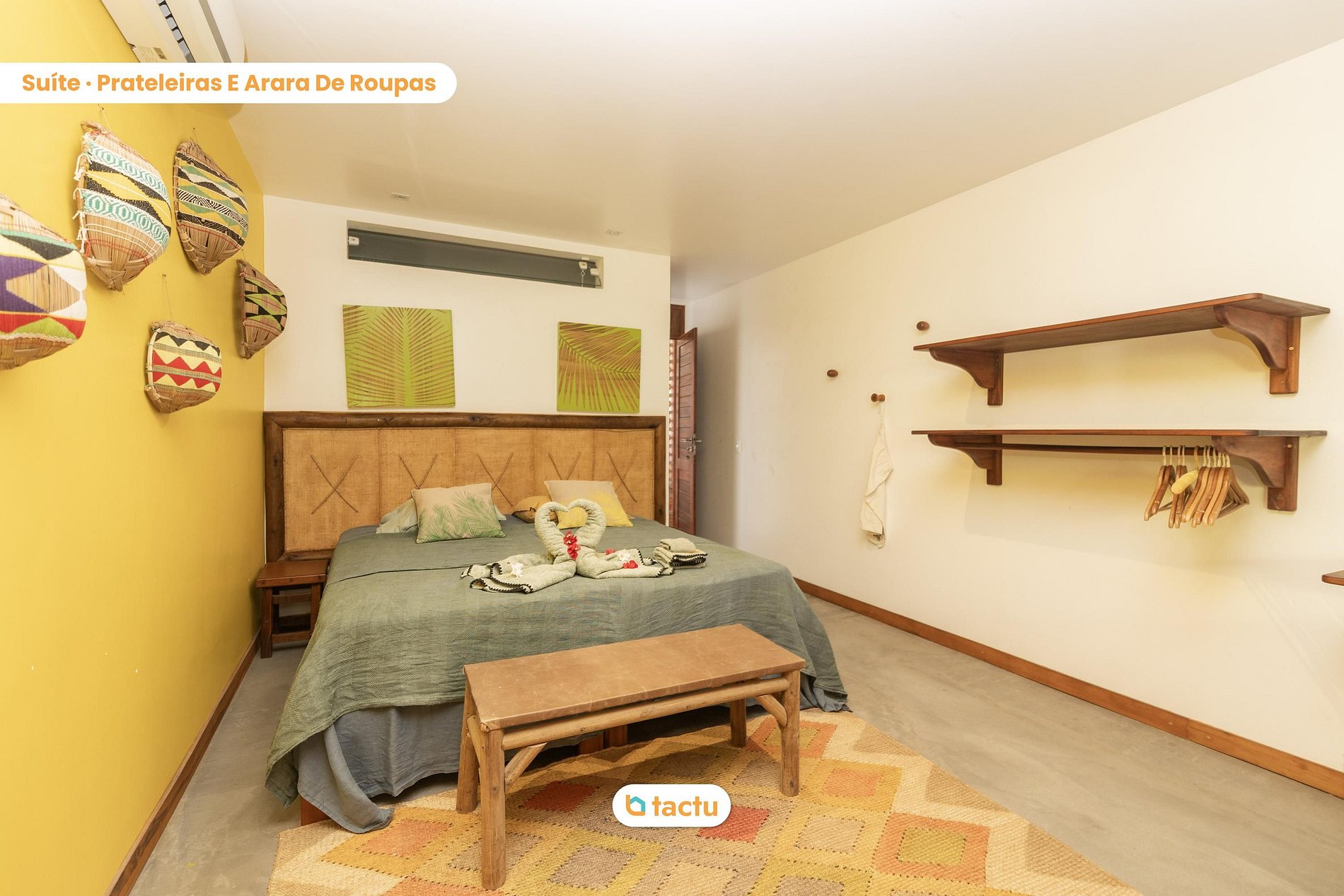 Vila Fatecha es una casa frente al mar en Guajiru, Flecheiras, diseñada para ofrecer confort y exclusividad en uno de los destinos más deseados de Ceará. Con capacidad para 14 personas, la casa cuenta con 6 suites espaciosas, 5 con camas queen y 1 suite con cama nido y litera (ideal para alojar más personas cómodamente). Todas las suites tienen aire acondicionado, están decoradas con un encanto brasileño y cuentan con armarios, estantes de apoyo y espejos, proporcionando la máxima practicidad y confort.