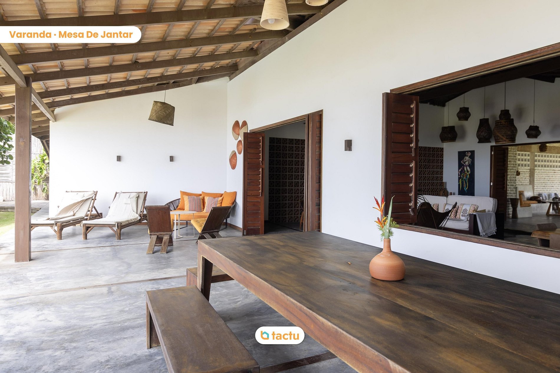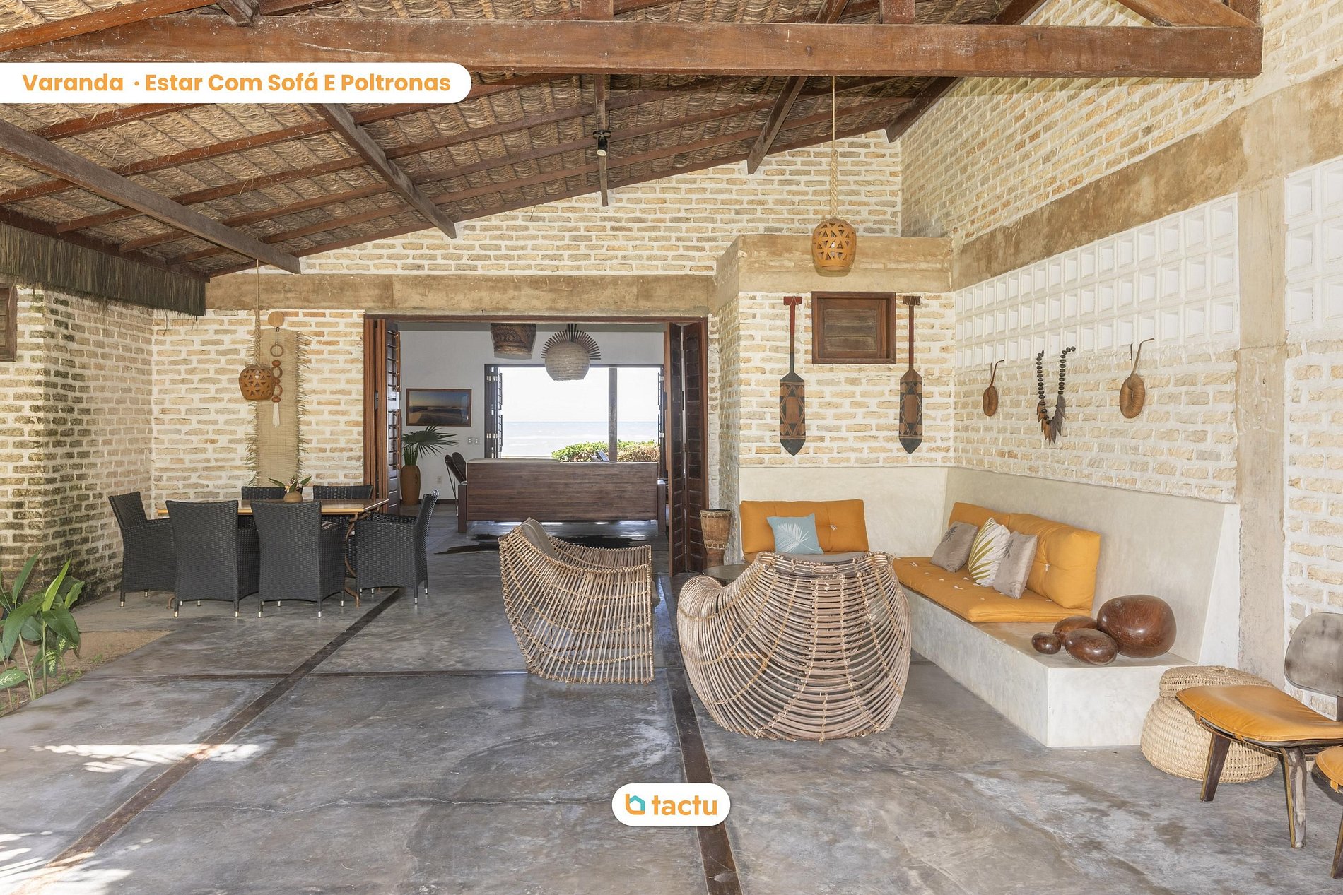 Disfruta momentos inolvidables en Vila Fatecha, una casa acogedora y bien equipada frente al mar en Guajiru, Flecheiras. Ideal para familias o grupos, acomoda hasta 14 personas con confort y privacidad. Tu estadía incluye:
