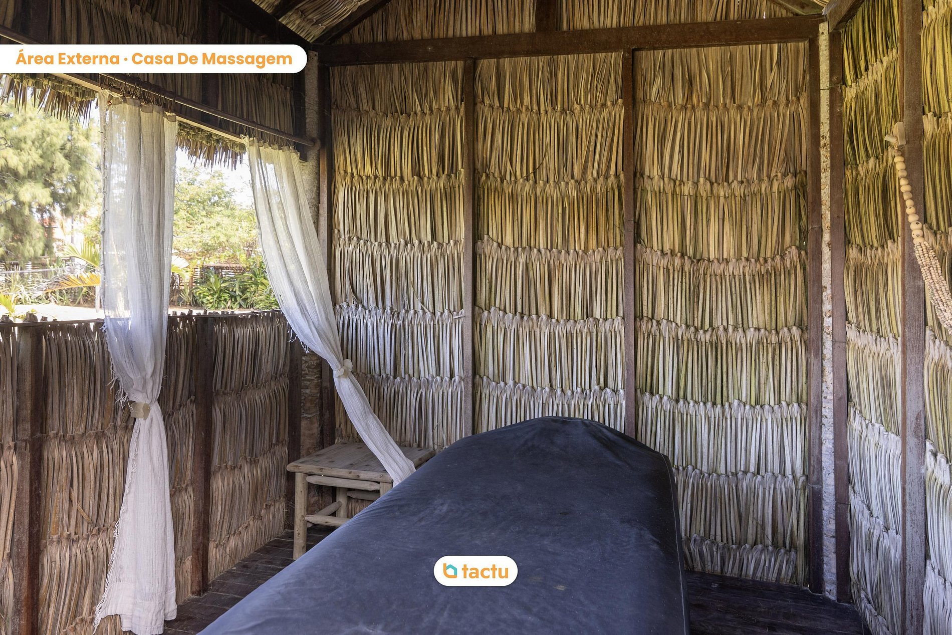 En el área exterior, la piscina es el punto culminante, acompañada de un amplio césped que complementa el espacio. Una parrilla fija y una mesa de comedor para 12 personas son ideales para momentos de ocio y confraternización. El espacio también ofrece una cancha de arena para voleibol o tenis de playa, un área cubierta con tumbonas para relajarse y un espacio privado para masajes.