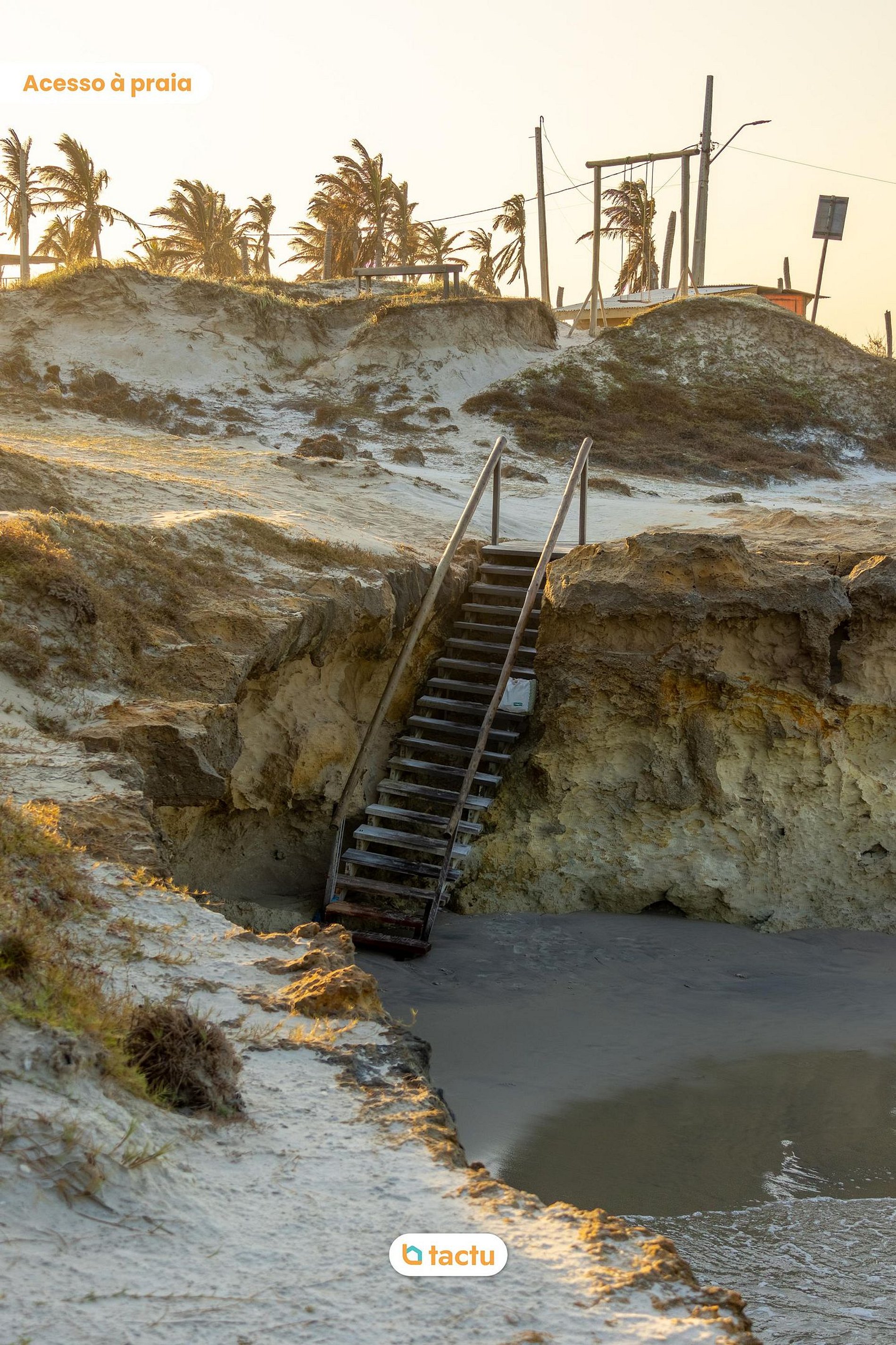 La ubicación es estratégica y encantadora: a solo tres minutos a pie se llega al Mirador del Atardecer, uno de los más bonitos de Ceará, con un pequeño bar para disfrutar de una copa con vista privilegiada. En auto, estás a cinco minutos del centro gastronómico de Pontal de Maceió y a diez minutos del centro de Fortim.