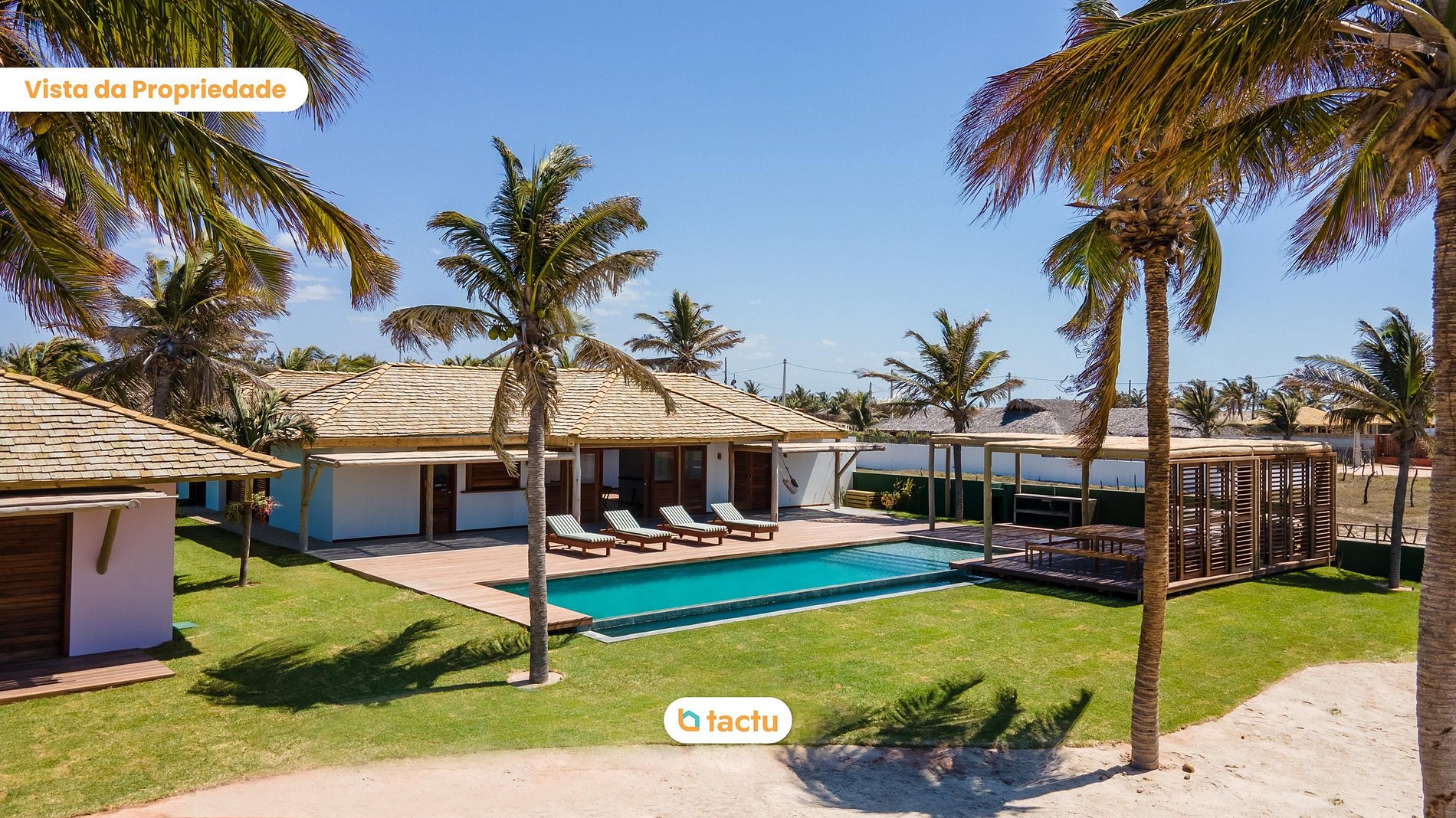 El área exterior es, por sí sola, un espectáculo. Un amplio deck con piscina frente al mar incluye parrilla a carbón, bar privado, gran mesa de comedor en madera maciza y una zona de estar techada con pérgola y sofás con cojines impermeables. El escenario perfecto para tardes soleadas o reuniones al atardecer con la brisa marina.