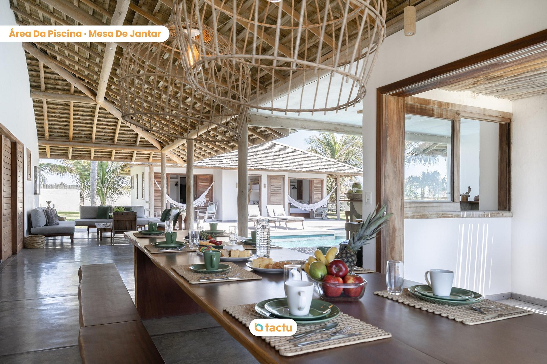 En voiture, en cinq minutes, vous rejoignez le centre de Pontal do Maceió, où vous trouverez diverses options gastronomiques. En dix minutes, vous êtes au centre de Fortim, avec encore plus de choix pour vos loisirs et vos repas. La maison est parfaite pour les grands groupes souhaitant profiter de journées à la plage sans soucis, sans renoncer au confort et au raffinement.
