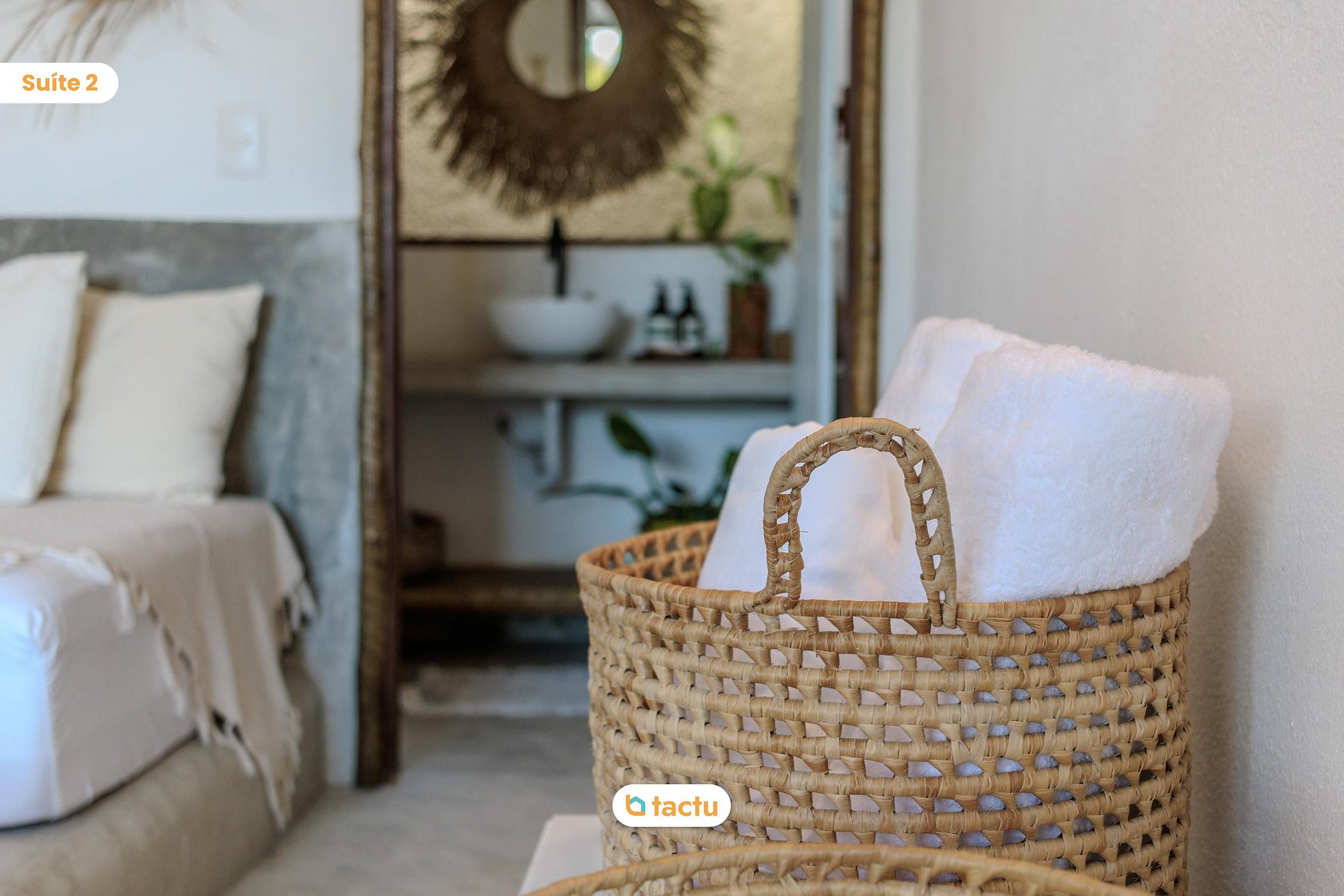 La maison dispose de 5 suites spacieuses et climatisées, soigneusement décorées et équipées pour garantir un repos profond et un confort optimal en toute saison. Chaque détail reflète une esthétique naturelle et chaleureuse, signature de la Casa Slow.