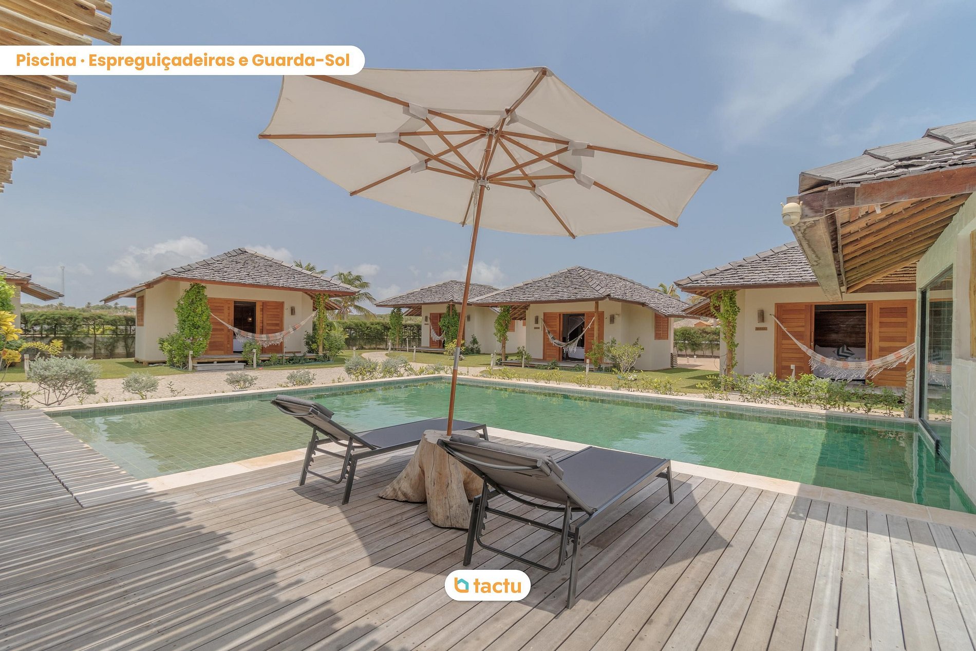 Notre maison accueille confortablement jusqu'à 22 personnes, qui séjourneront dans 6 cabines individuelles. La maison a été construite en s'inspirant du charme de la Ville Merveilleuse, où chaque bungalow porte le nom d'un quartier de Rio de Janeiro. Tous les bungalows sont des suites complètes et indépendantes, reliées par des chemins en pierre portugais simulant la promenade des plages de Rio. Ils disposent tous de la climatisation split, de l'eau chaude, de placards intégrés et d'un balcon avec hamac !