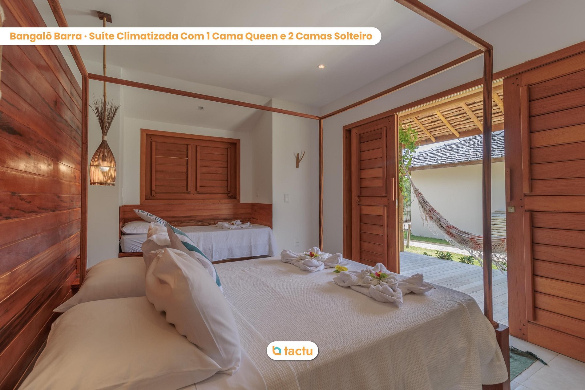 Notre maison accueille confortablement jusqu'à 22 personnes, qui séjourneront dans 6 cabines individuelles. La maison a été construite en s'inspirant du charme de la Ville Merveilleuse, où chaque bungalow porte le nom d'un quartier de Rio de Janeiro. Tous les bungalows sont des suites complètes et indépendantes, reliées par des chemins en pierre portugais simulant la promenade des plages de Rio. Ils disposent tous de la climatisation split, de l'eau chaude, de placards intégrés et d'un balcon avec hamac !