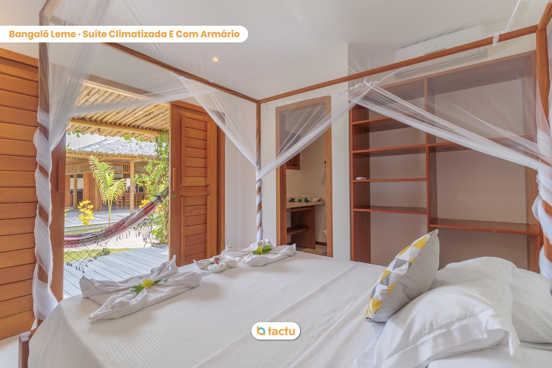 Notre maison accueille confortablement jusqu'à 22 personnes, qui séjourneront dans 6 cabines individuelles. La maison a été construite en s'inspirant du charme de la Ville Merveilleuse, où chaque bungalow porte le nom d'un quartier de Rio de Janeiro. Tous les bungalows sont des suites complètes et indépendantes, reliées par des chemins en pierre portugais simulant la promenade des plages de Rio. Ils disposent tous de la climatisation split, de l'eau chaude, de placards intégrés et d'un balcon avec hamac !
