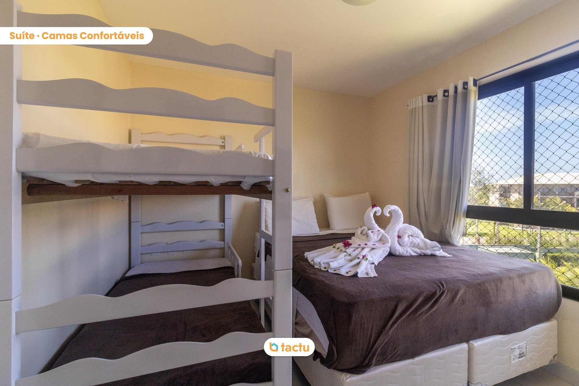 Notre appartement fait environ 63 m² et est situé dans une zone privilégiée du condominium. Il se trouve au quatrième étage du bloc B2, à environ 60 mètres de la piscine. Accueille jusqu’à 6 adultes et 2 enfants.