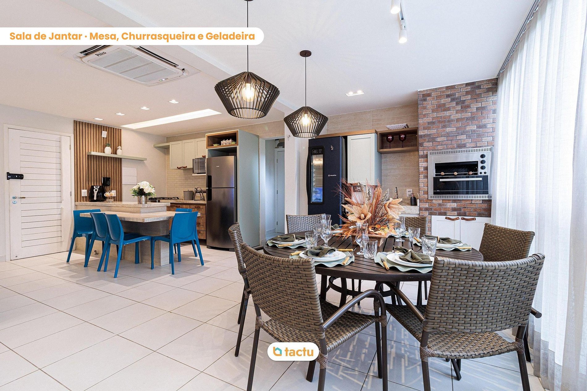La terrasse gourmande est un vrai atout, avec barbecue, vue sur le jardin, grand minibar et une grande table à manger avec vaisselle complète. Elle est intégrée à la cuisine et au salon, dans un design intérieur pensé pour des espaces ouverts et connectés. Tout a été prévu pour votre confort : climatisation dans TOUTES les pièces et eau chaude dans les salles de bain.