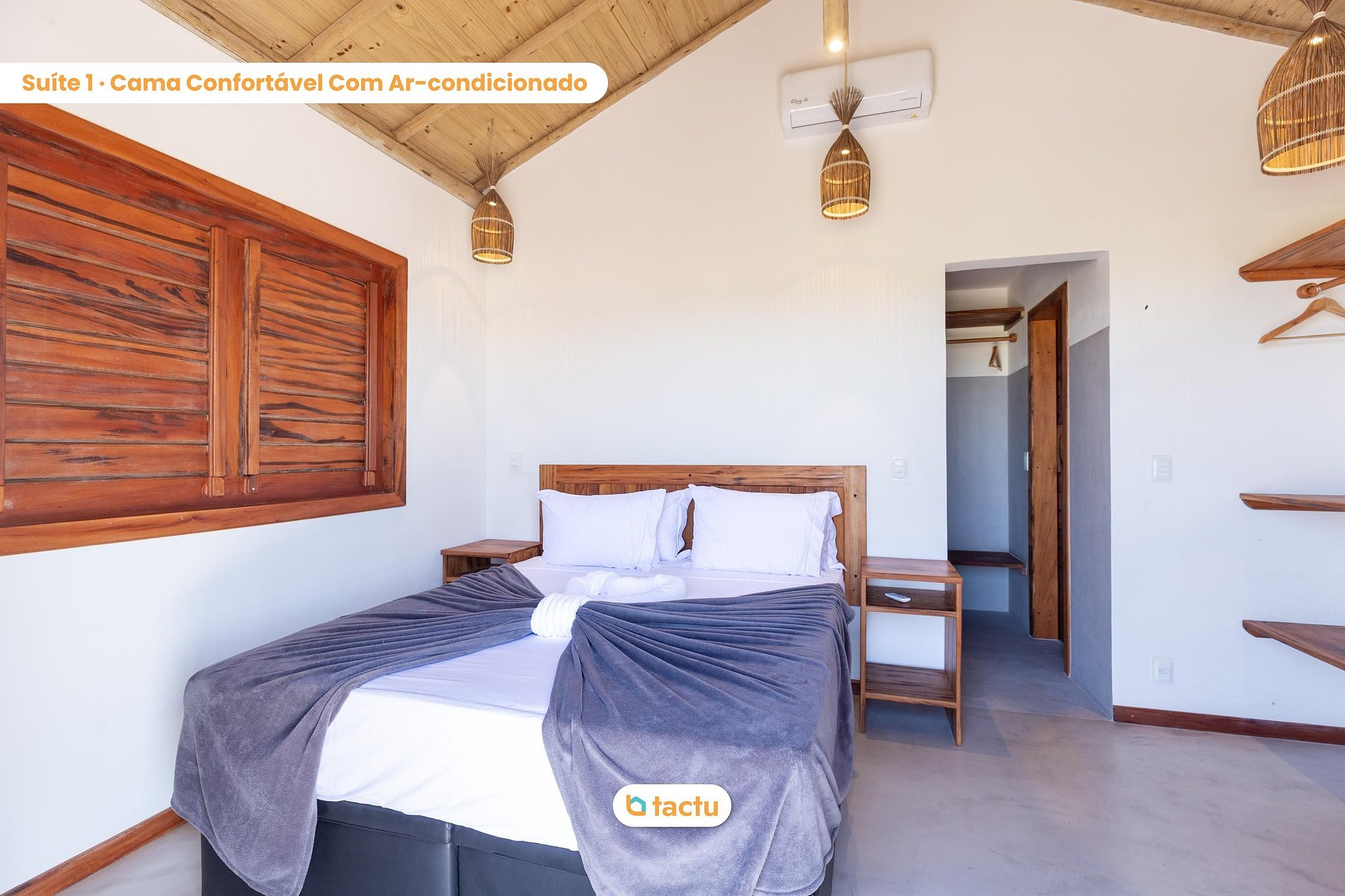 Vivez des moments inoubliables à Fortim, dans le Praia Canoé. Cette maison haut de gamme se trouve dans une résidence fermée, entre le centre de Fortim et Pontal do Maceió, et accueille confortablement jusqu’à 8 personnes, dont adultes, enfants et bébés, au meilleur endroit pour pratiquer le kitesurf. Vous aurez accès à :