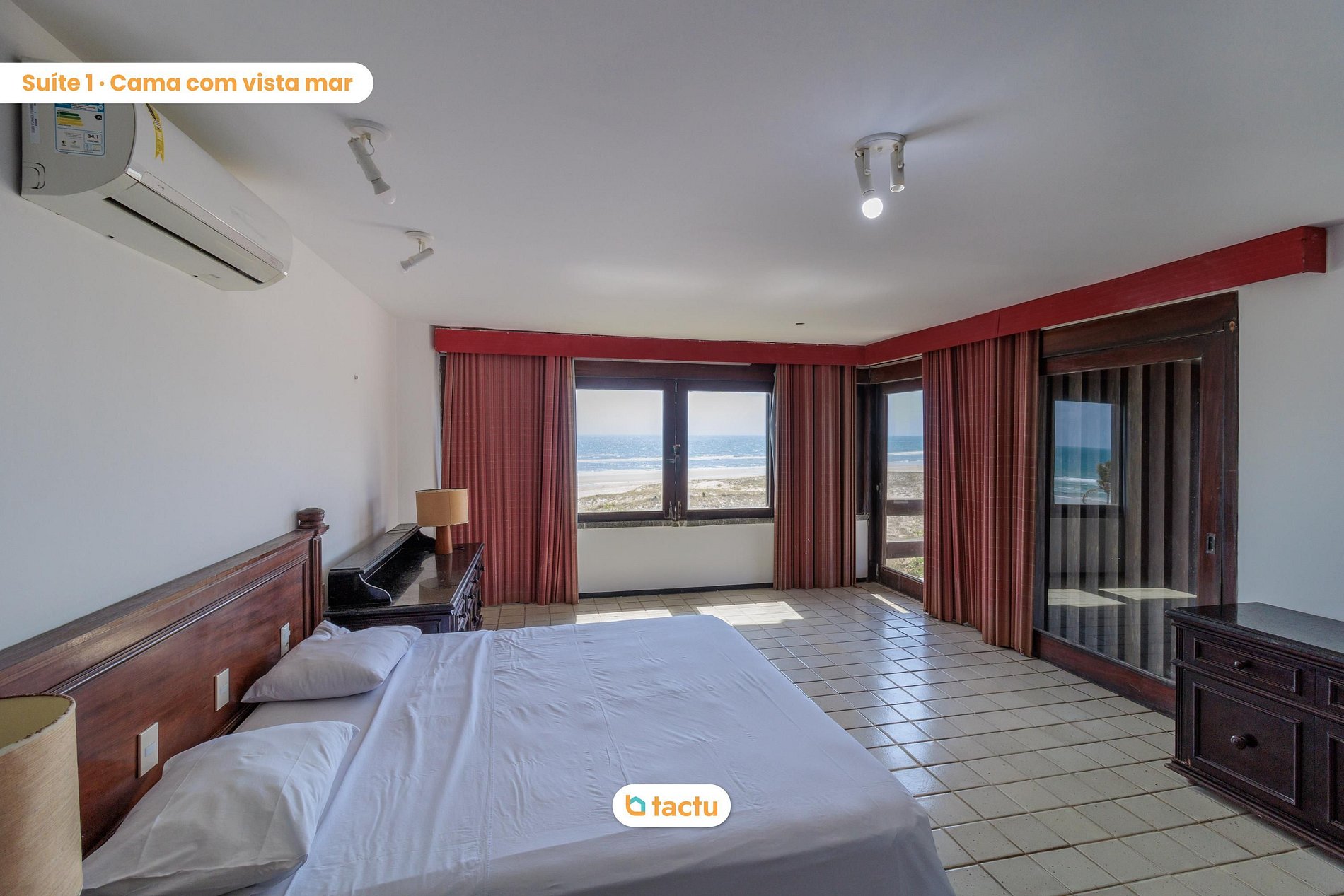 🛋️ La chambre est IMMENSE et est intégrée à un balcon avec une VUE MER INCROYABLE ! Ici, vous pourrez réunir famille et amis pour profiter de la beauté époustouflante de Porto das Dunas et socialiser tout en écoutant le bruit des vagues déferlantes.