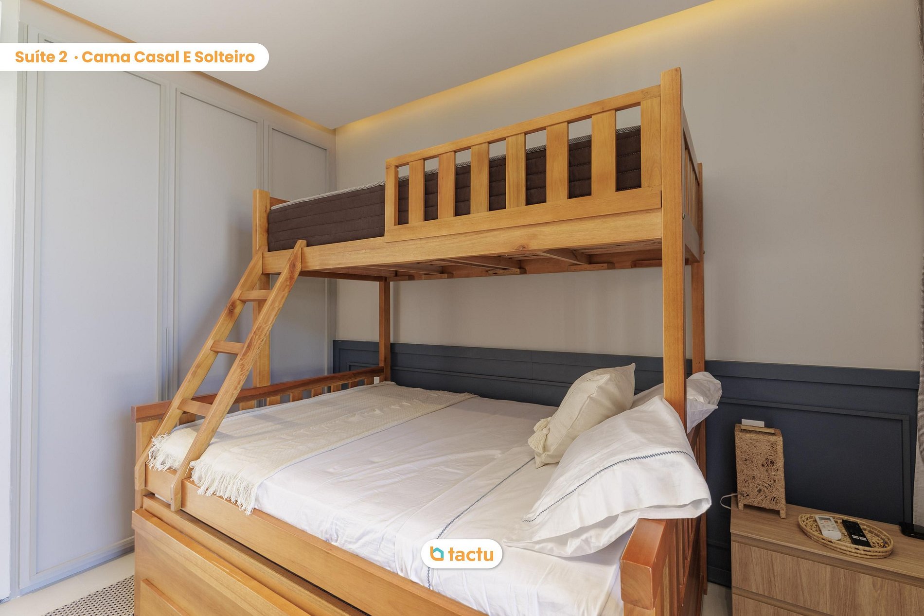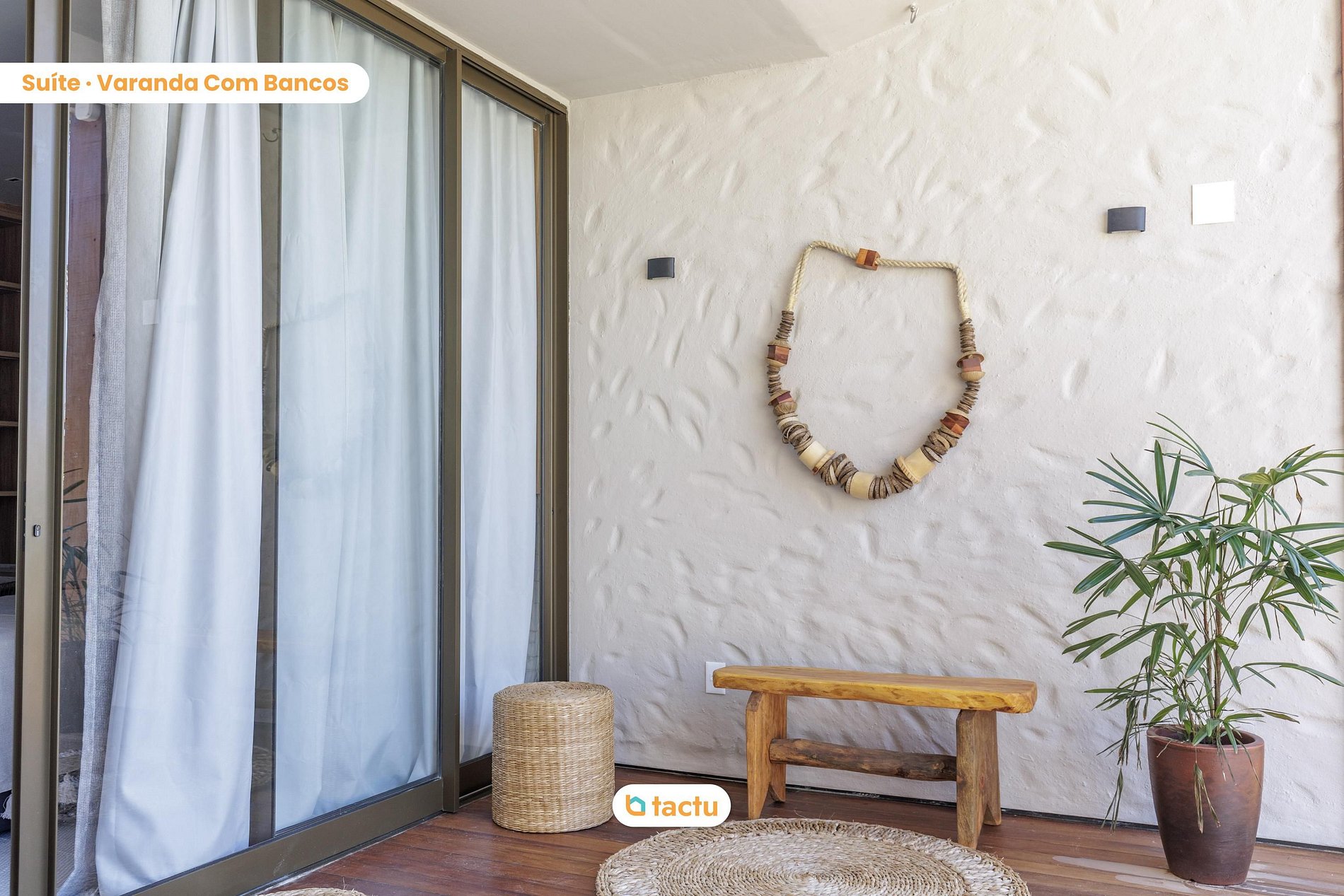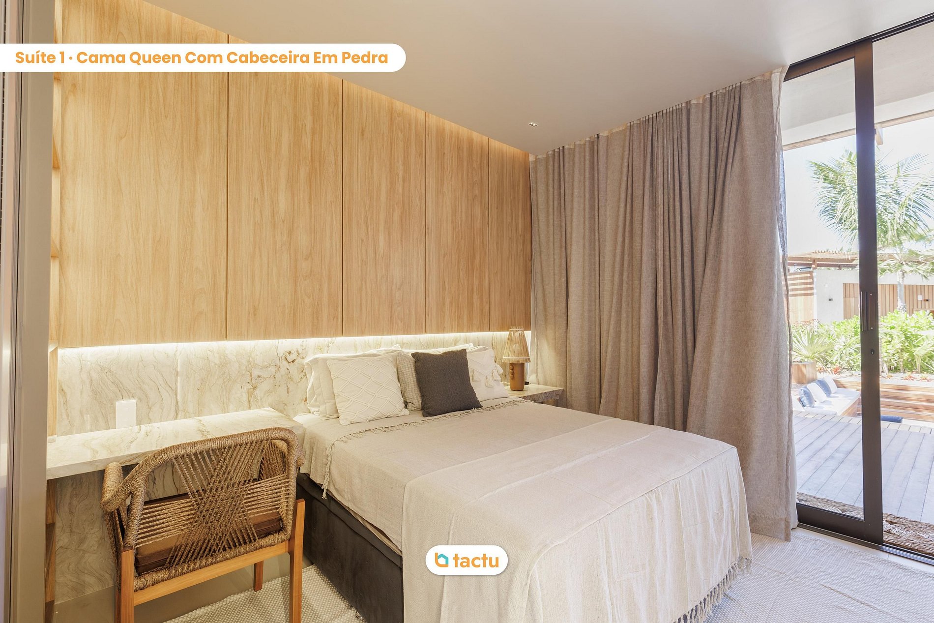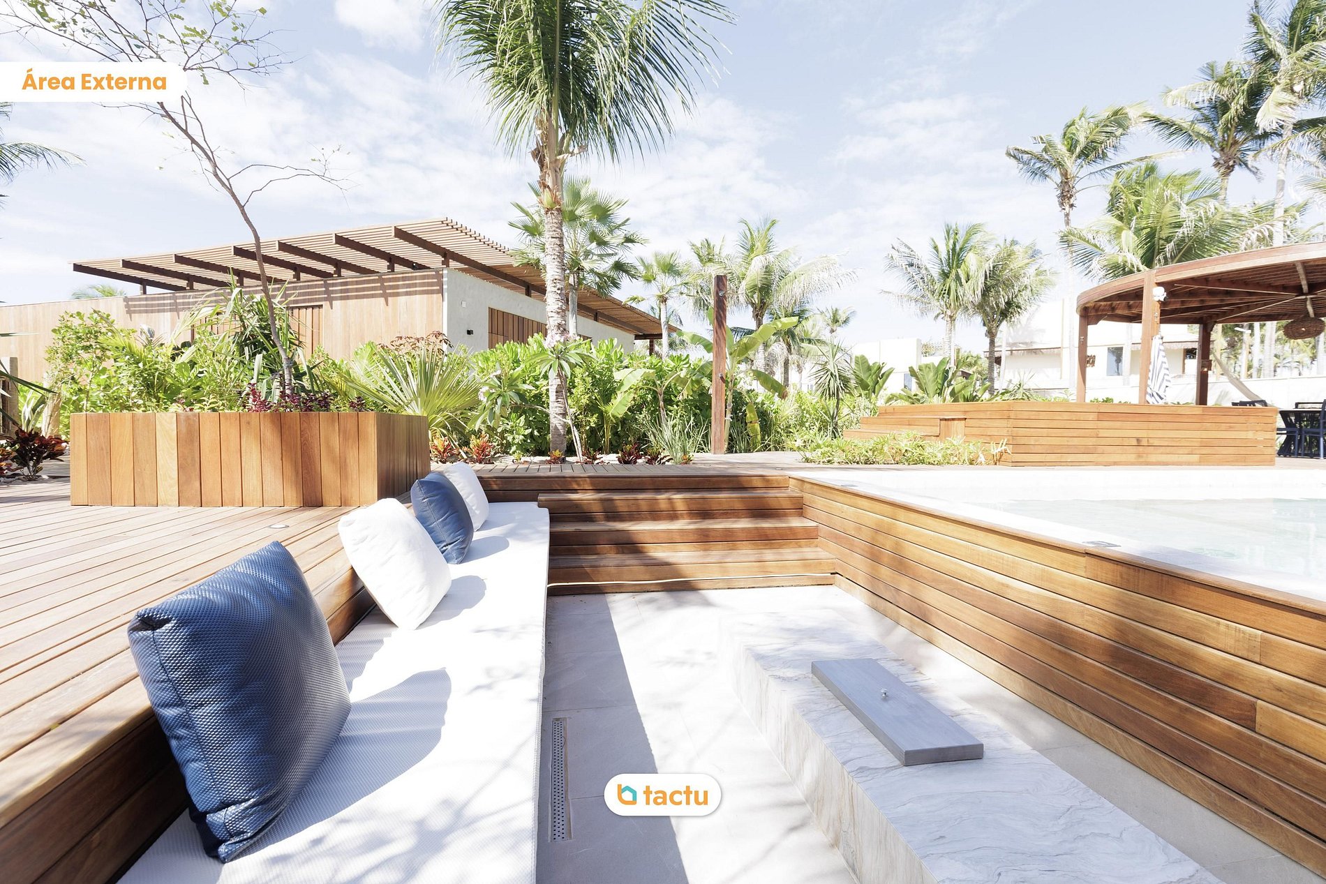 Le salon, intégré à la cuisine, dispose de murs en lattes de bois, permettant une ventilation naturelle et une lumière optimale, créant une atmosphère fraîche et accueillante. Avec sécurité 24h/24 et un accès facile à la plage, vous vivrez le meilleur de Fortim avec tout le confort et l’exclusivité que Tactu offre.