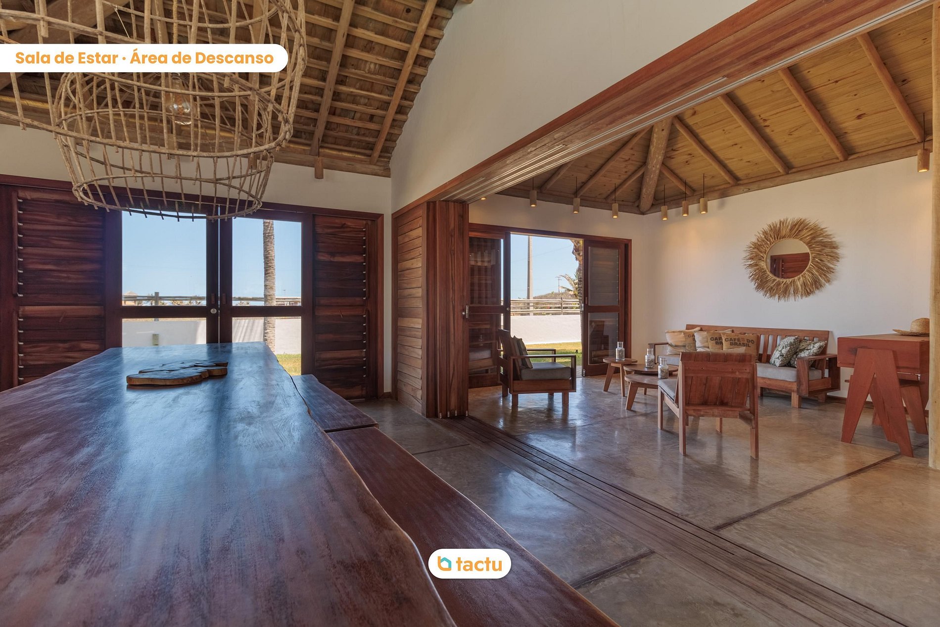 Com um carro, em cinco minutos você pode chegar ao centro de Pontal do Maceió, onde encontrará diversas opções gastronômicas. Em dez minutos, alcança-se o centro de Fortim, com mais opções de entretenimento e gastronomia. Além disso, a casa é perfeita para grupos grandes que desejam desfrutar de dias livres de preocupações na praia, sem abrir mão do conforto e do requinte.