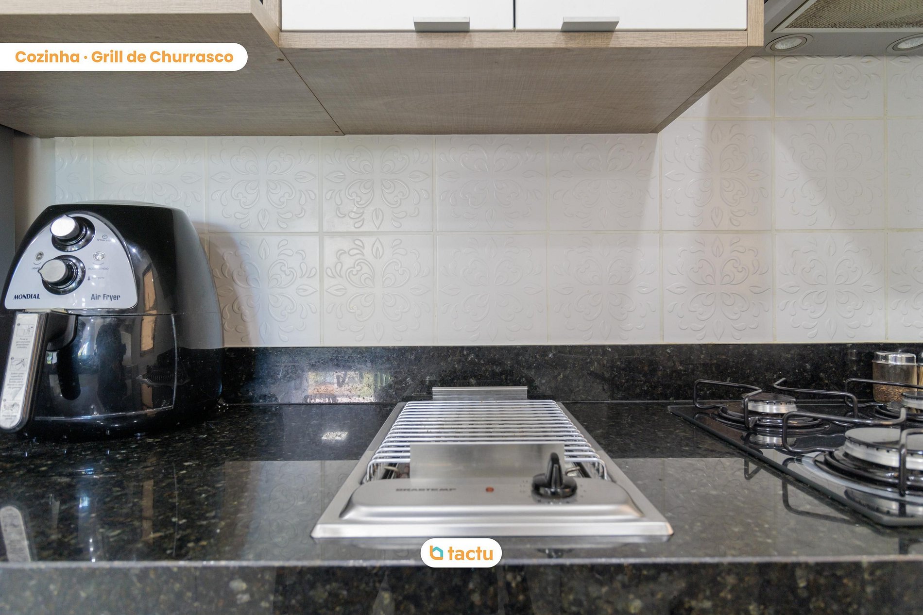 Sua cozinha é completa e equipada com todos os utensílios necessários para preparar suas refeições. Tenha à sua disposição geladeira, forno, fogão, microondas, air-fryer e cafeteira.