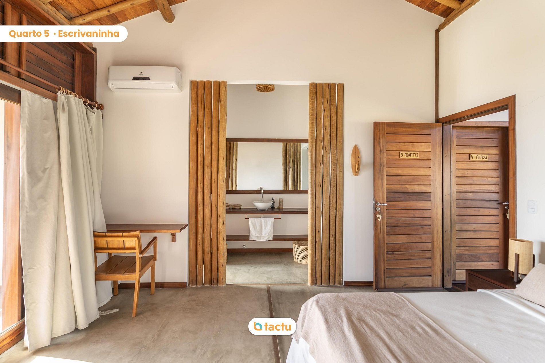 Com seis suítes espaçosas, todas climatizadas e decoradas com elementos naturais, a casa acolhe grupos e famílias que buscam tranquilidade, privacidade e experiências únicas à beira-mar. As suítes oferecem varandas com redes e vista para o mar ou para o jardim, garantindo conforto e harmonia em cada momento.