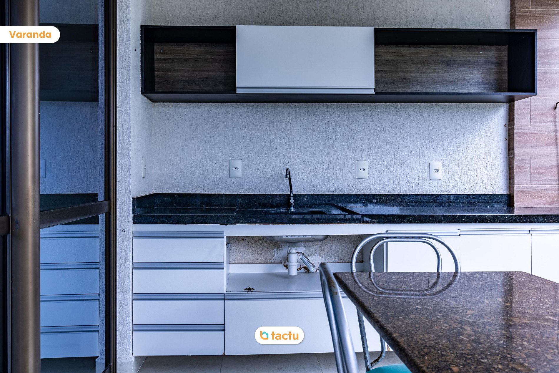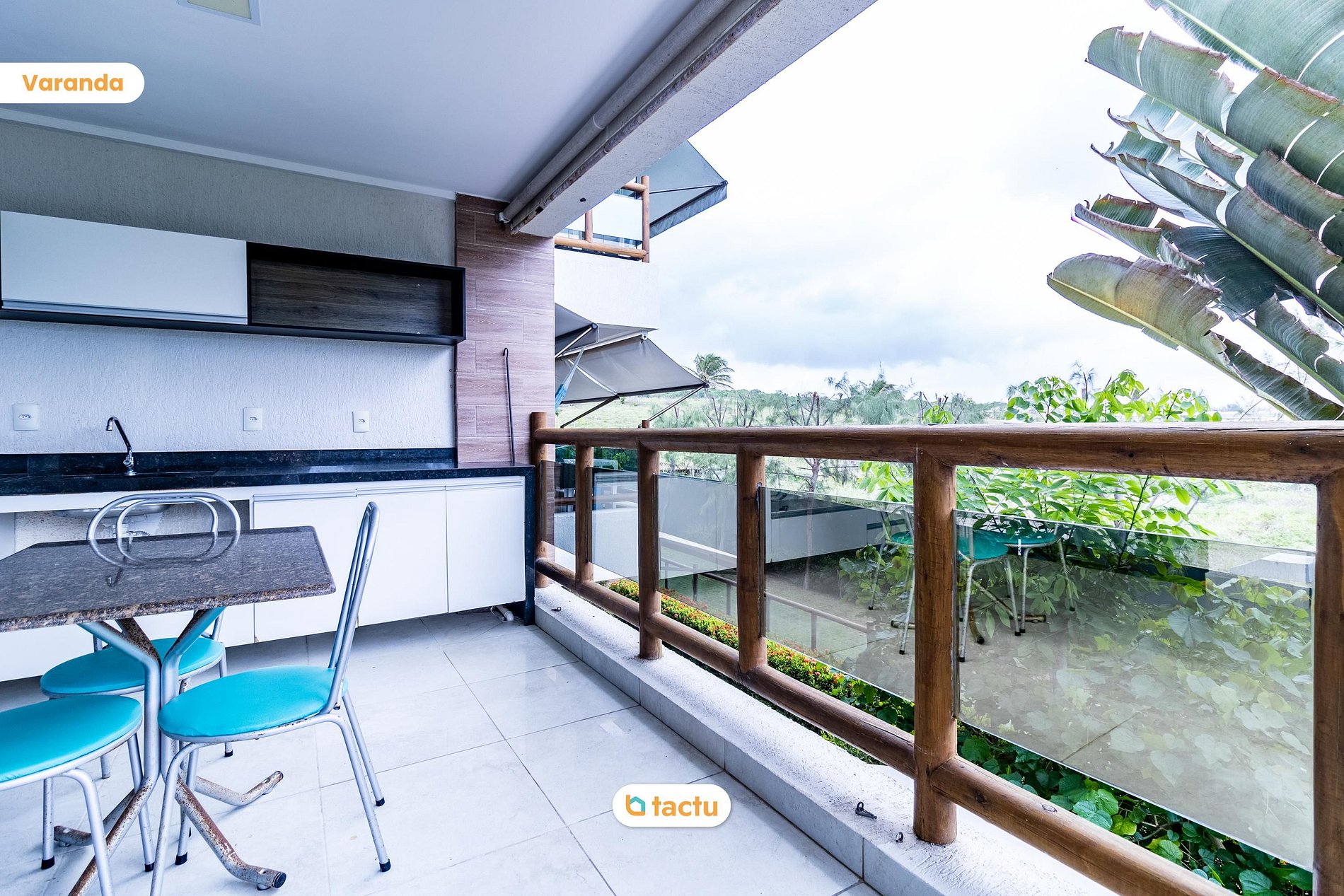 Varanda ampla com mobília
