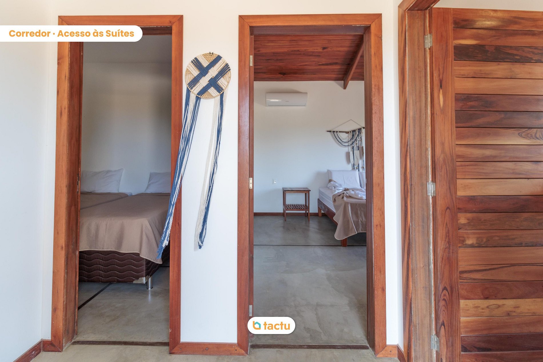 Ela possui 2 suítes, ambas climatizadas e renovadas, com pintura nova e decorações recentes! A suíte master conta com um colchão especial de casal e uma TV, enquanto que a outra suíte conta com duas camas de solteiro. Em ambos os banheiros, existem chuveiros elétricos que permitem um banho quentinho após um mergulho no mar ou na piscina.
